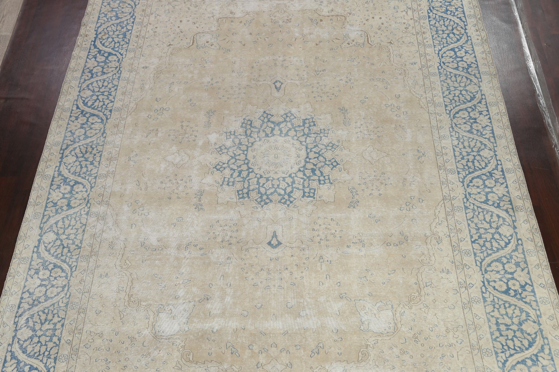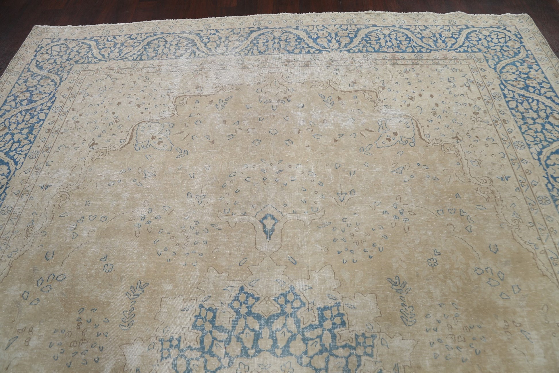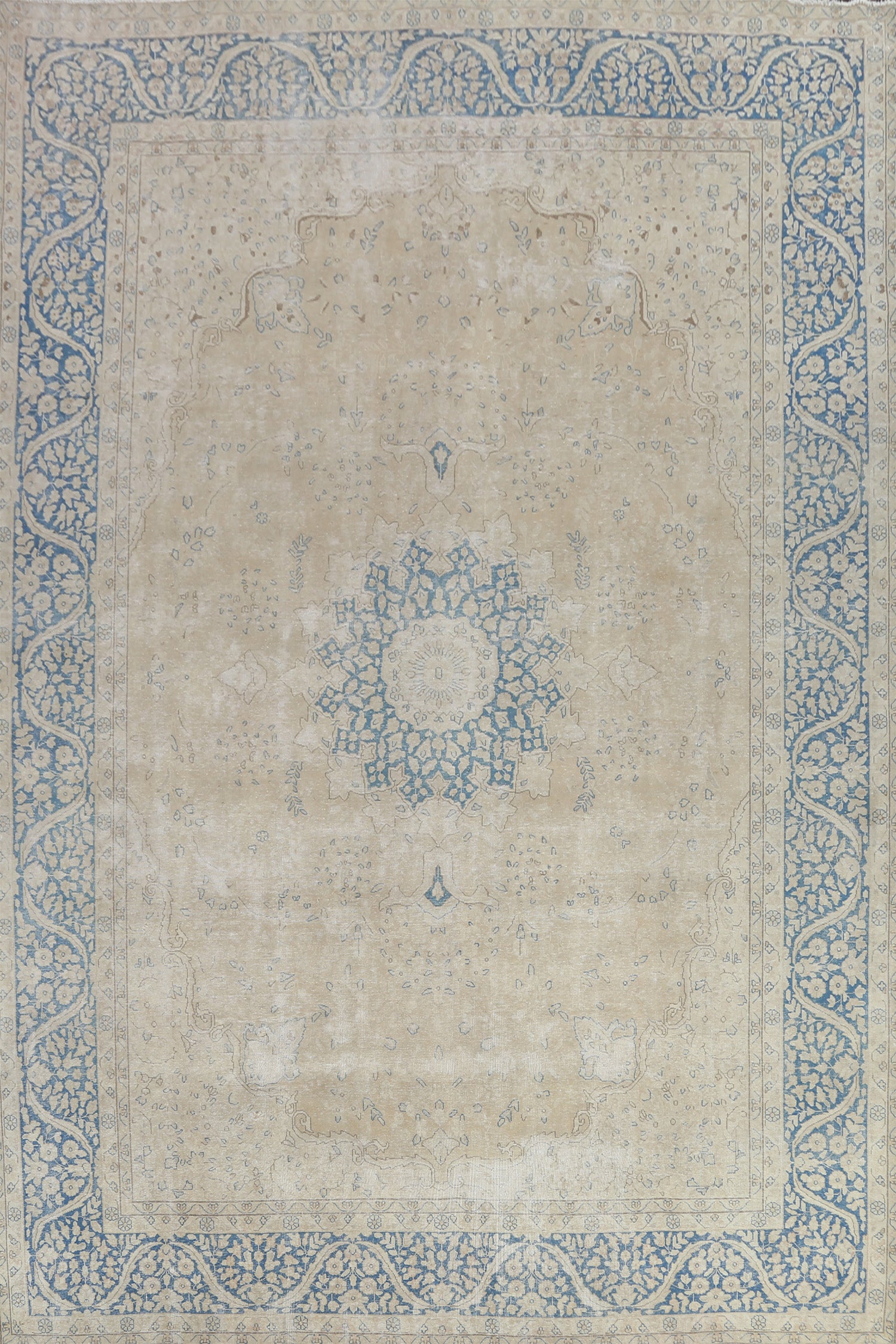 A Beautiful Genuine Persia ( Persia ) Kerman rug is Hand Knotted by skillful weavers in Persia ( Persia ) with 100% Wool Material. This rug is in Very Good (Evenly Low Pile) condition. dimensions are 12' 10'' X 9' 9'' in foot and 391 X 297 in centimeter. the primary color is Beige & Ivories.