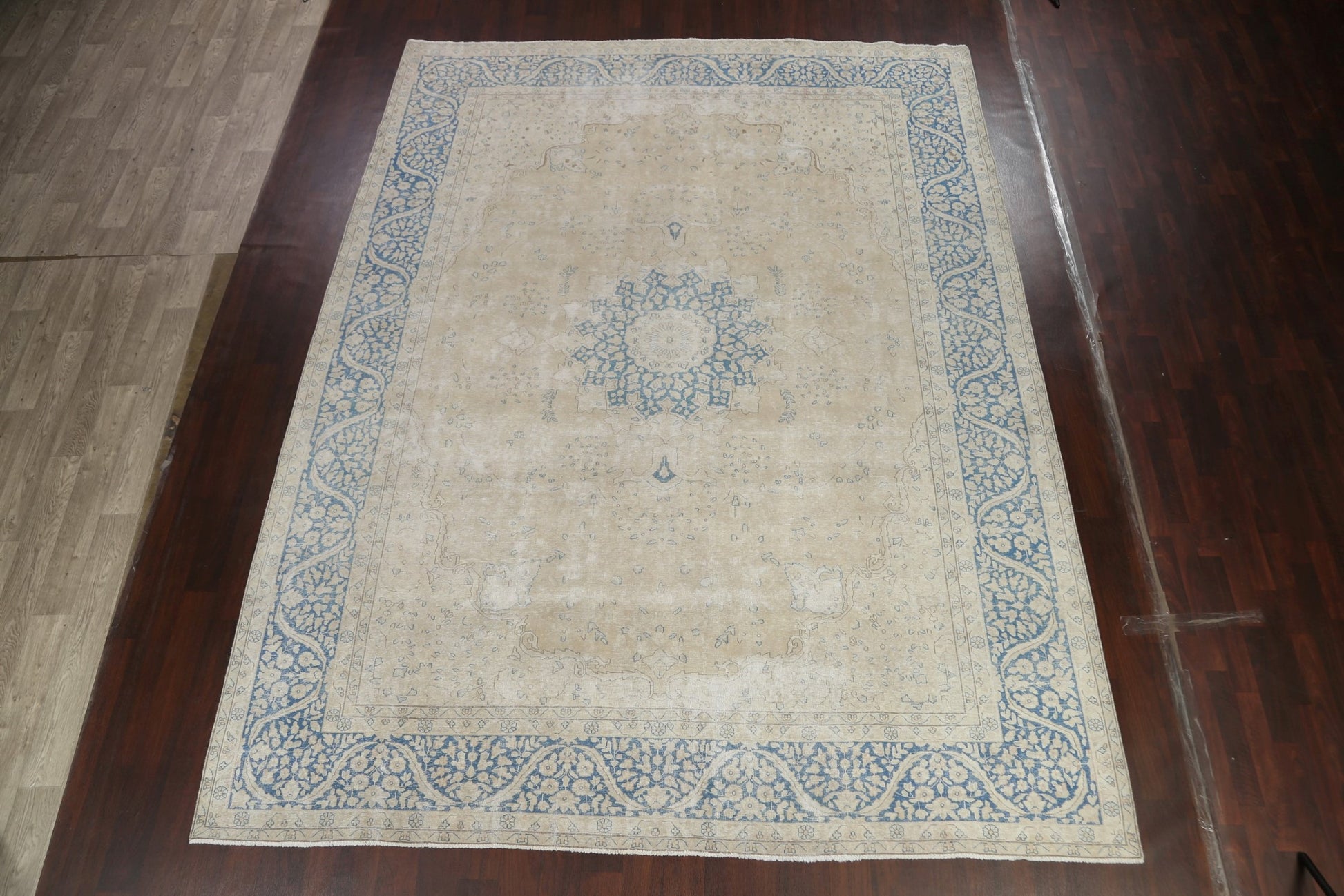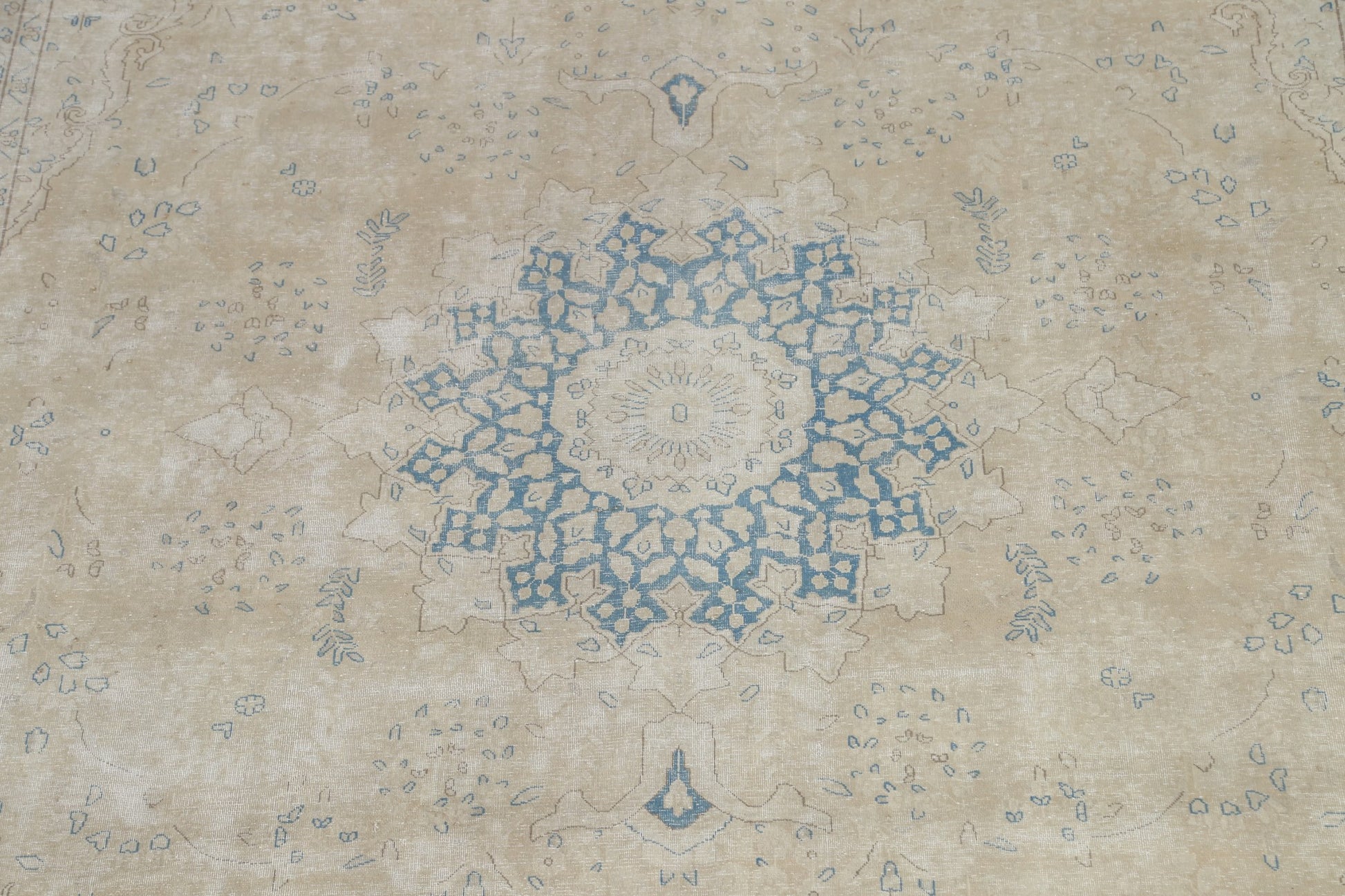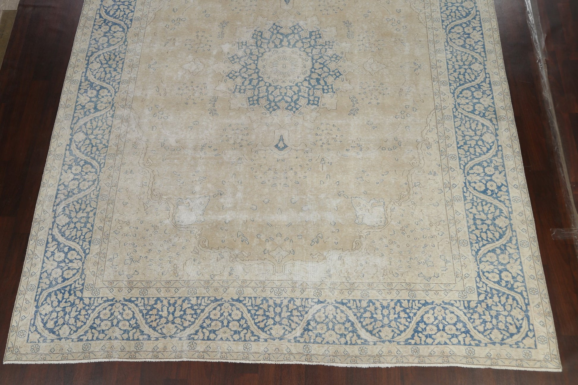 A Beautiful Genuine Persia ( Persia ) Kerman rug is Hand Knotted by skillful weavers in Persia ( Persia ) with 100% Wool Material. This rug is in Very Good (Evenly Low Pile) condition. dimensions are 12' 10'' X 9' 9'' in foot and 391 X 297 in centimeter. the primary color is Beige & Ivories.