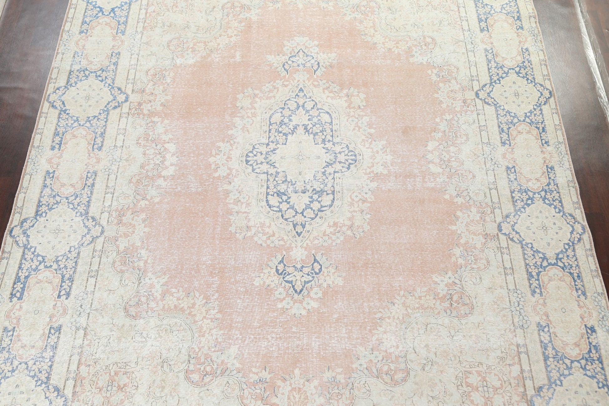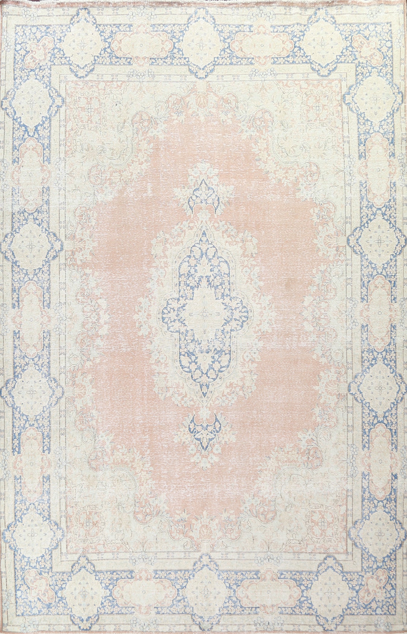 A Beautiful Genuine Persia ( Persia ) Kerman rug is Hand Knotted by skillful weavers in Persia ( Persia ) with 100% Wool Material. This rug is in Very Good (Evenly Low Pile) condition. dimensions are 13' 1'' X 9' 10'' in foot and 399 X 300 in centimeter. the primary color is Peach.