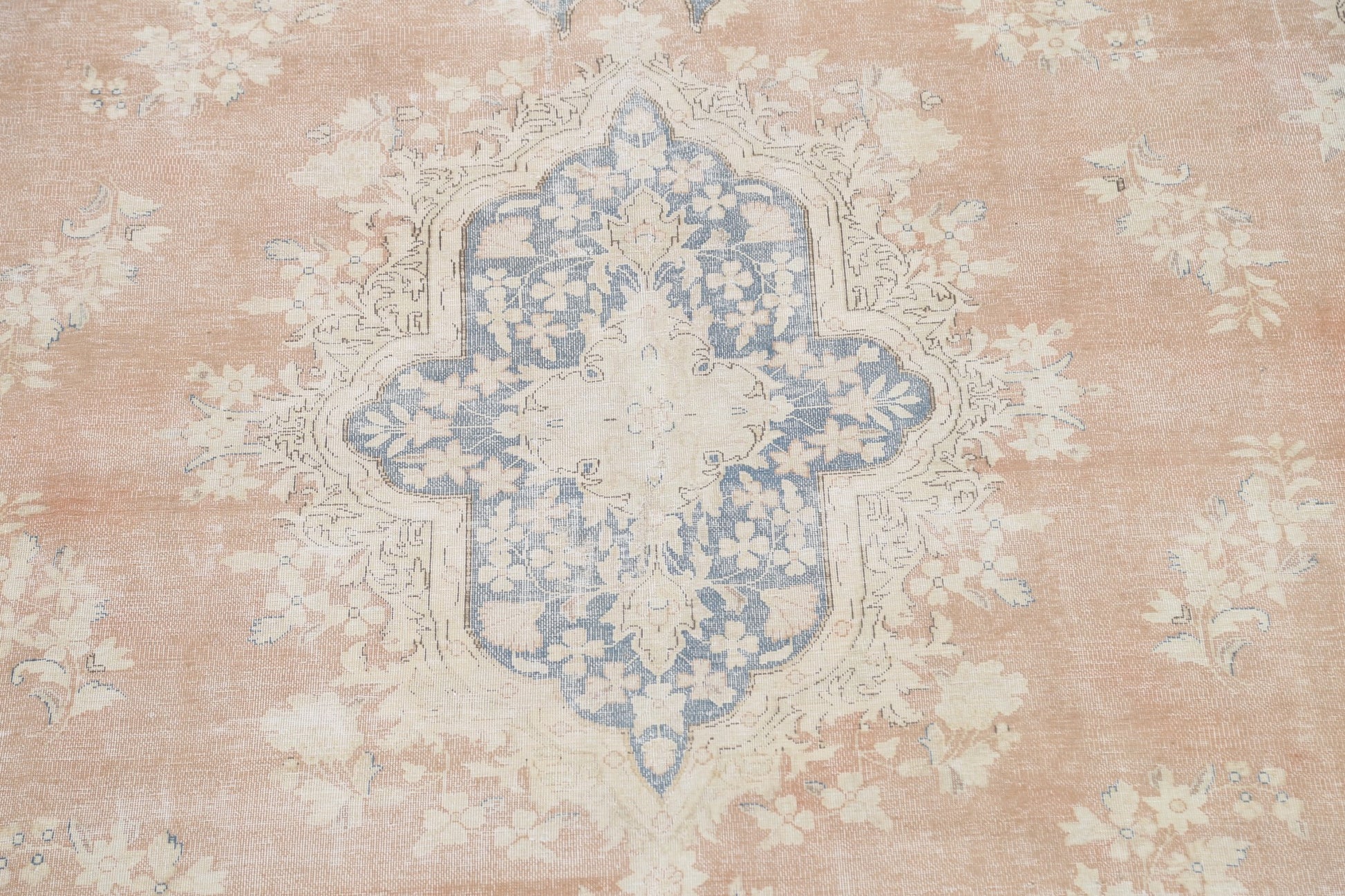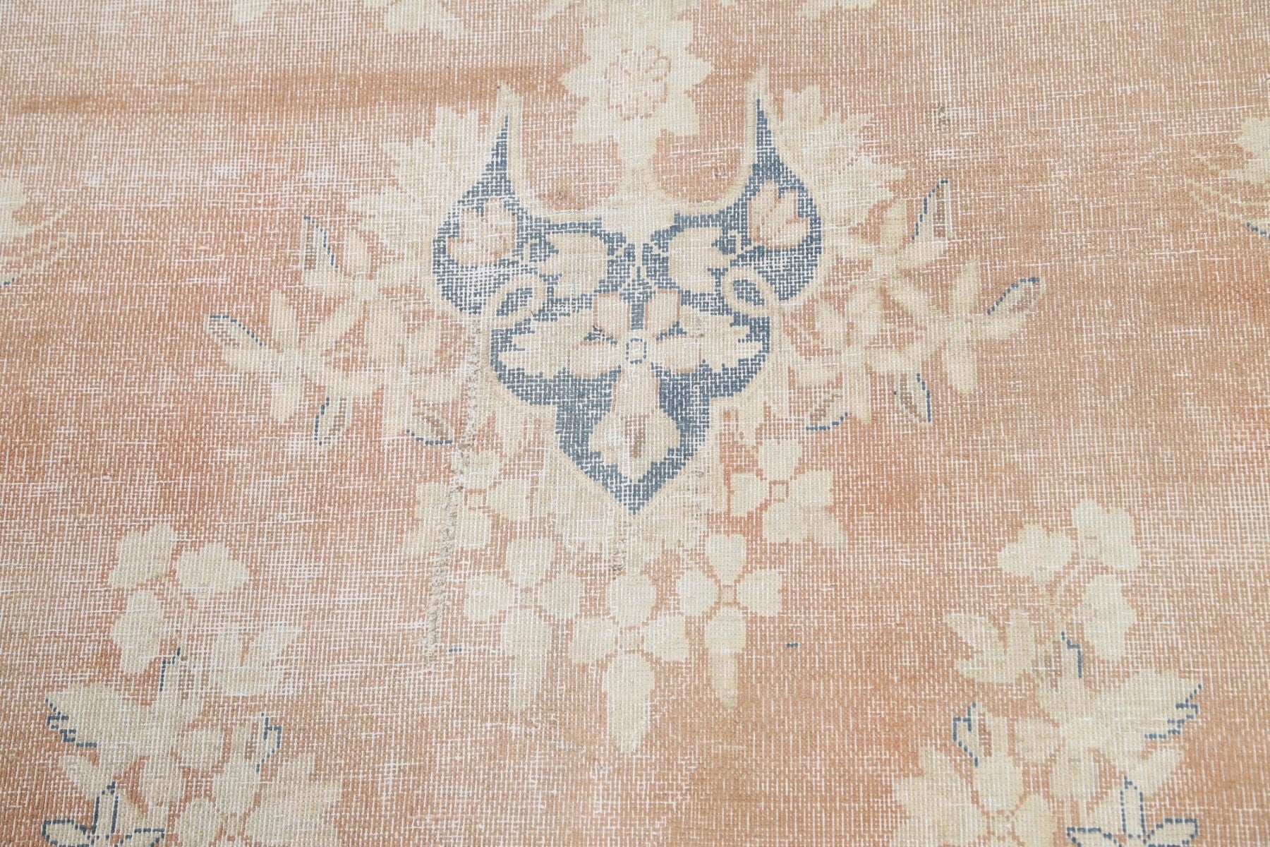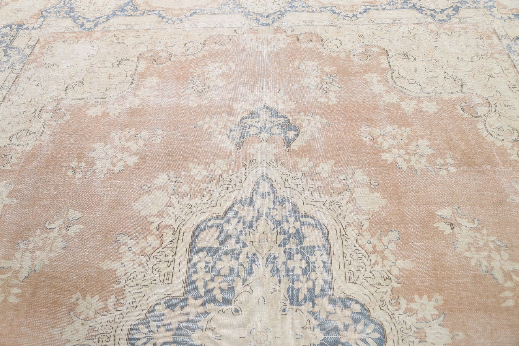 A Beautiful Genuine Persia ( Persia ) Kerman rug is Hand Knotted by skillful weavers in Persia ( Persia ) with 100% Wool Material. This rug is in Very Good (Evenly Low Pile) condition. dimensions are 12' 9'' X 9' 9'' in foot and 389 X 297 in centimeter. the primary color is Peach.
