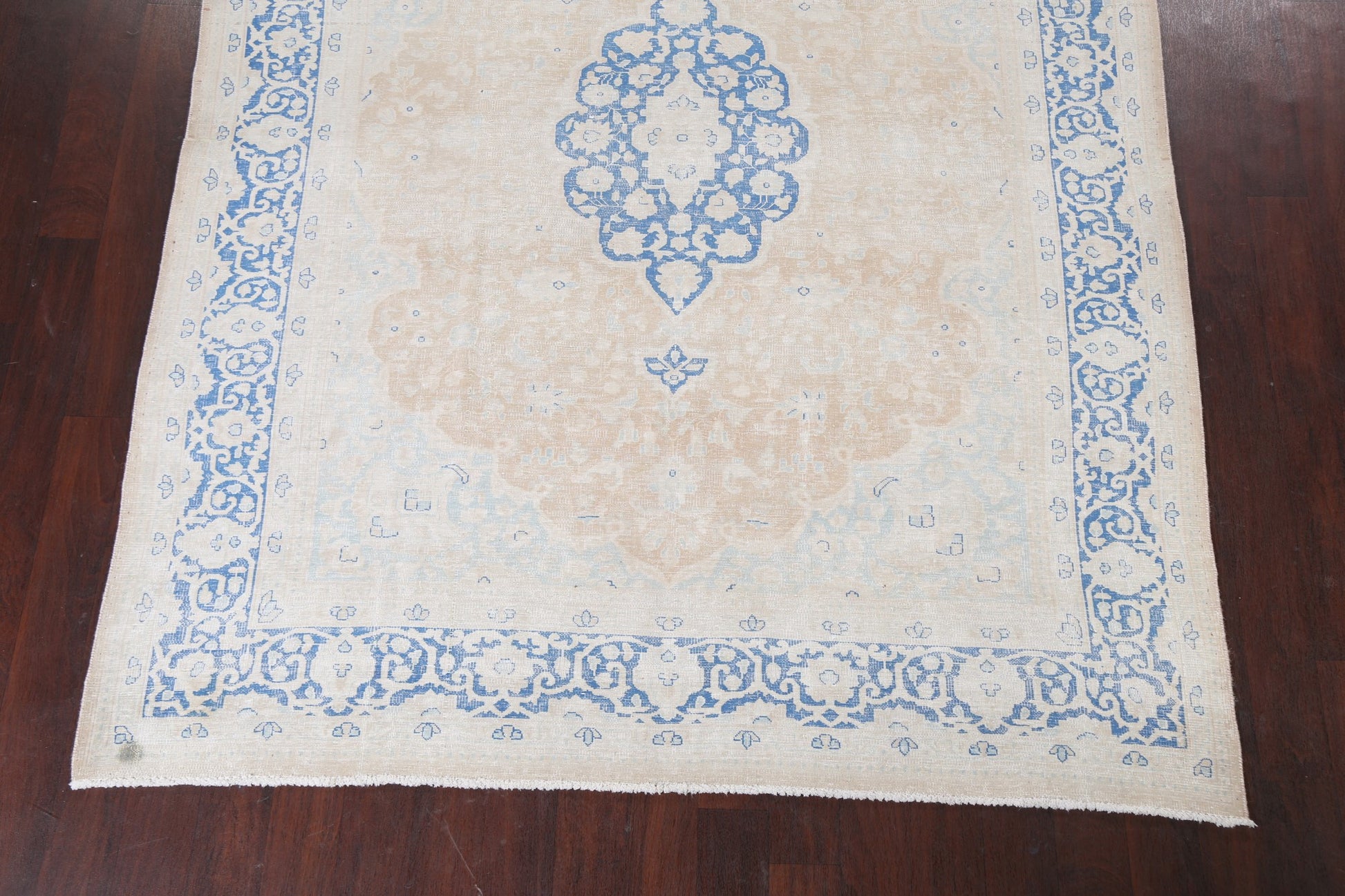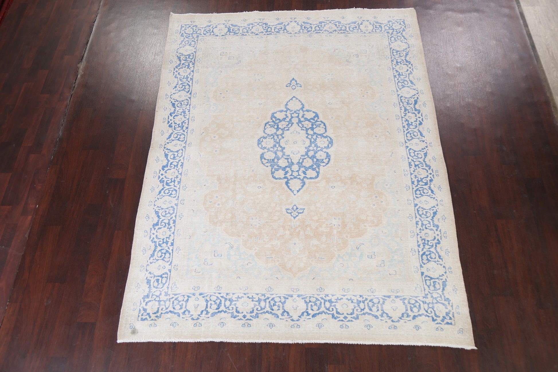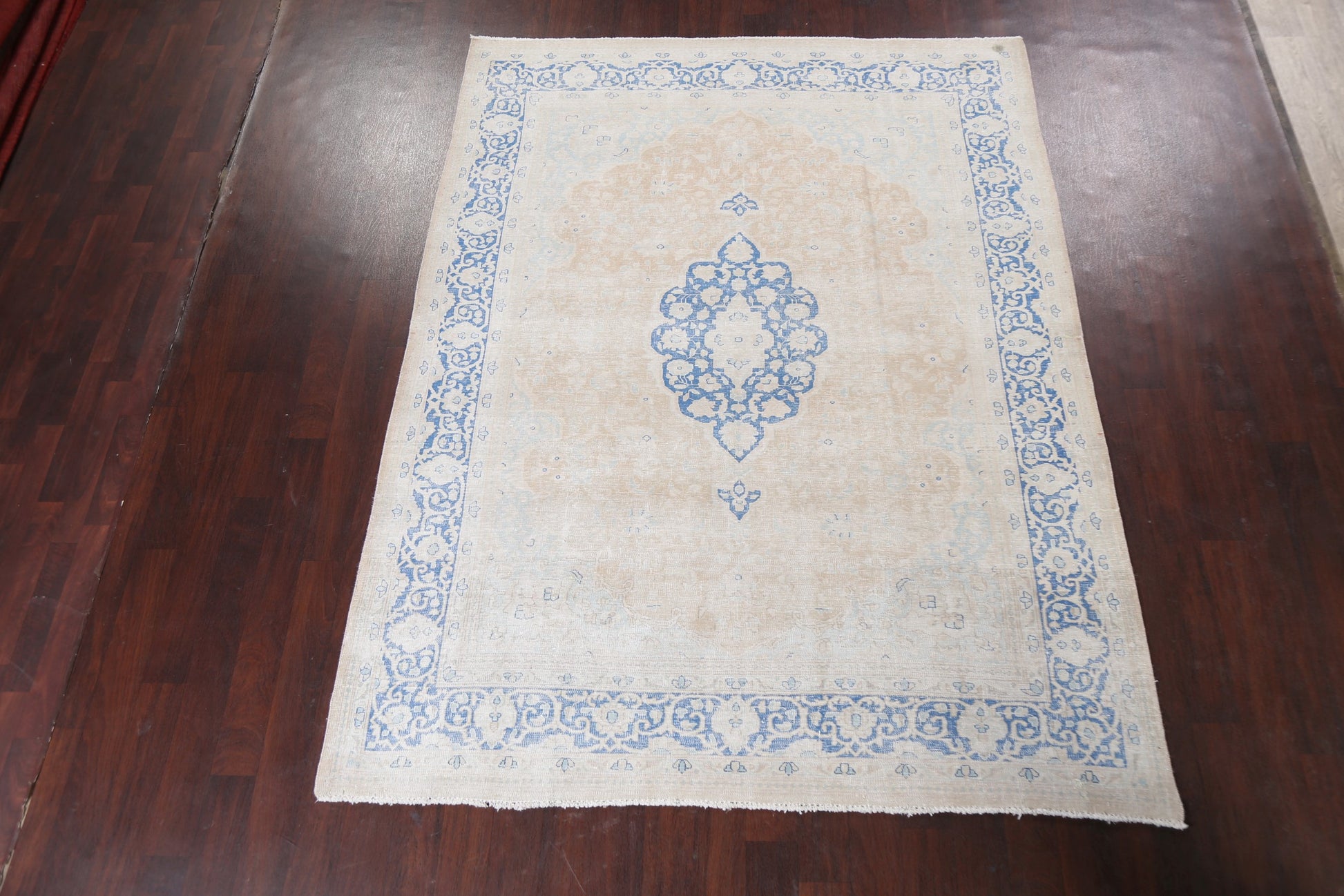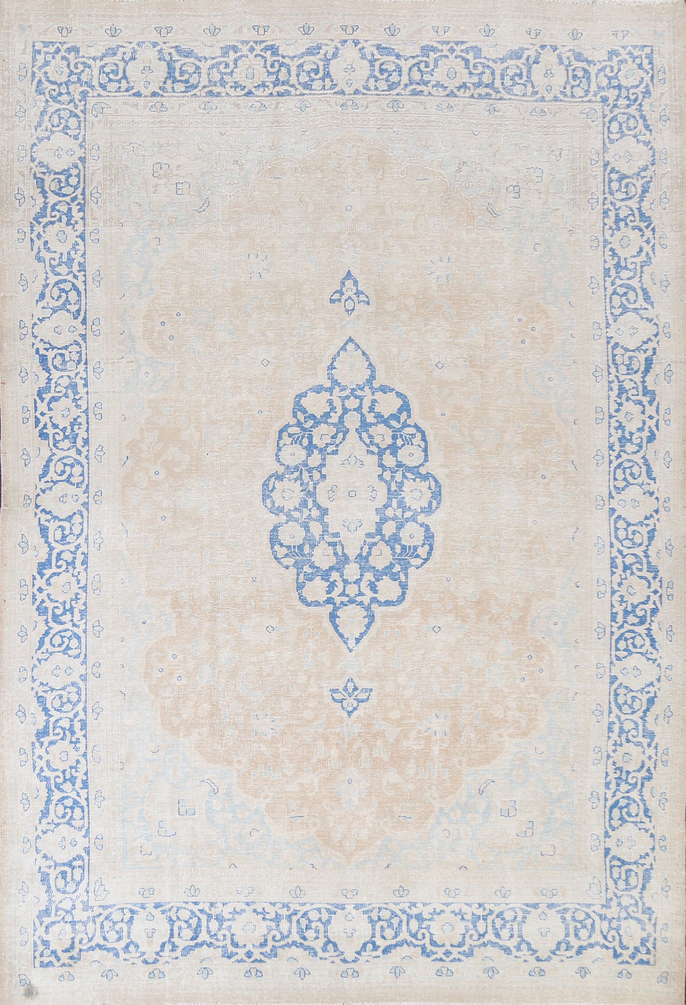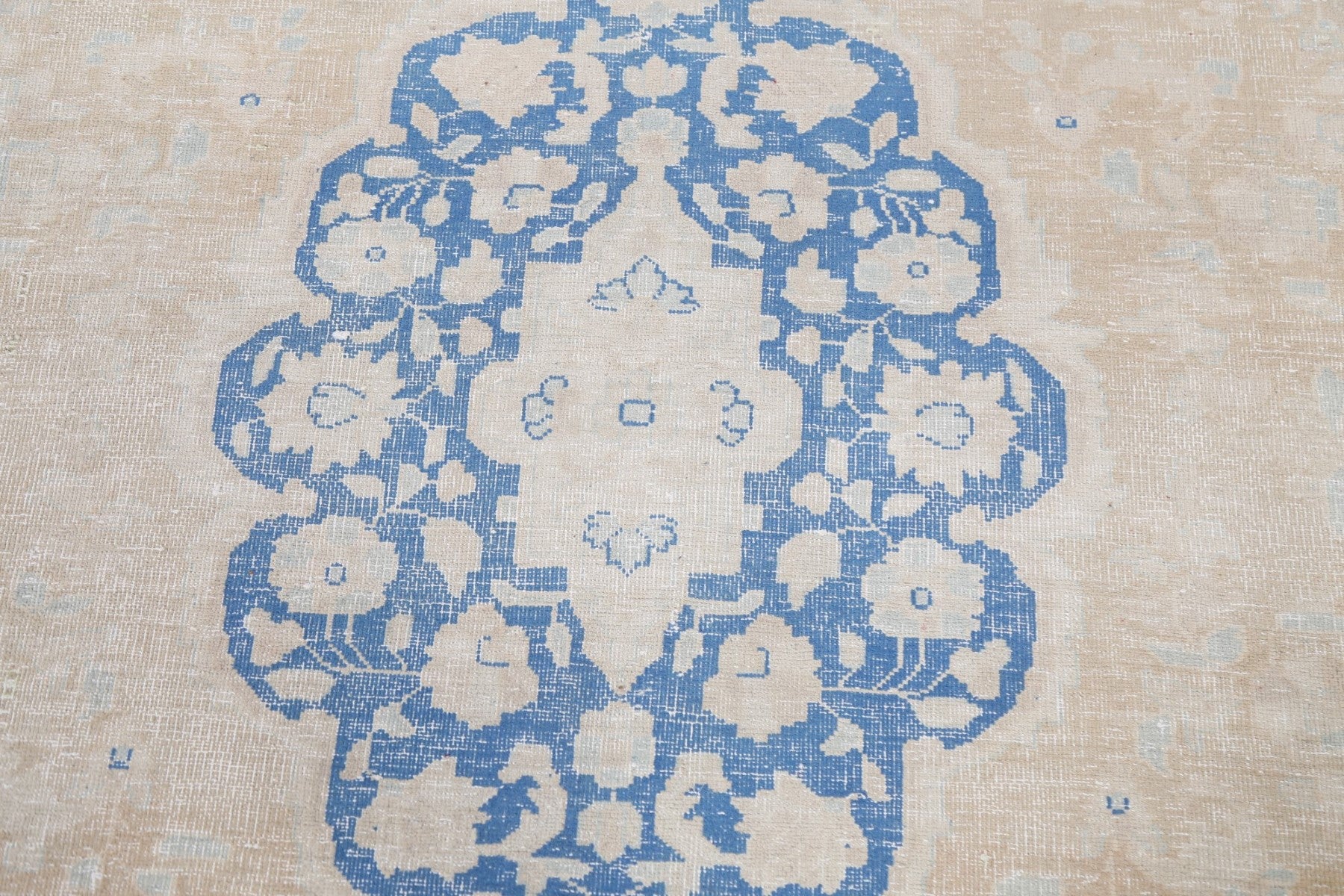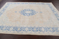 A Beautiful Genuine Persia ( Persia ) Kerman rug is Hand Knotted by skillful weavers in Persia ( Persia ) with 100% Wool Material. This rug is in Very Good (Evenly Low Pile-Stain) condition. dimensions are 9' 2'' X 6' 11'' in foot and 279 X 211 in centimeter. the primary color is Peach.