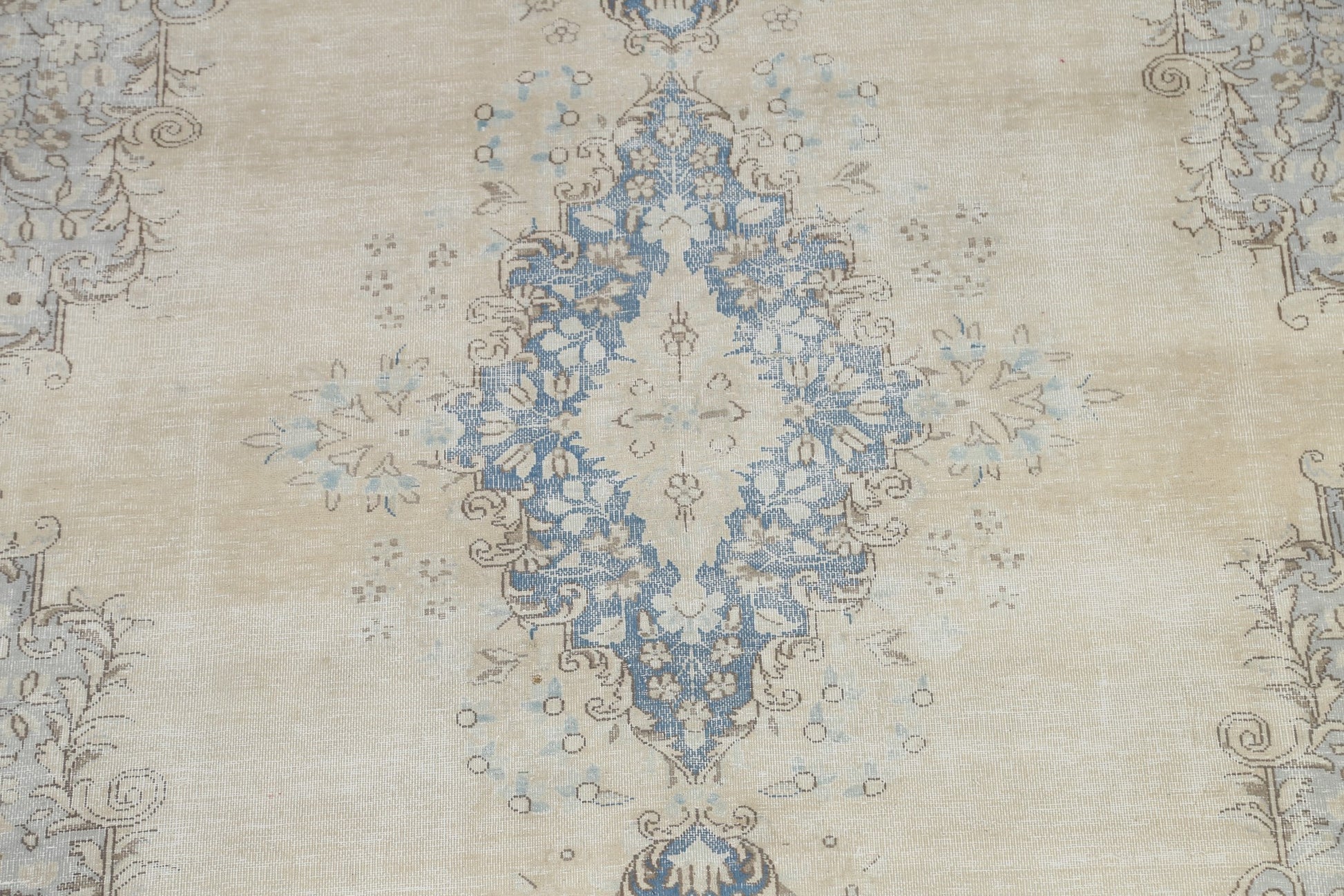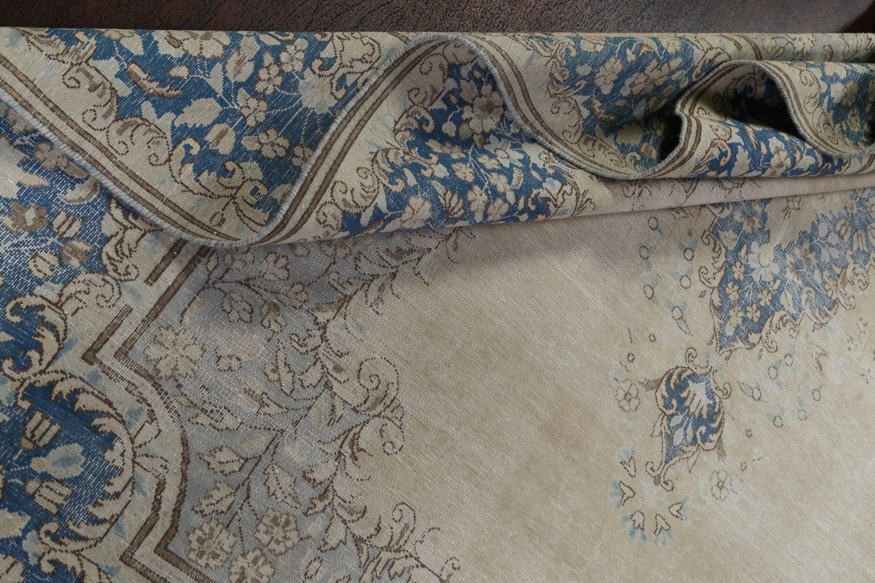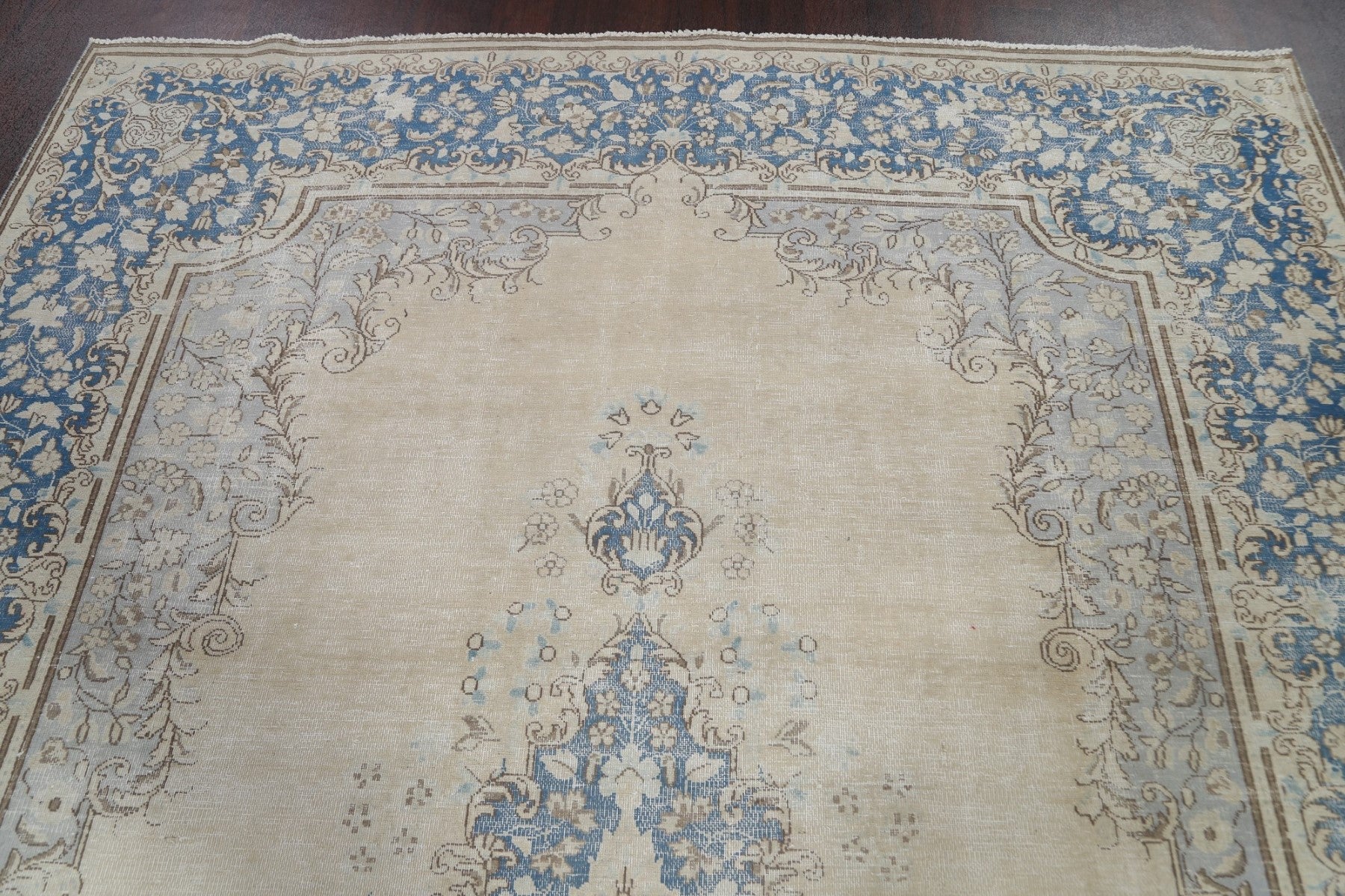 A Beautiful Genuine Persia ( Persia ) Kerman rug is Hand Knotted by skillful weavers in Persia ( Persia ) with 100% Wool Material. This rug is in Very Good (Evenly Low Pile) condition. dimensions are 10' 8'' X 7' 11'' in foot and 325 X 241 in centimeter. the primary color is Beige & Ivories.