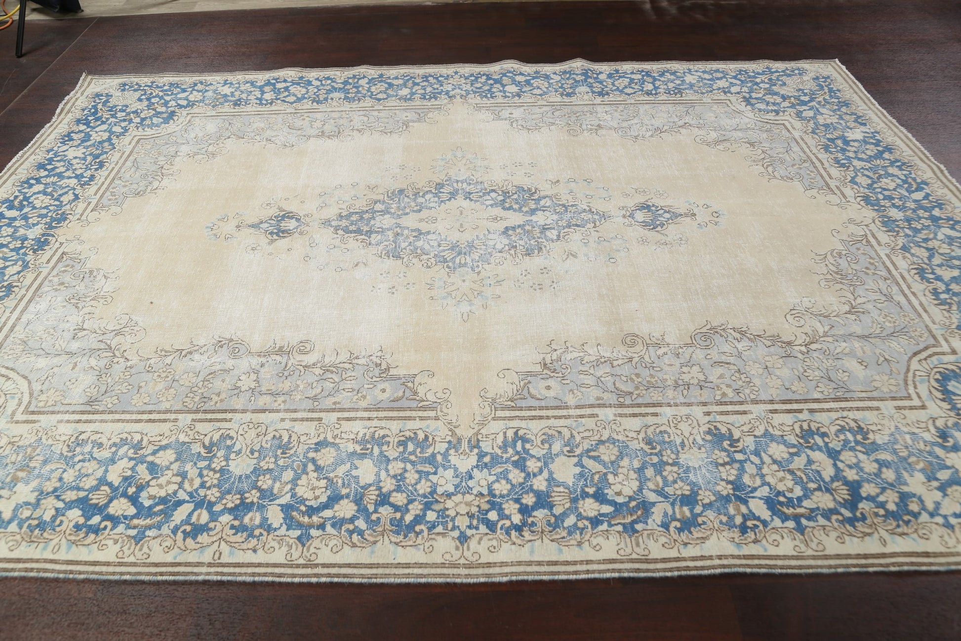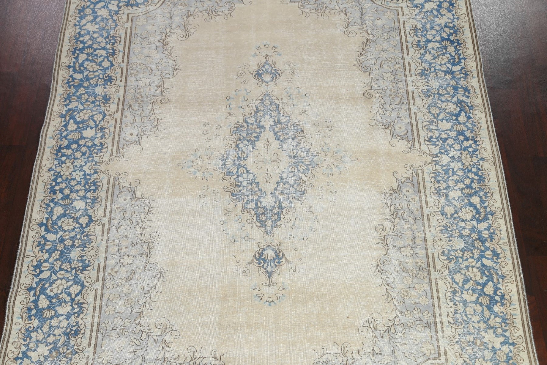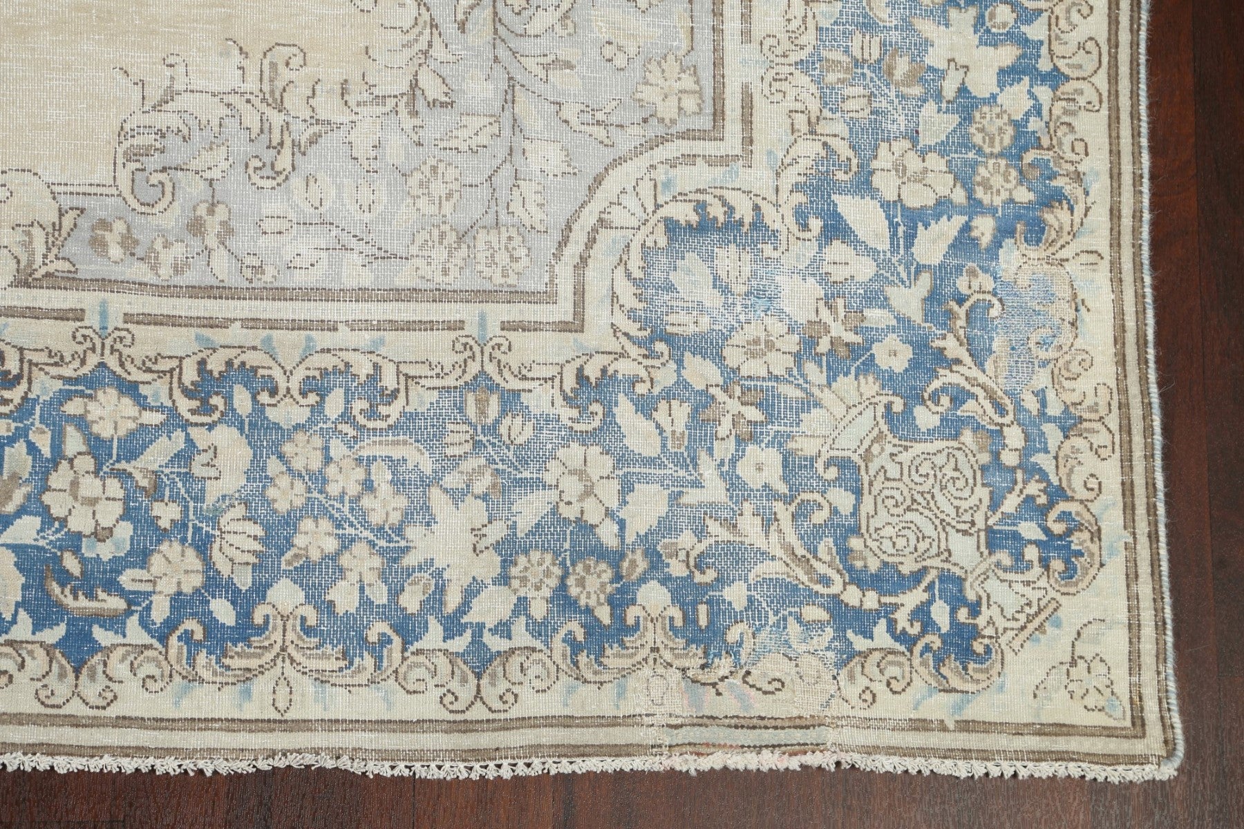 A Beautiful Genuine Persia ( Persia ) Kerman rug is Hand Knotted by skillful weavers in Persia ( Persia ) with 100% Wool Material. This rug is in Very Good (Evenly Low Pile) condition. dimensions are 10' 8'' X 7' 11'' in foot and 325 X 241 in centimeter. the primary color is Beige & Ivories.