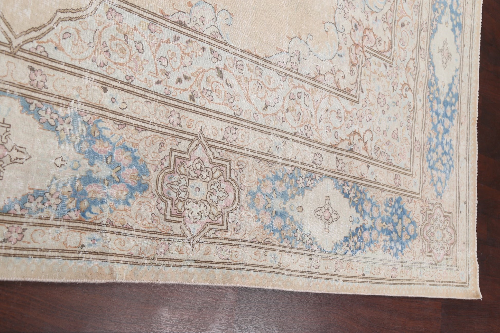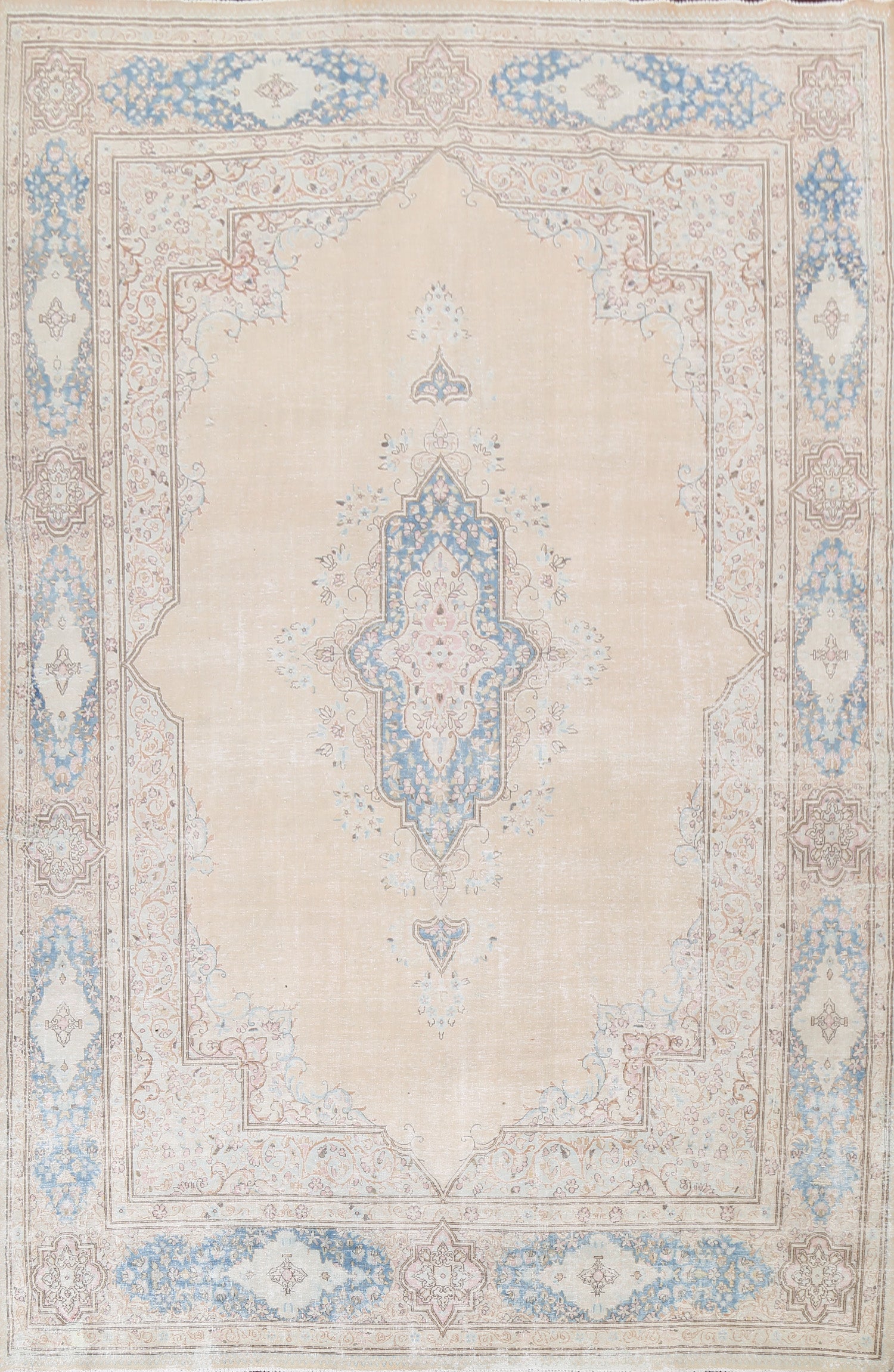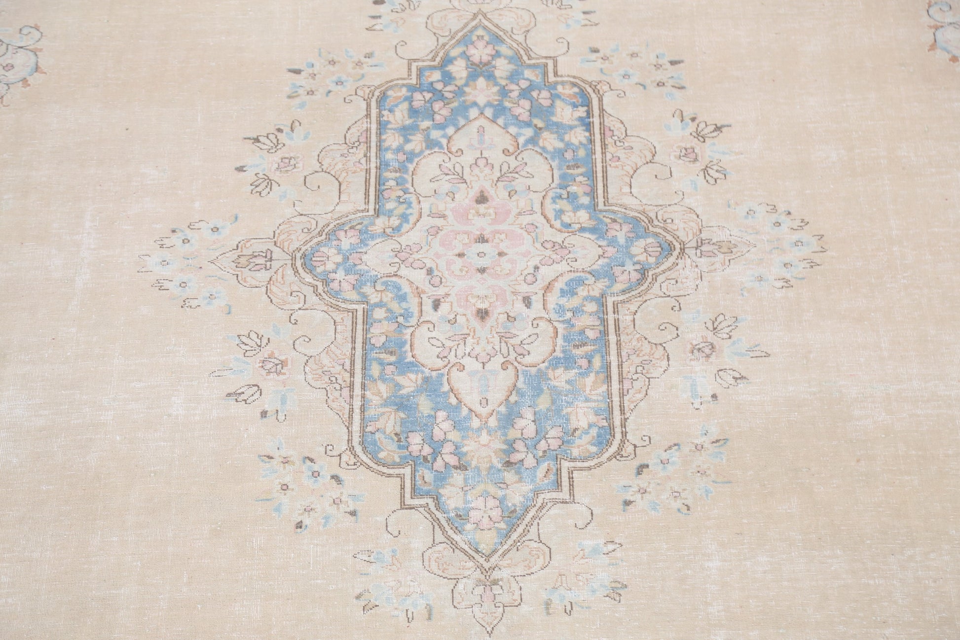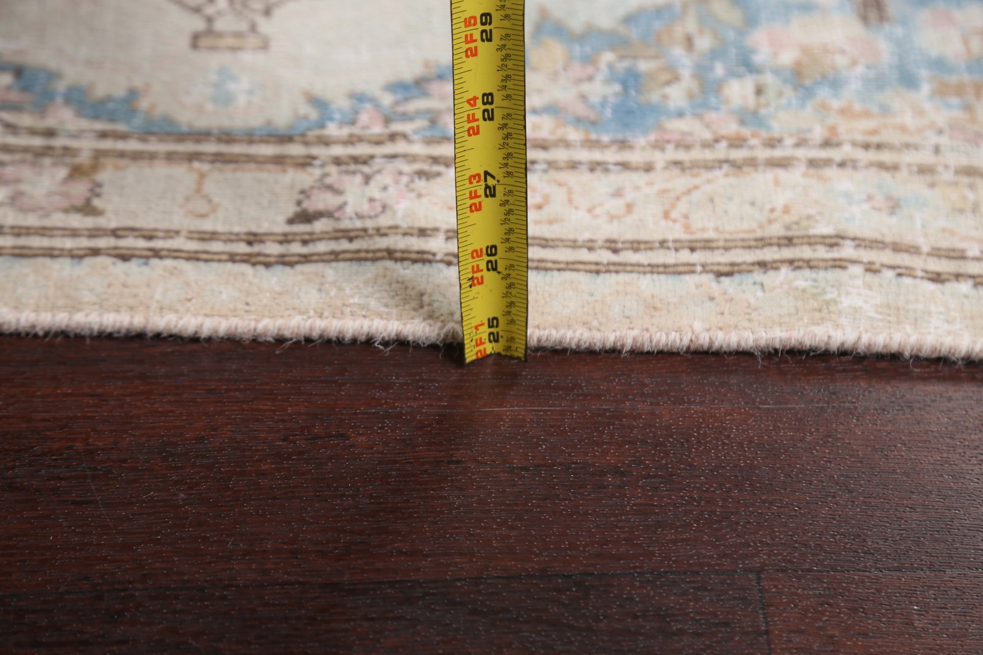 A Beautiful Genuine Persia ( Persia ) Kerman rug is Hand Knotted by skillful weavers in Persia ( Persia ) with 100% Wool Material. This rug is in Good (Evenly Low Pile) condition. dimensions are 12' 10'' X 9' 3'' in foot and 391 X 282 in centimeter. the primary color is Peach.