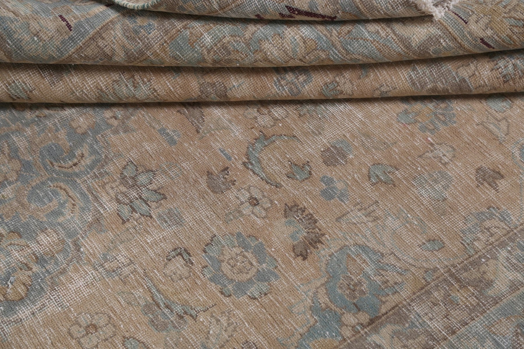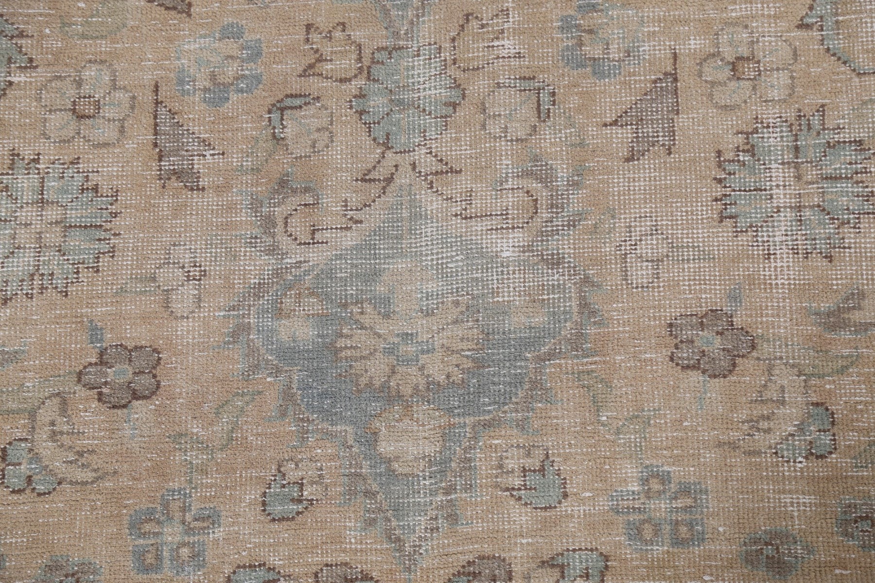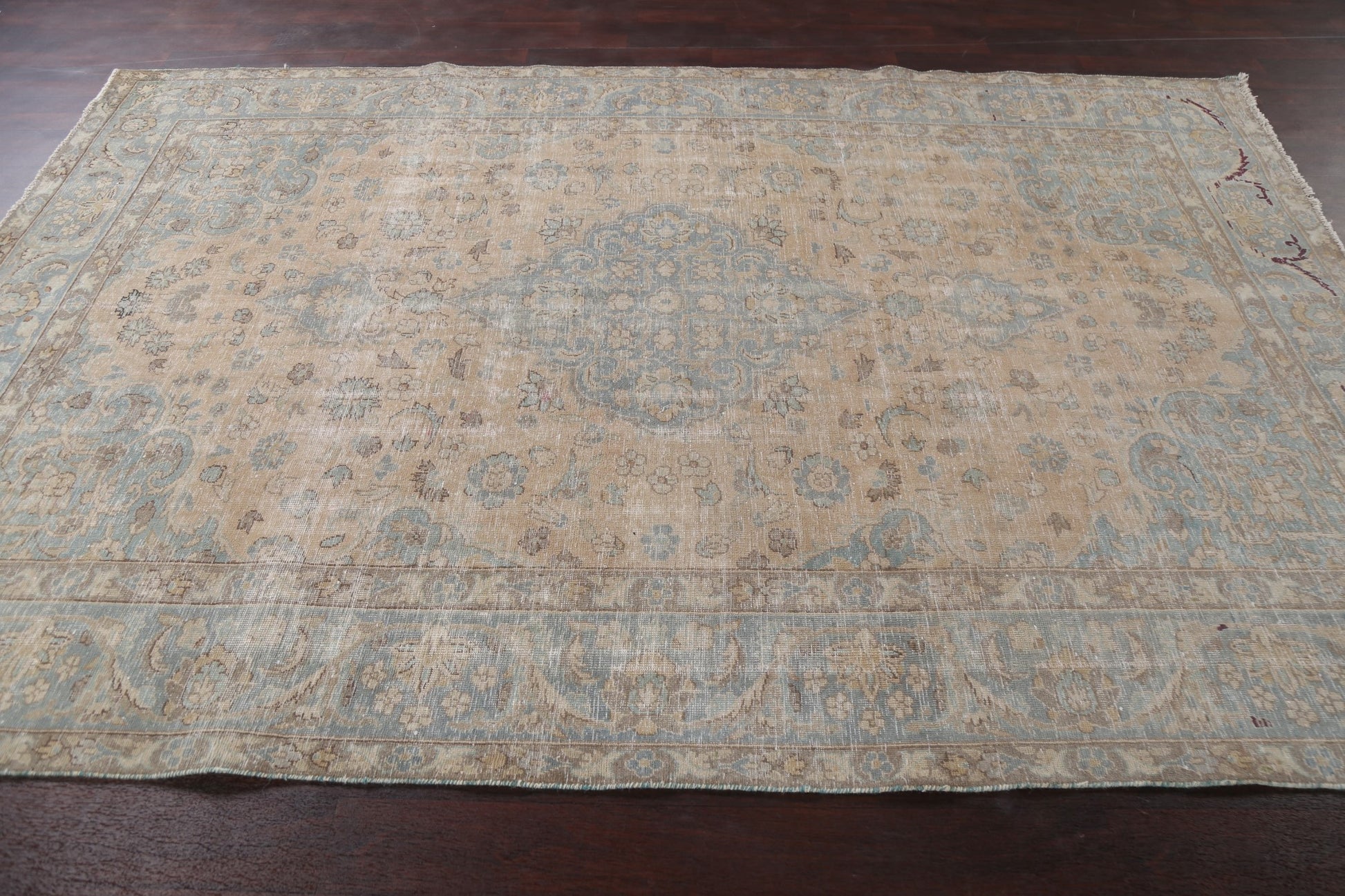 A Beautiful Genuine Persia ( Persia ) Mashad rug is Hand Knotted by skillful weavers in Persia ( Persia ) with 100% Wool Material. This rug is in Very Good (Evenly Low Pile-Repair) condition. dimensions are 9' 7'' X 6' 6'' in foot and 292 X 198 in centimeter. the primary color is Beige & Ivories.