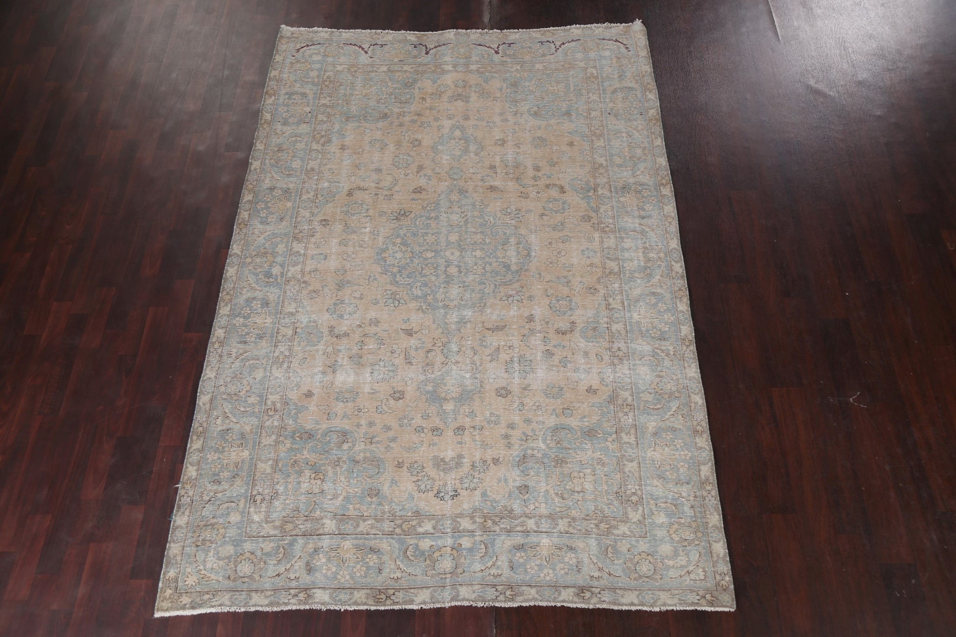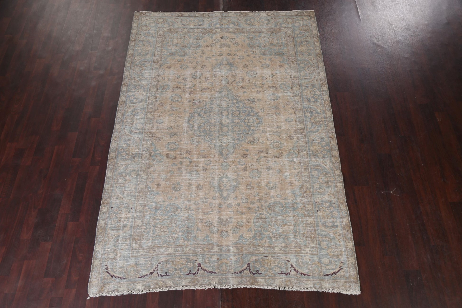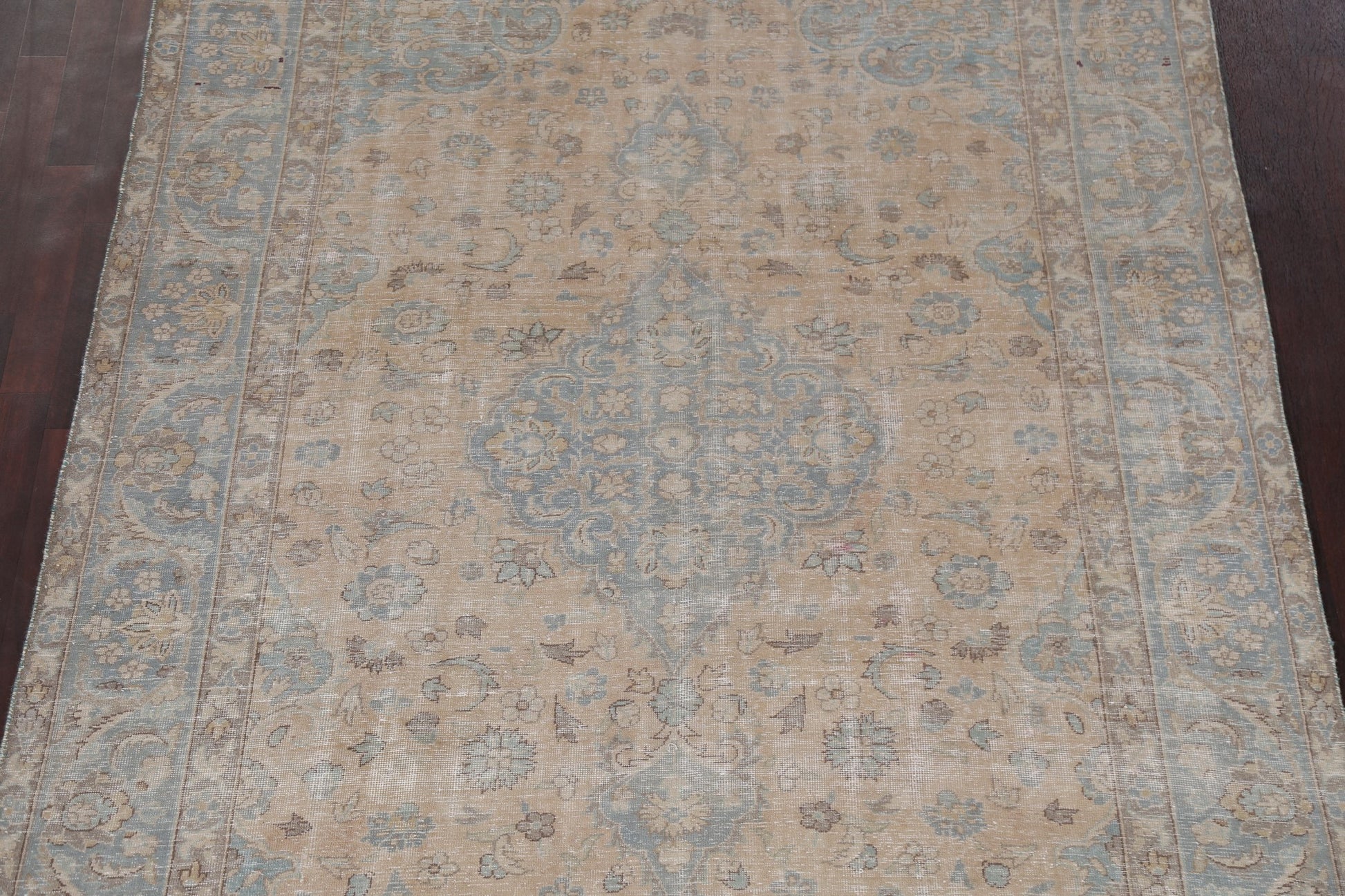 A Beautiful Genuine Persia ( Persia ) Mashad rug is Hand Knotted by skillful weavers in Persia ( Persia ) with 100% Wool Material. This rug is in Very Good (Evenly Low Pile-Repair) condition. dimensions are 9' 7'' X 6' 6'' in foot and 292 X 198 in centimeter. the primary color is Beige & Ivories.