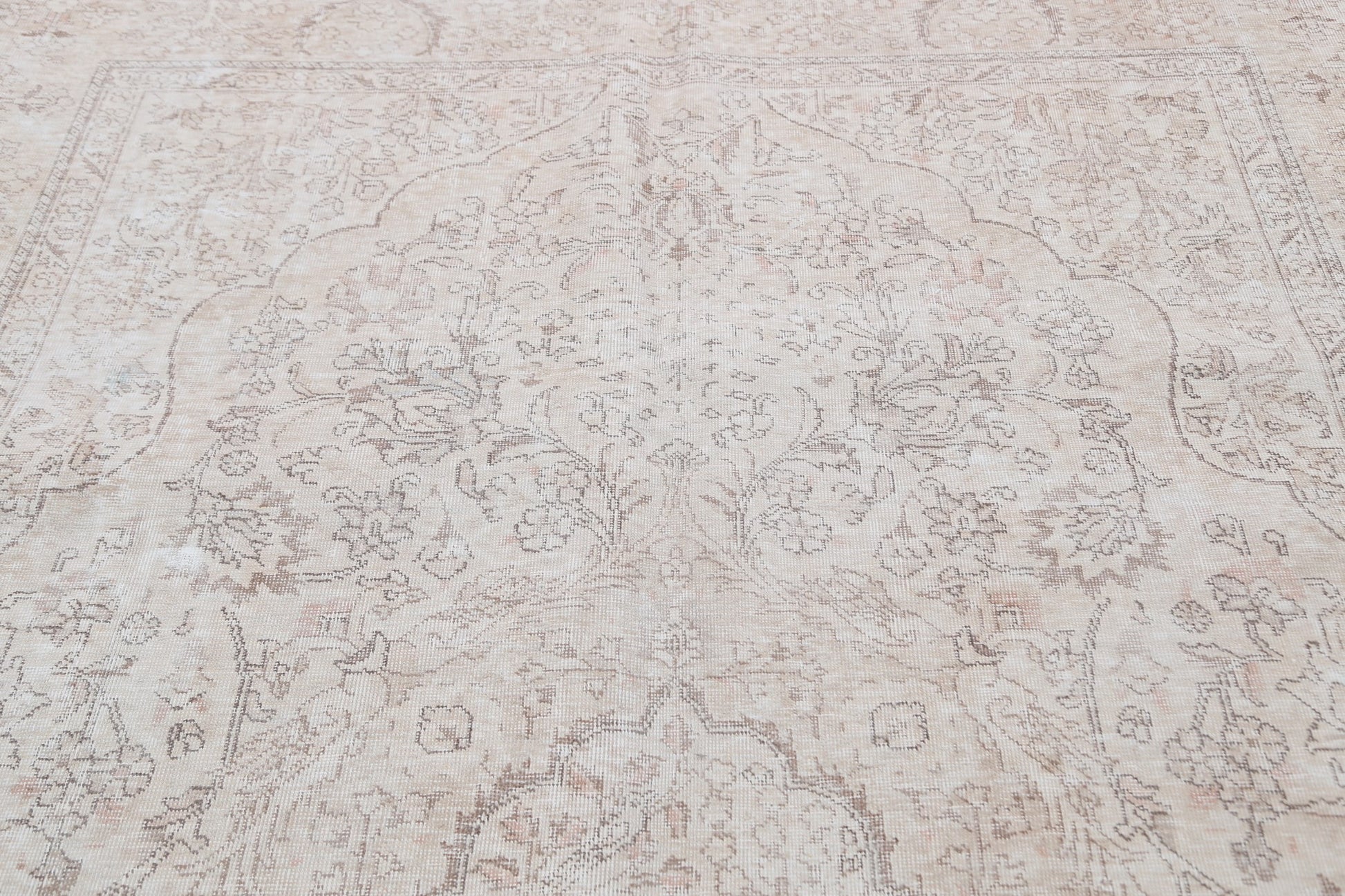 A Beautiful Genuine Persia ( Persia ) Tabriz rug is Hand Knotted by skillful weavers in Persia ( Persia ) with 100% Wool Material. This rug is in Very Good (Evenly Low Pile) condition. dimensions are 9' 8'' X 6' 8'' in foot and 295 X 203 in centimeter. the primary color is Beige & Ivories.