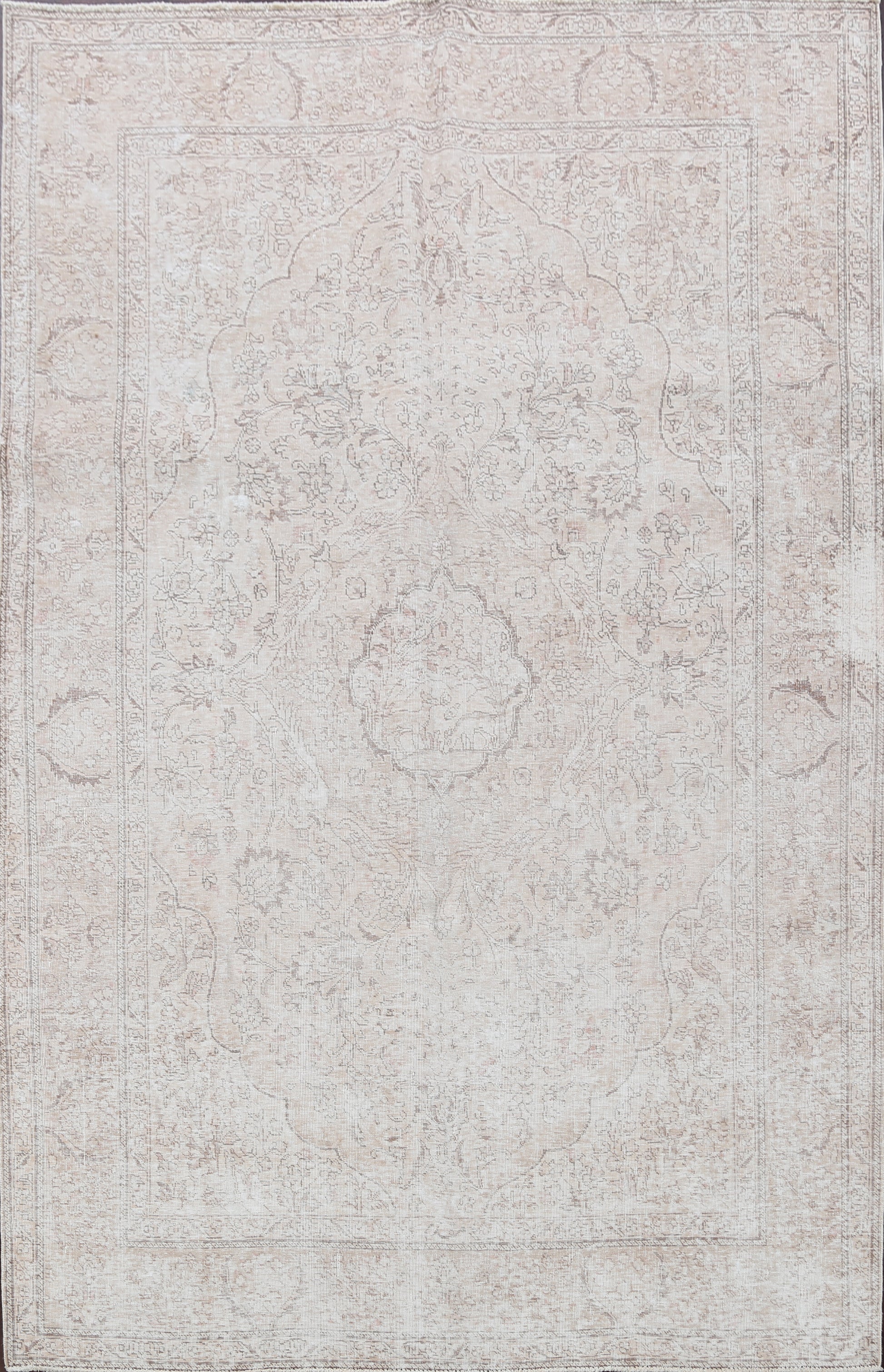 Muted Distressed Tabriz Persian Area Rug 7x10