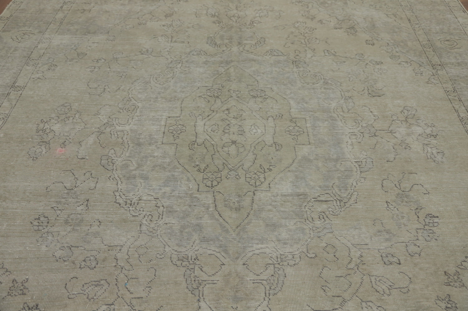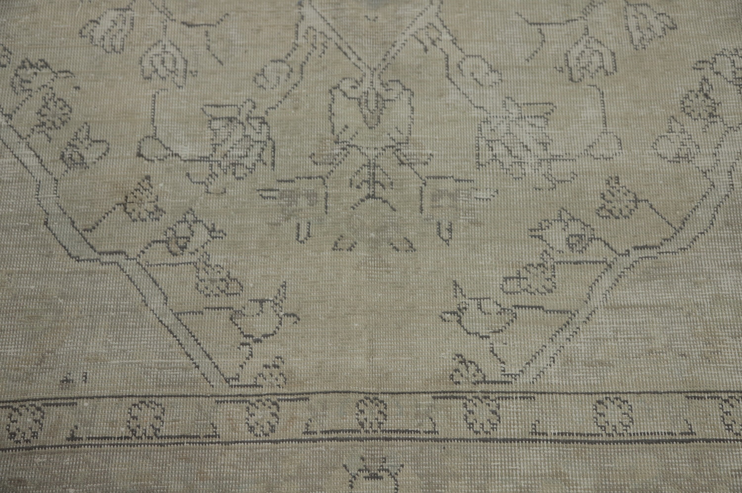 A Beautiful Genuine Persia ( Persia ) Tabriz rug is Hand Knotted by skillful weavers in Persia ( Persia ) with 100% Wool Material. This rug is in Very Good (Evenly-low-pile - Small Bleeding) condition. dimensions are 10' 3'' X 7' 10'' in foot and 312 X 239 in centimeter. the primary color is Beige & Ivories.