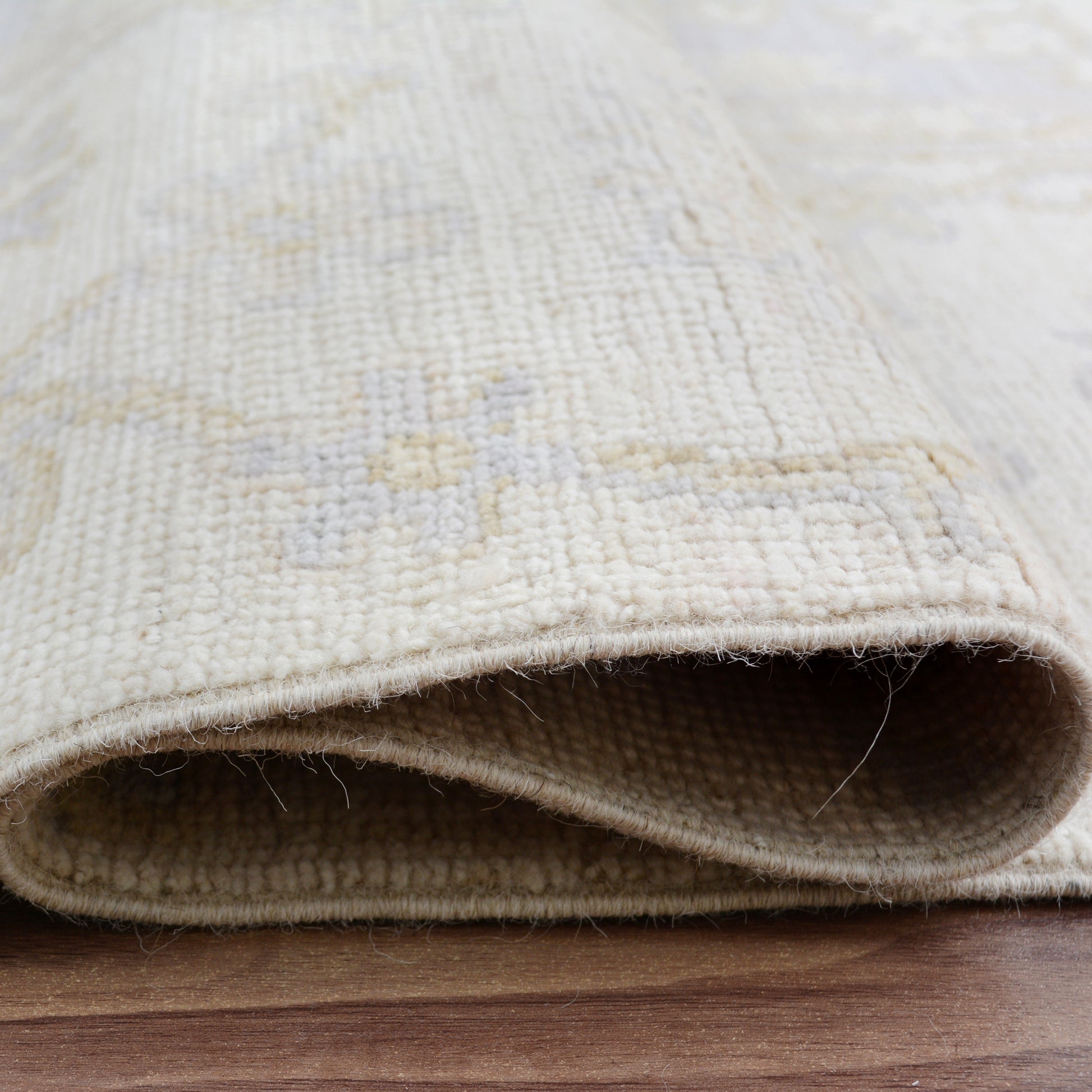 A Beautiful Genuine Turkey Oushak rug is Hand Knotted by skillful weavers in Turkey with 100% Wool Material. This rug is in New, First Quality condition. dimensions are 6' 2'' X 5' 0'' in foot and 188 X 152 in centimeter. the primary color is Beige & Ivories.