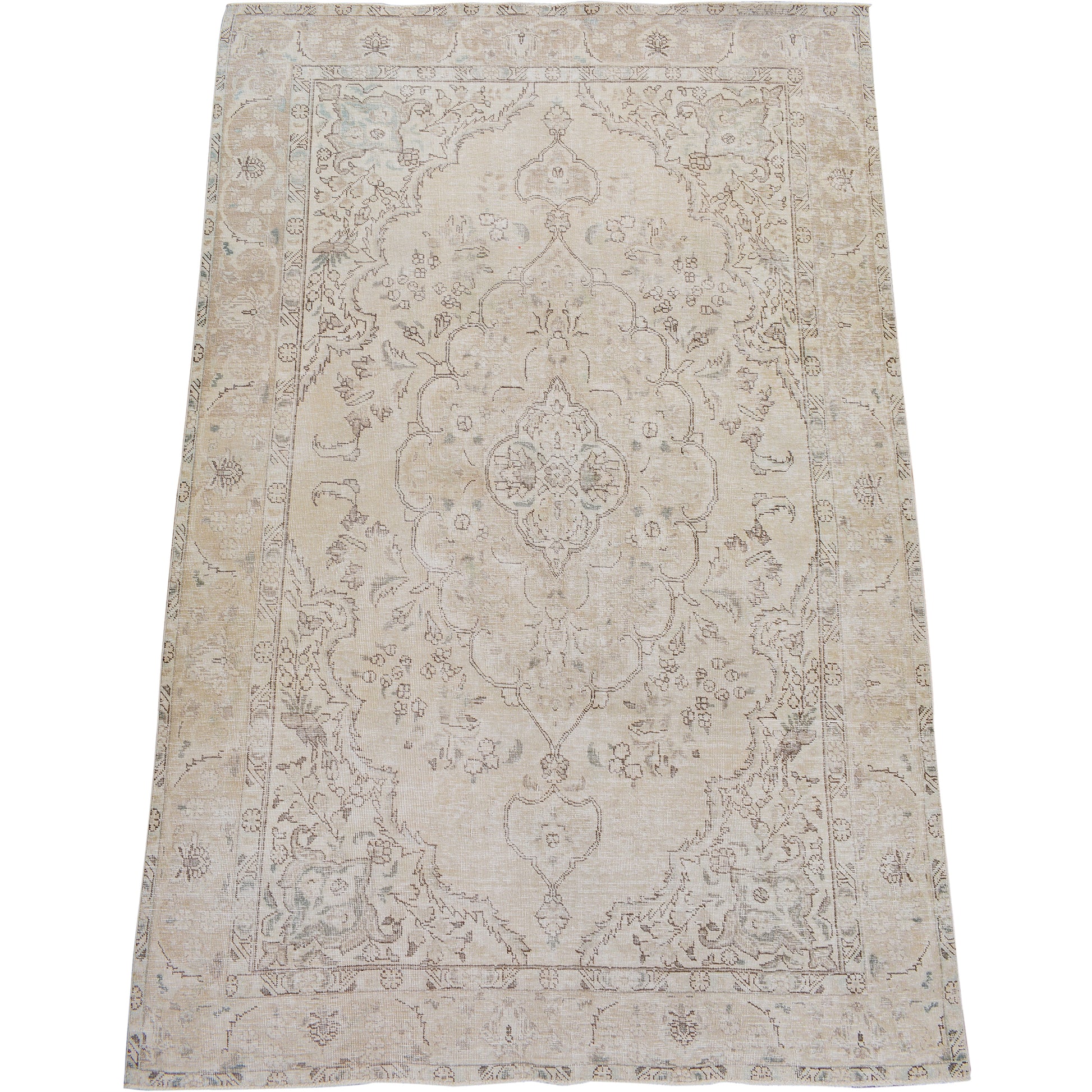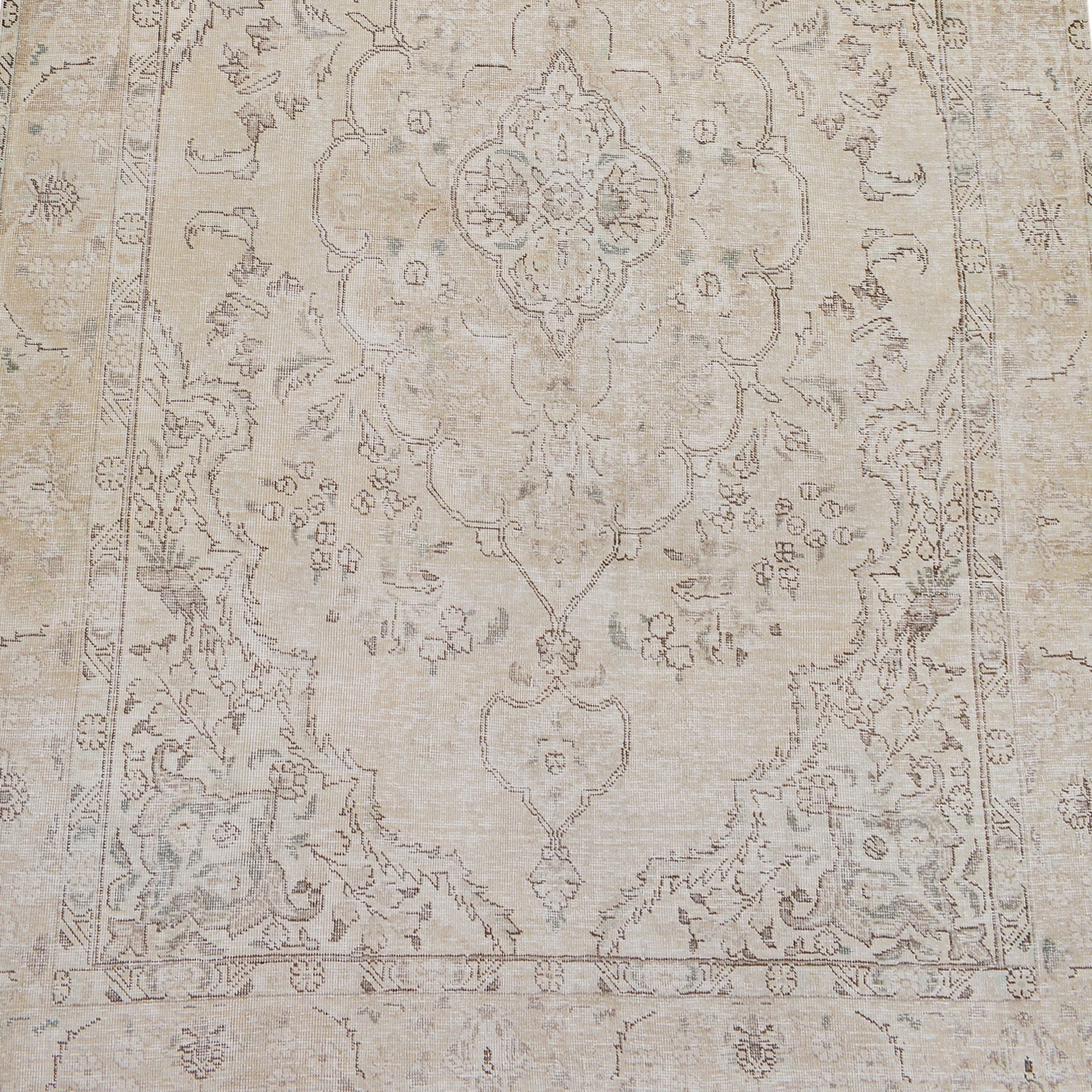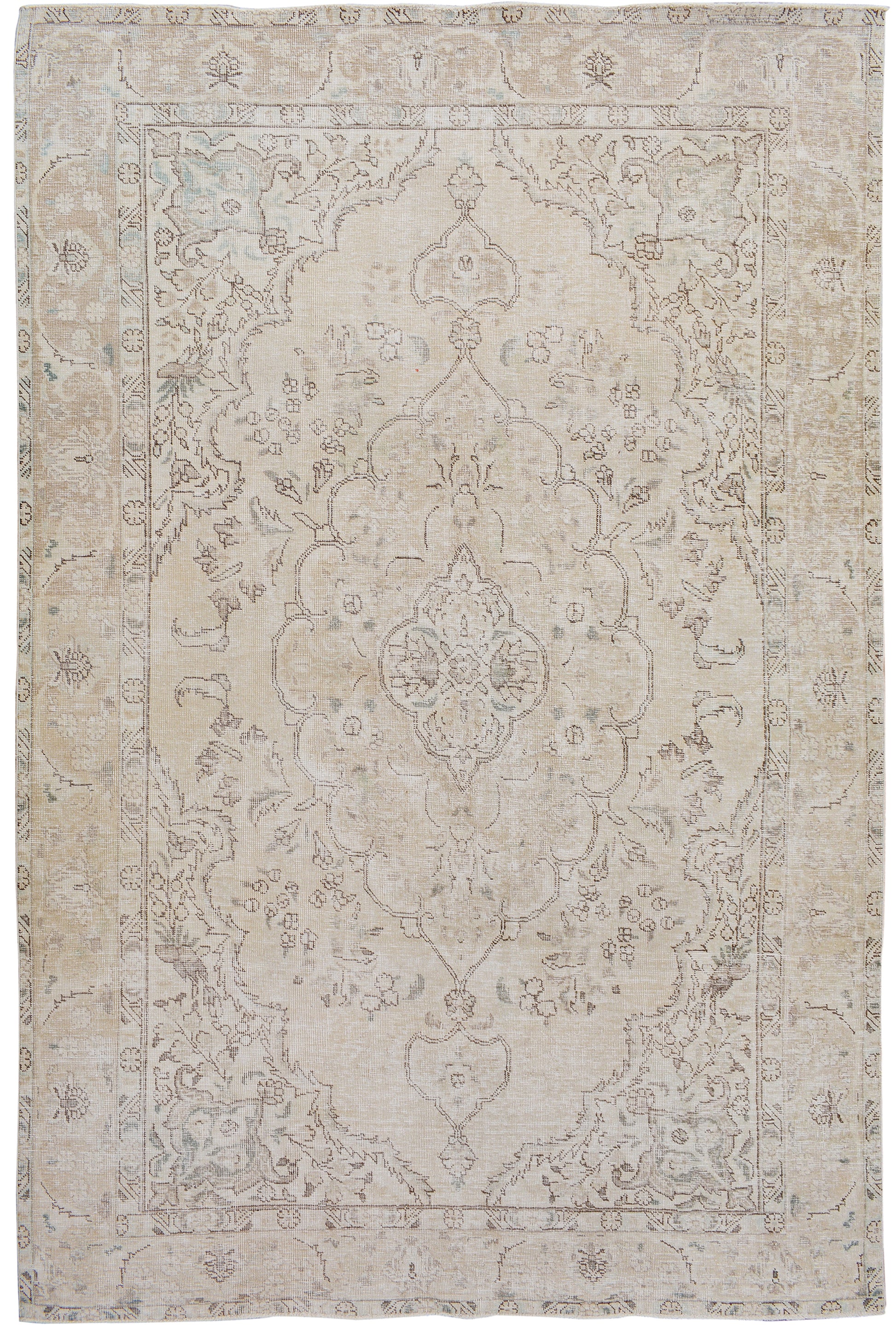 A Beautiful Genuine Persia ( Persia ) Tabriz rug is Hand Knotted by skillful weavers in Persia ( Persia ) with 100% Wool Material. This rug is in Very Good (Evenly Low Pile) condition. dimensions are 9' 8'' X 6' 5'' in foot and 295 X 196 in centimeter. the primary color is Beige & Ivories.