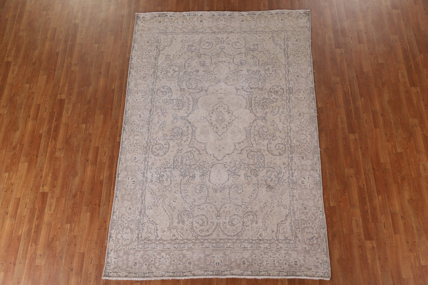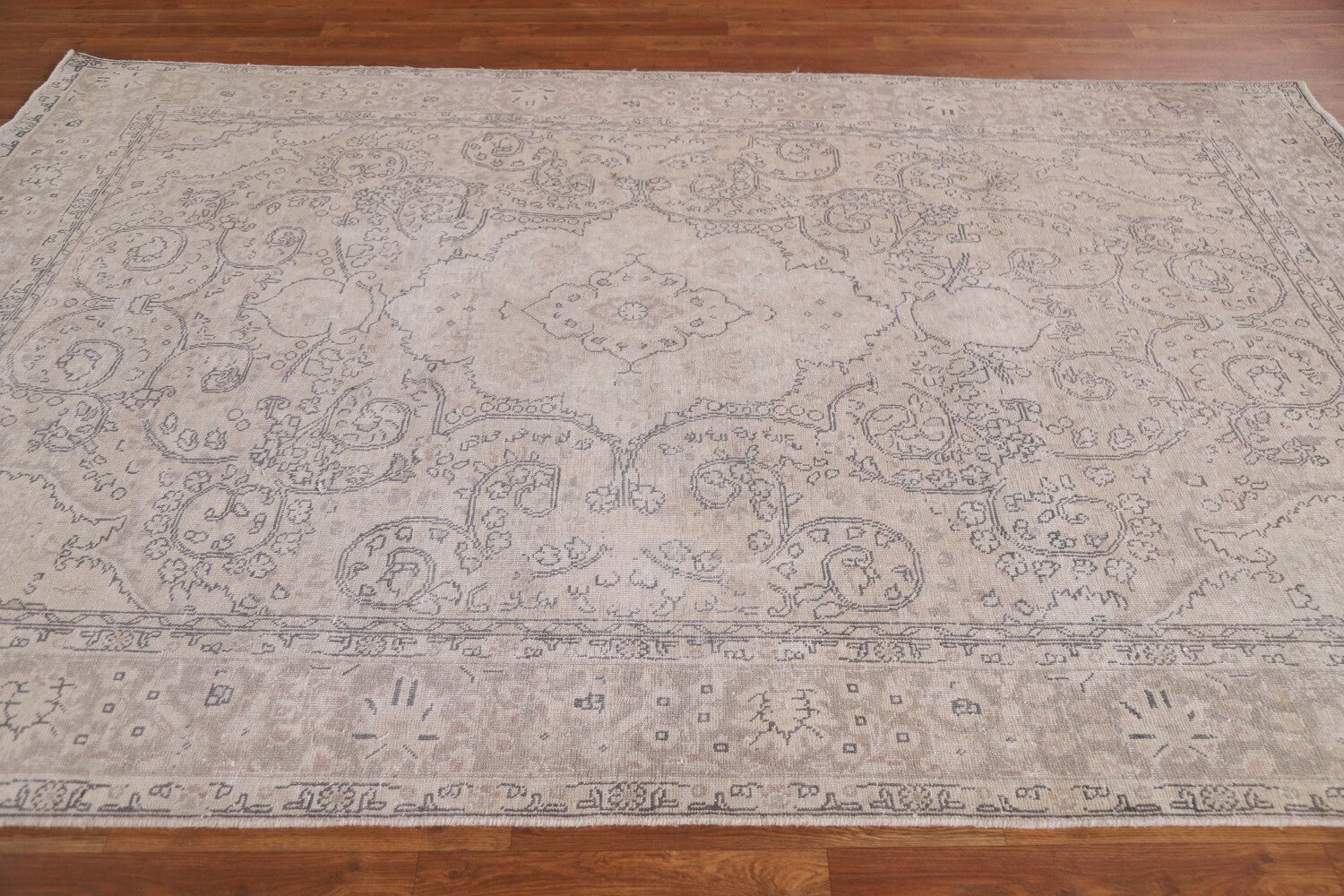 Muted Floral Wool Tabriz Persian Area Rug 6x9