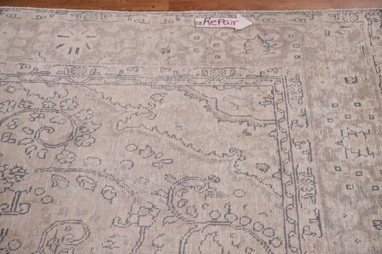 A Beautiful Genuine Persia ( Persia ) Tabriz rug is Hand Knotted by skillful weavers in Persia ( Persia ) with 100% Wool Material. This rug is in Very Good (Evenly Low Pile-Repair) condition. dimensions are 9' 4'' X 6' 3'' in foot and 284 X 191 in centimeter. the primary color is Beige & Ivories.