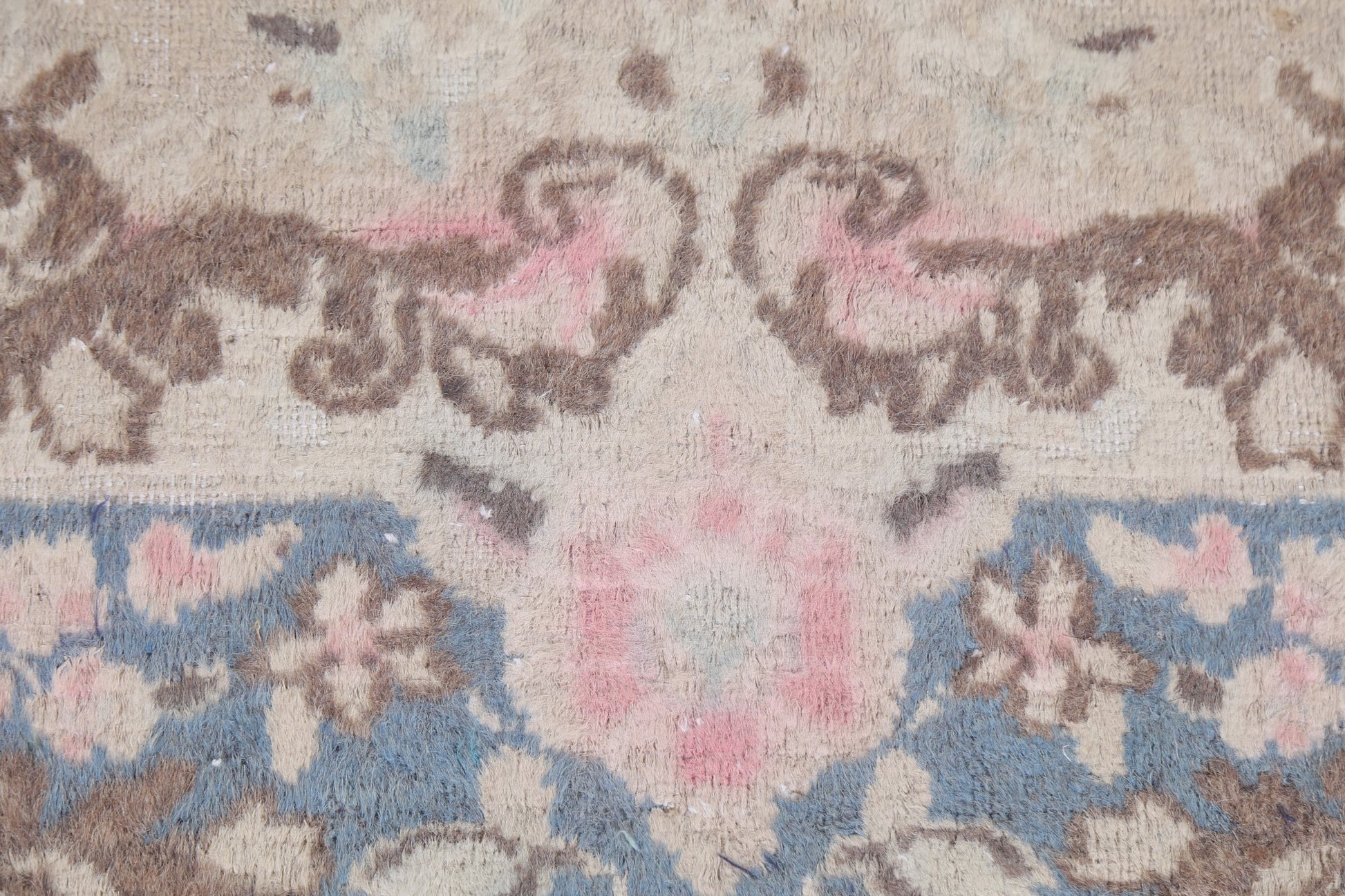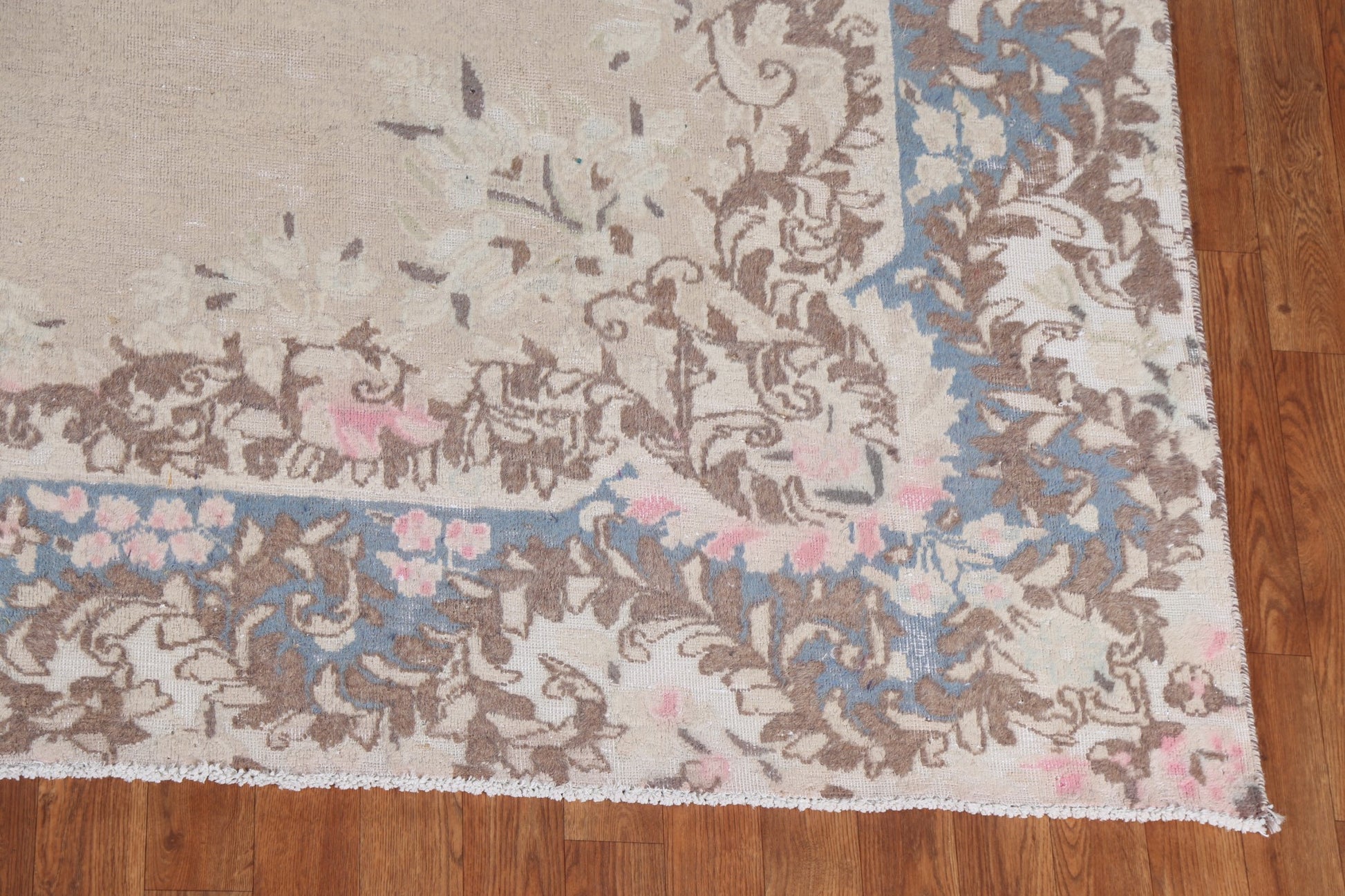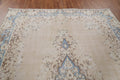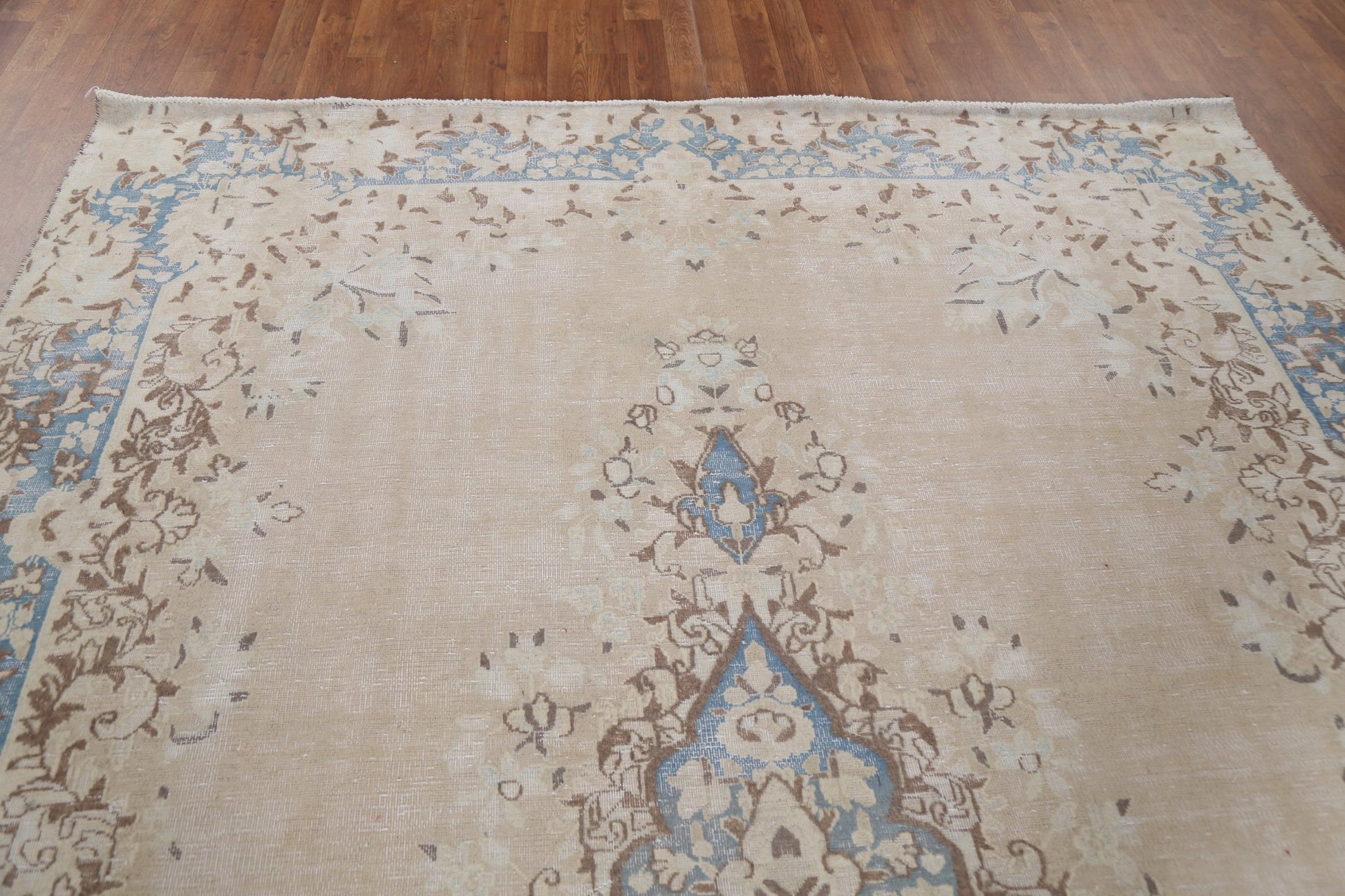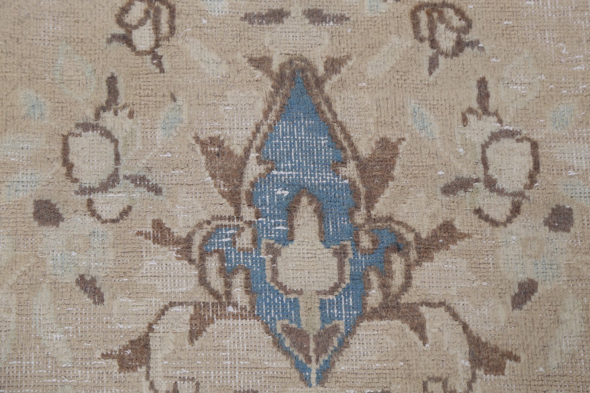 A Beautiful Genuine Persia ( Persia ) Kerman rug is Hand Knotted by skillful weavers in Persia ( Persia ) with 100% Wool Material. This rug is in Very Good (Evenly Low Pile-Abrash) condition. dimensions are 10' 7'' X 7' 5'' in foot and 323 X 226 in centimeter. the primary color is Beige & Ivories.