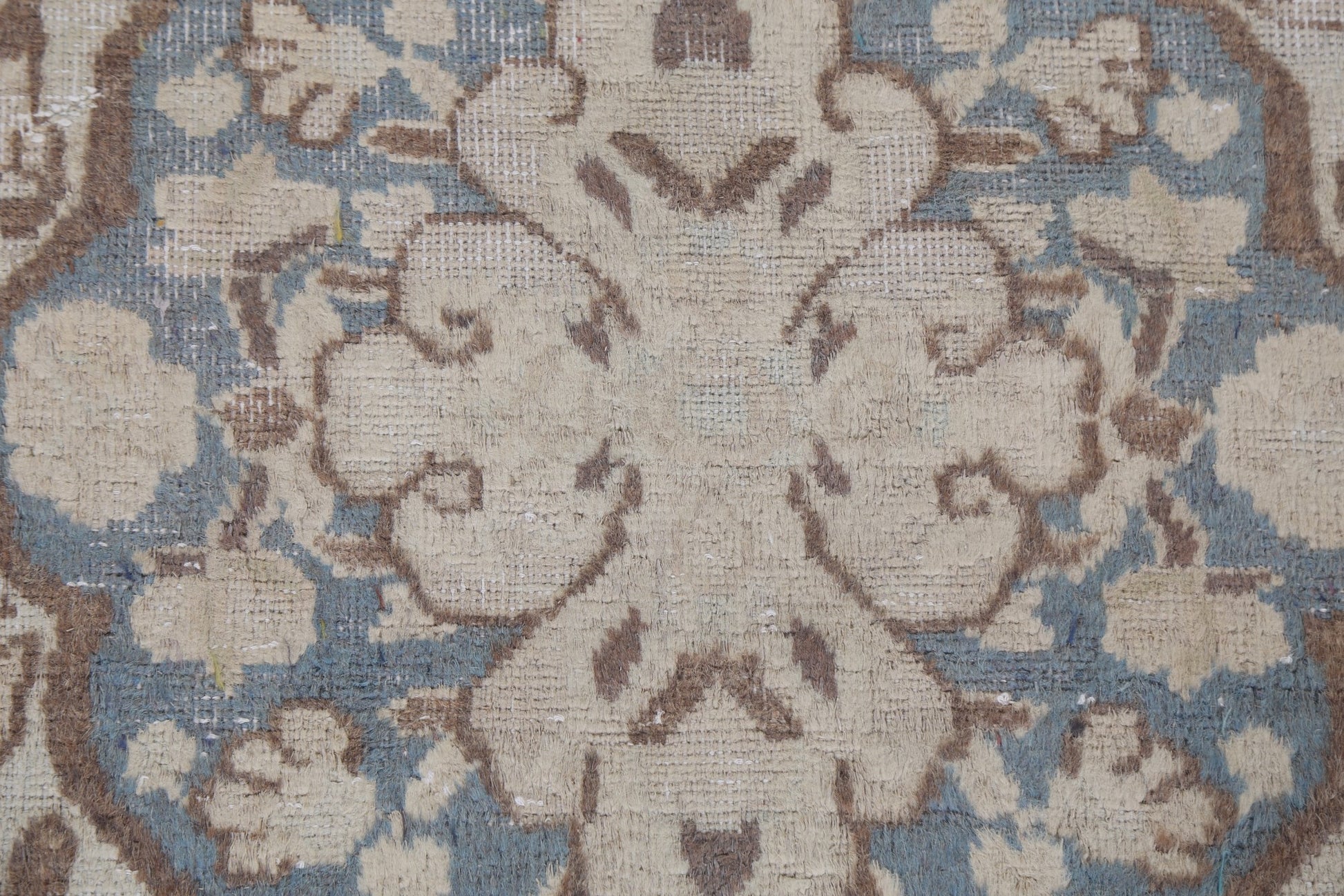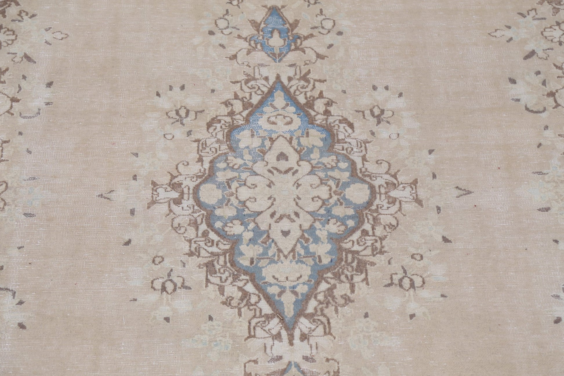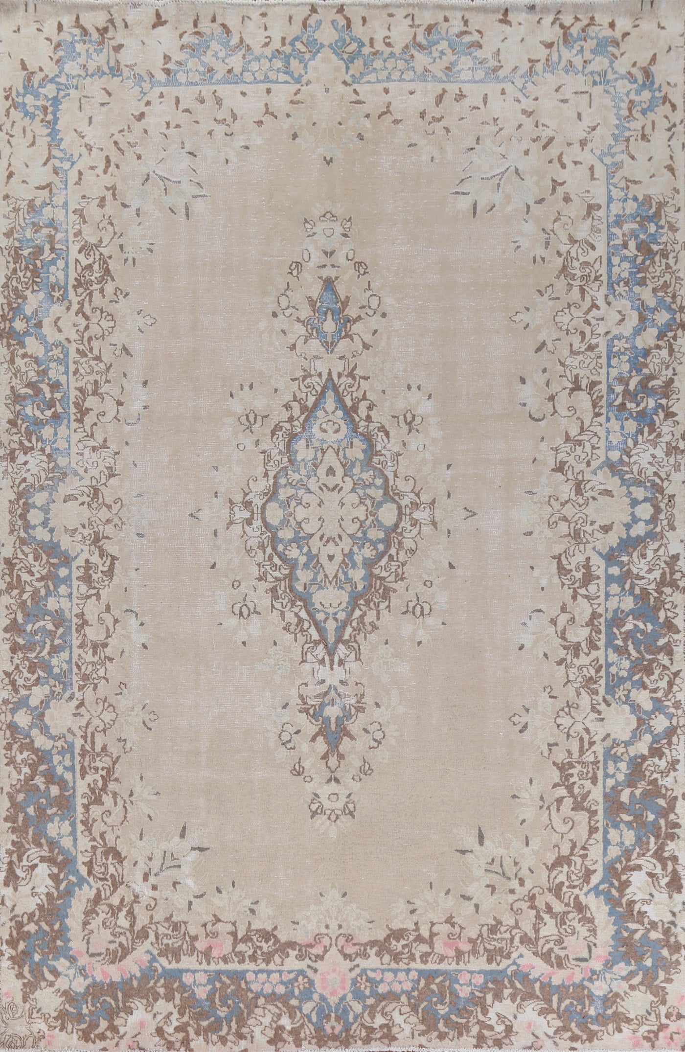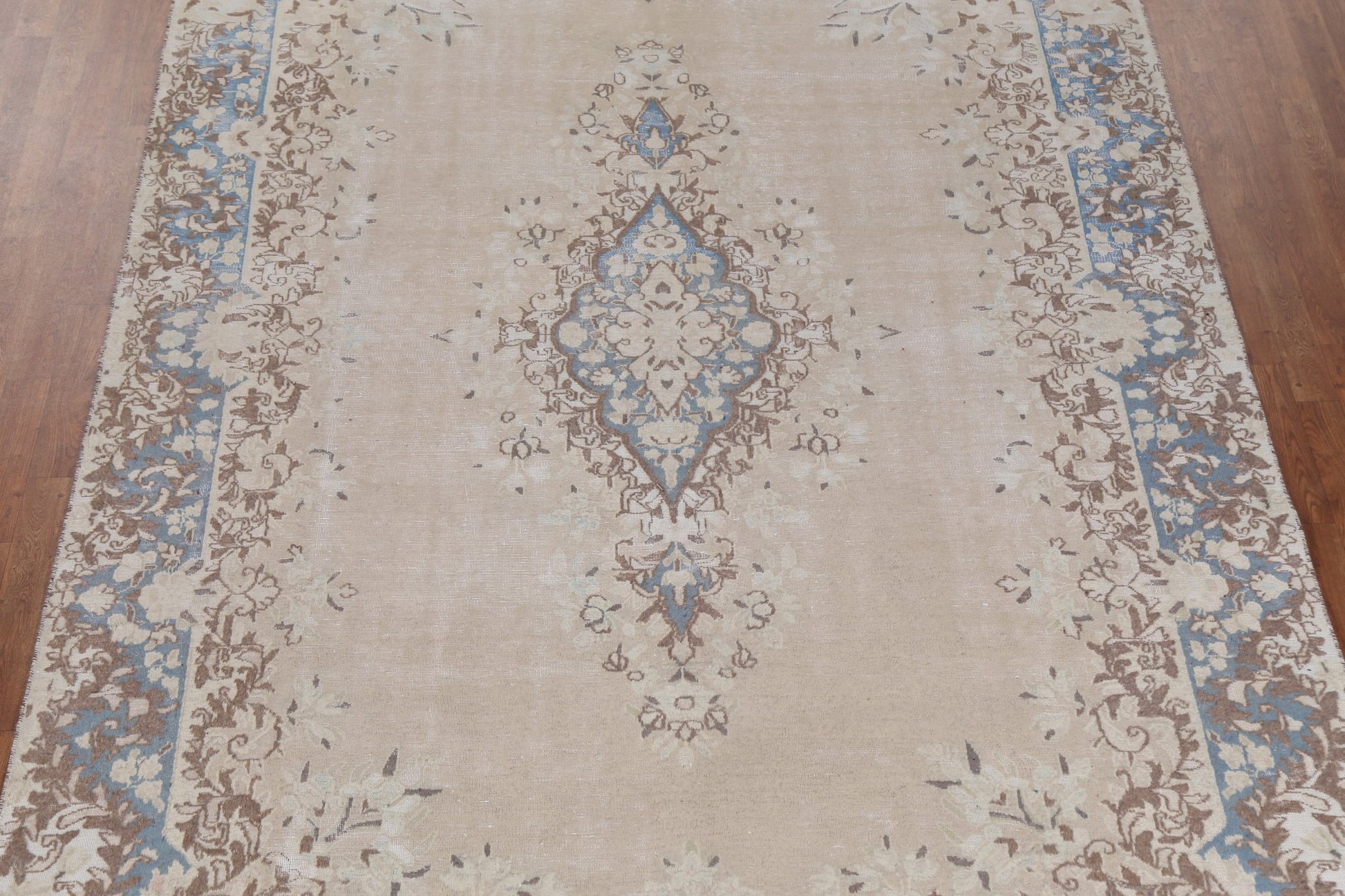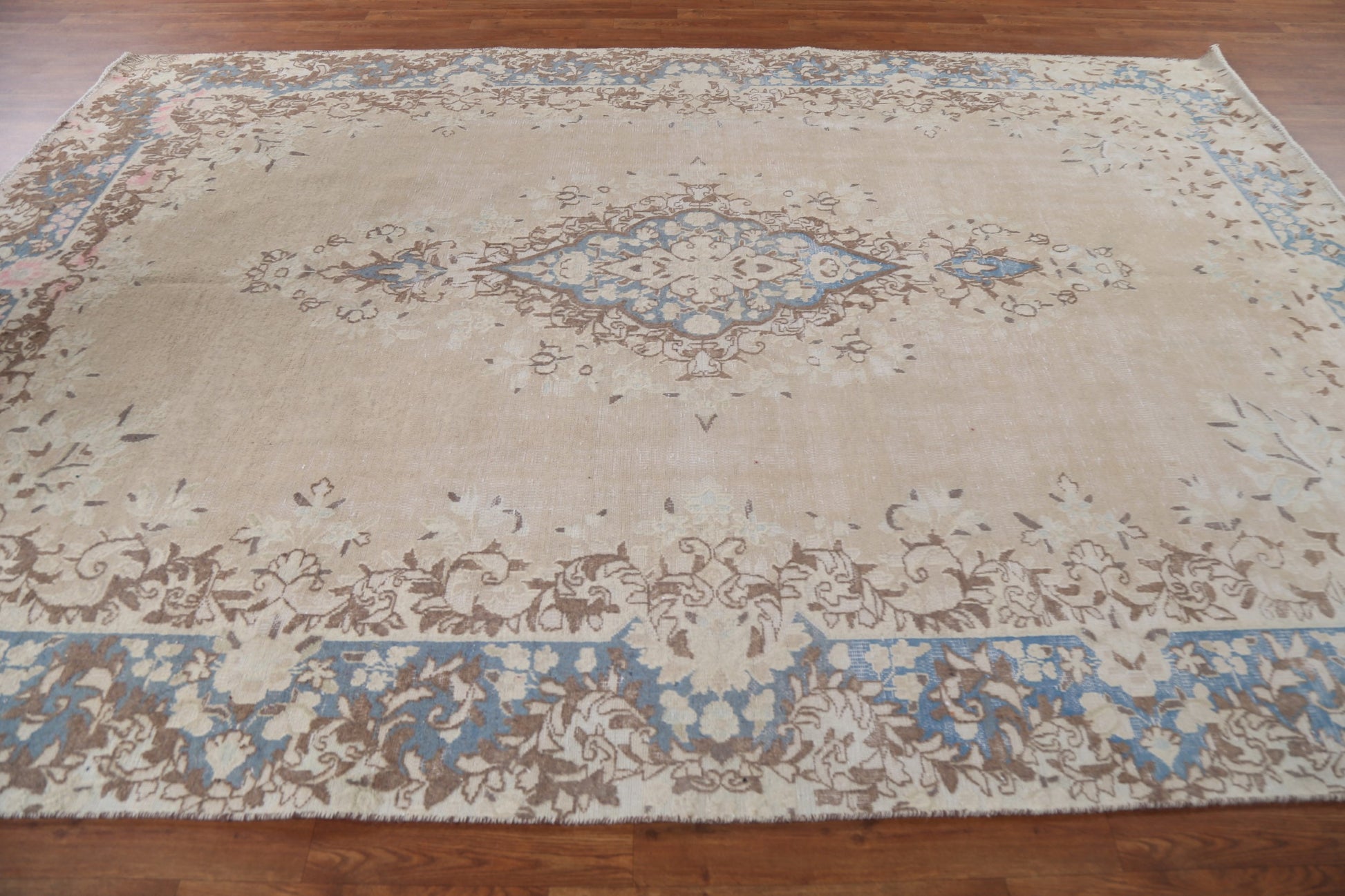A Beautiful Genuine Persia ( Persia ) Kerman rug is Hand Knotted by skillful weavers in Persia ( Persia ) with 100% Wool Material. This rug is in Very Good (Evenly Low Pile-Abrash) condition. dimensions are 10' 7'' X 7' 5'' in foot and 323 X 226 in centimeter. the primary color is Beige & Ivories.