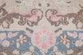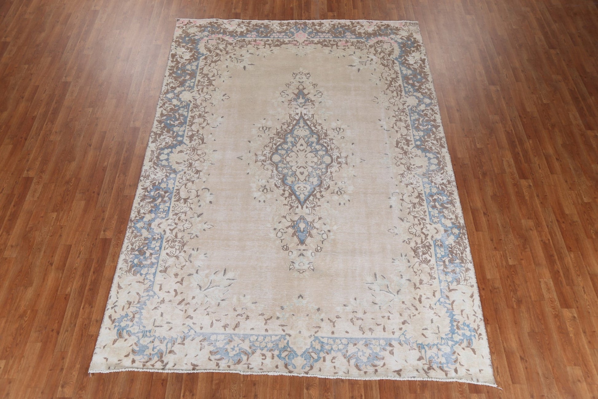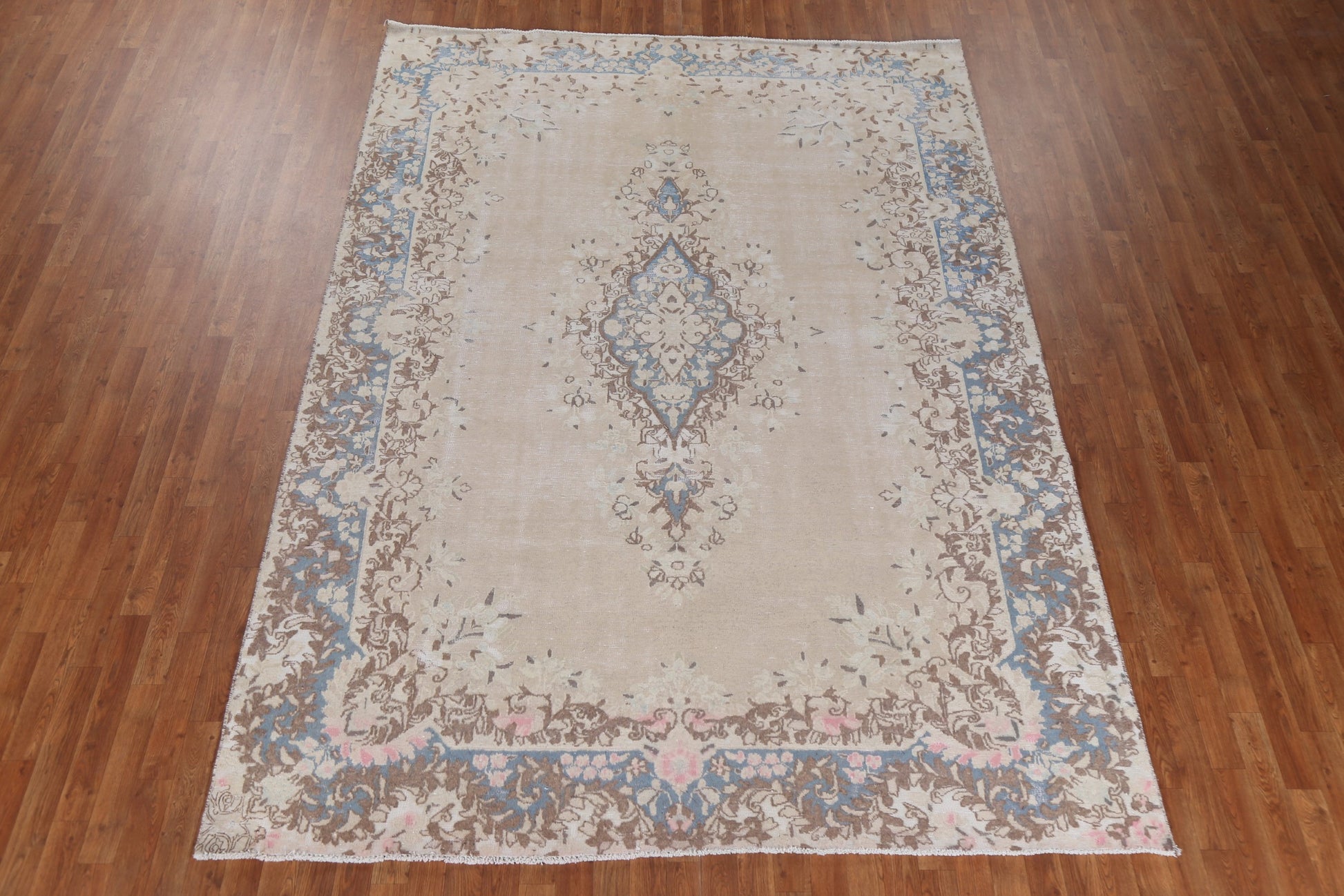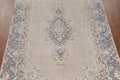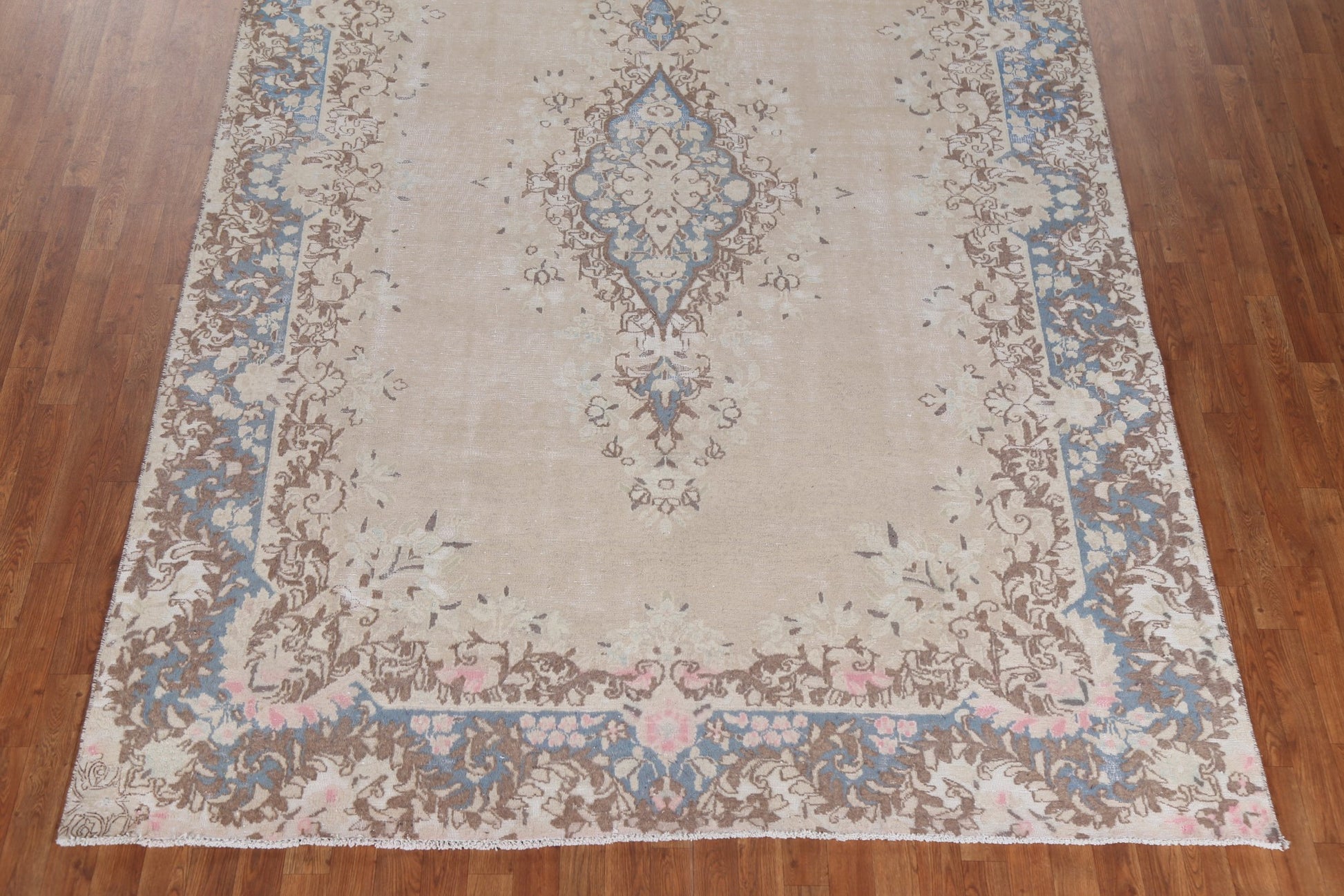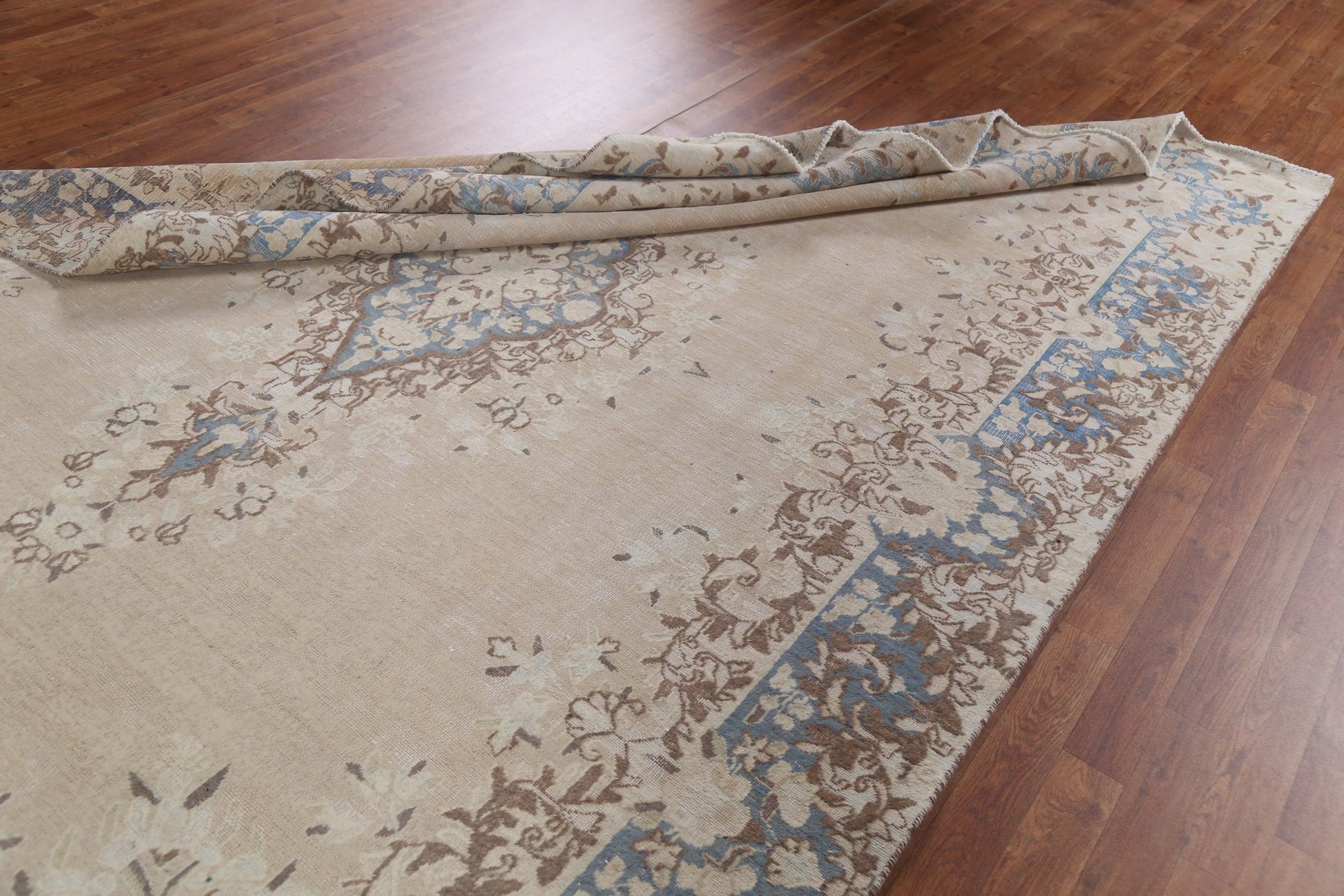A Beautiful Genuine Persia ( Persia ) Kerman rug is Hand Knotted by skillful weavers in Persia ( Persia ) with 100% Wool Material. This rug is in Very Good (Evenly Low Pile-Abrash) condition. dimensions are 10' 7'' X 7' 5'' in foot and 323 X 226 in centimeter. the primary color is Beige & Ivories.