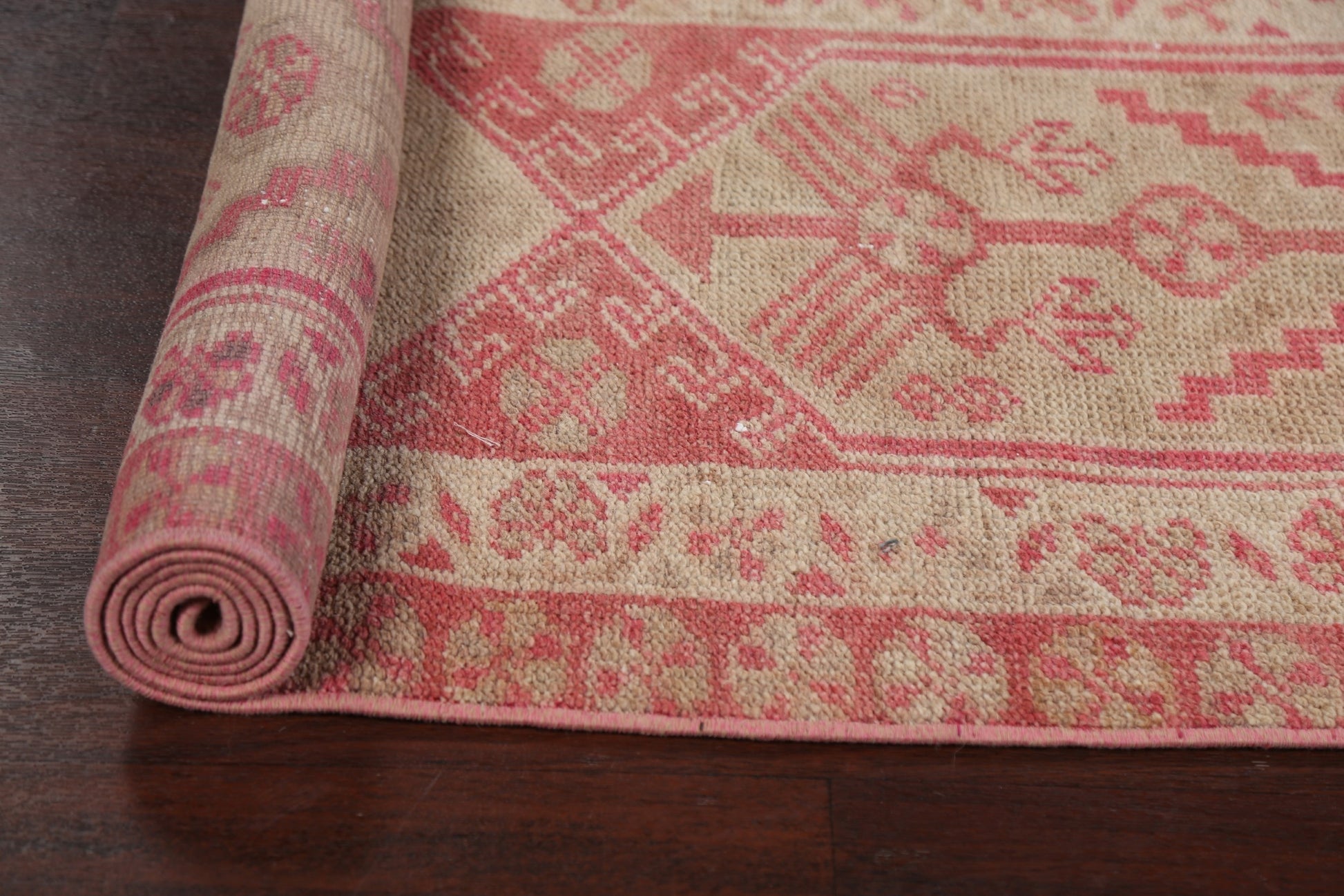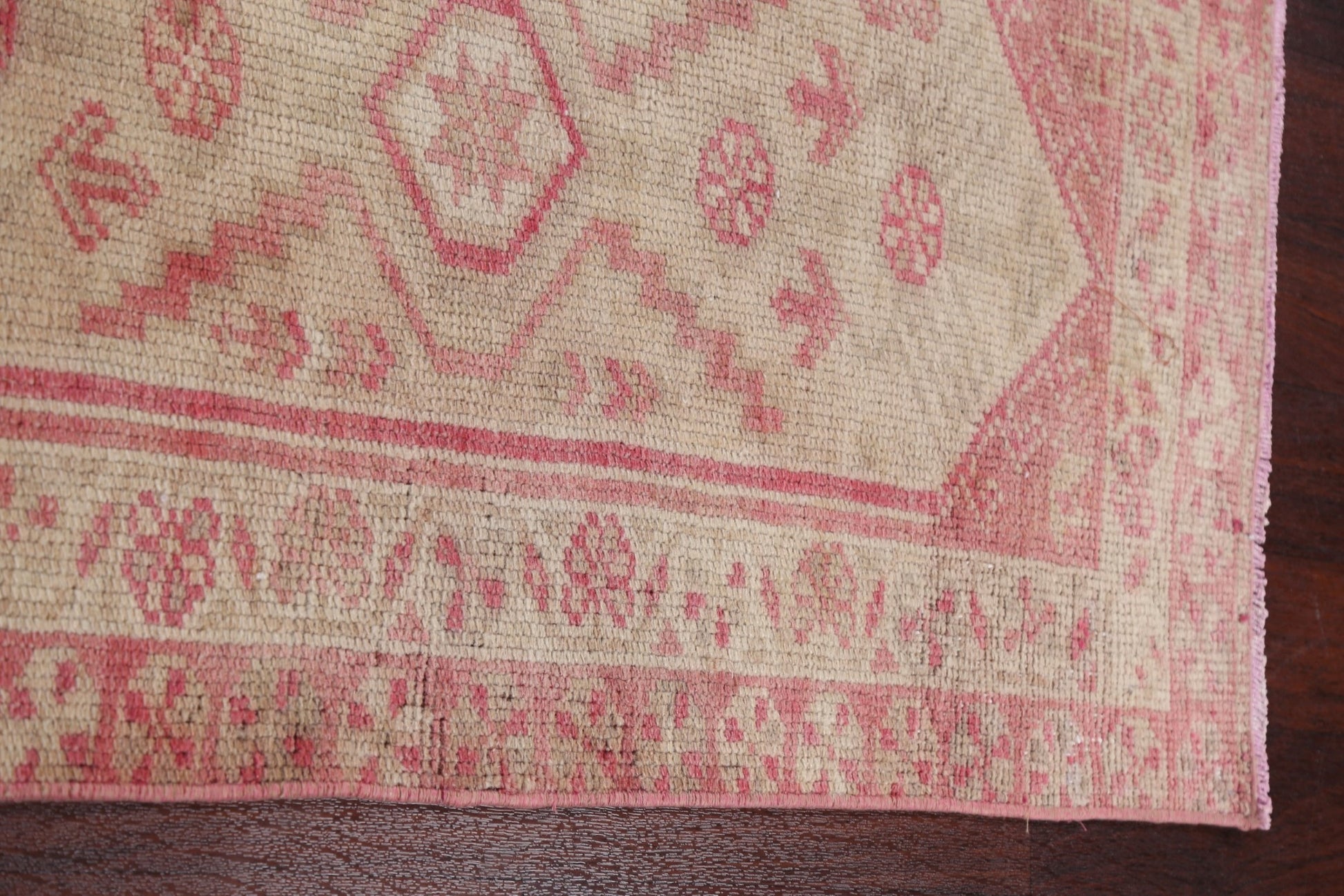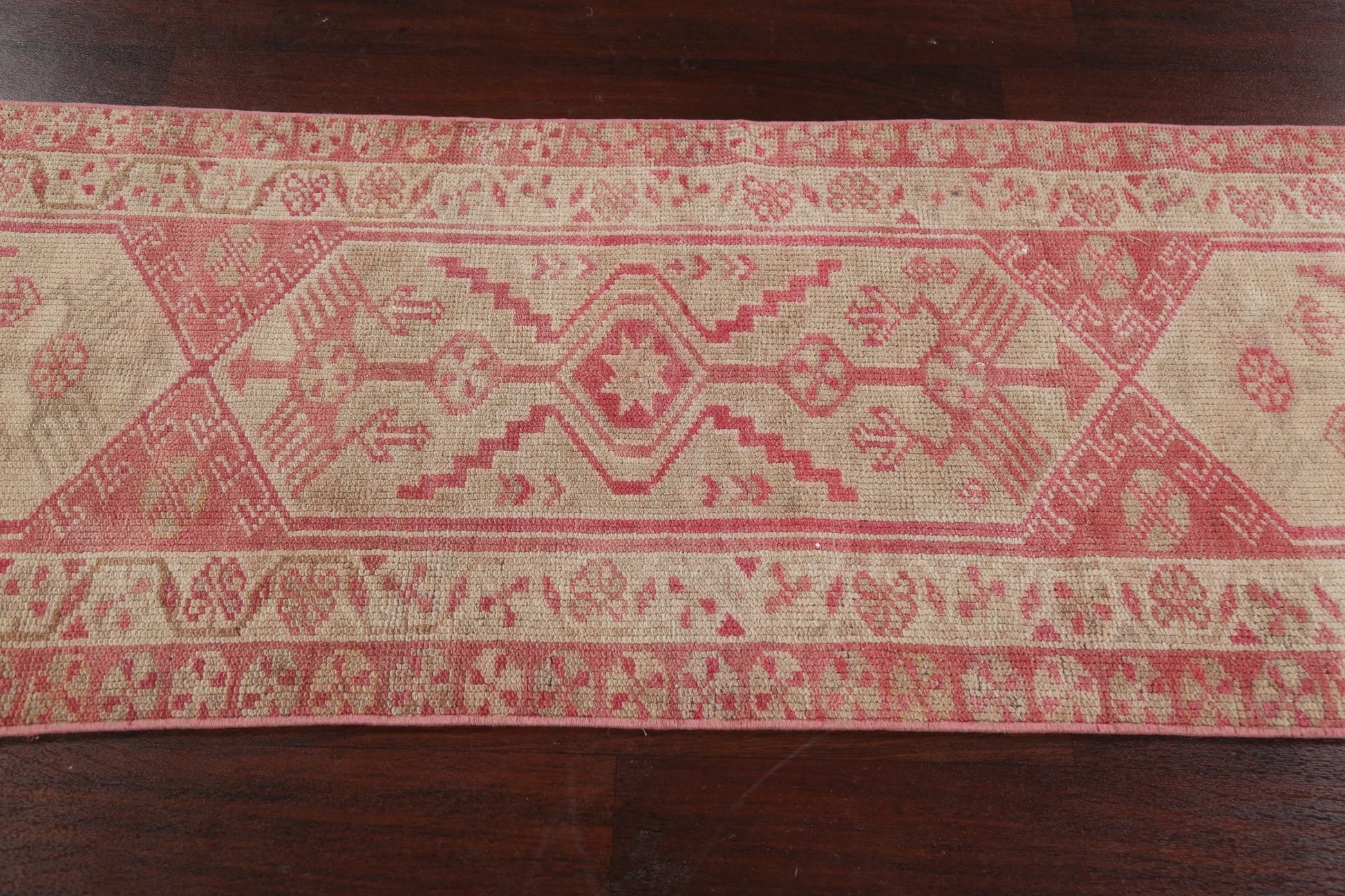 A Beautiful Genuine Turkey Oushak rug is Hand Knotted by skillful weavers in Turkey with 100% Wool Material. This rug is in New, First Quality condition. dimensions are 11' 7'' X 2' 5'' in foot and 353 X 74 in centimeter. the primary color is Pink.