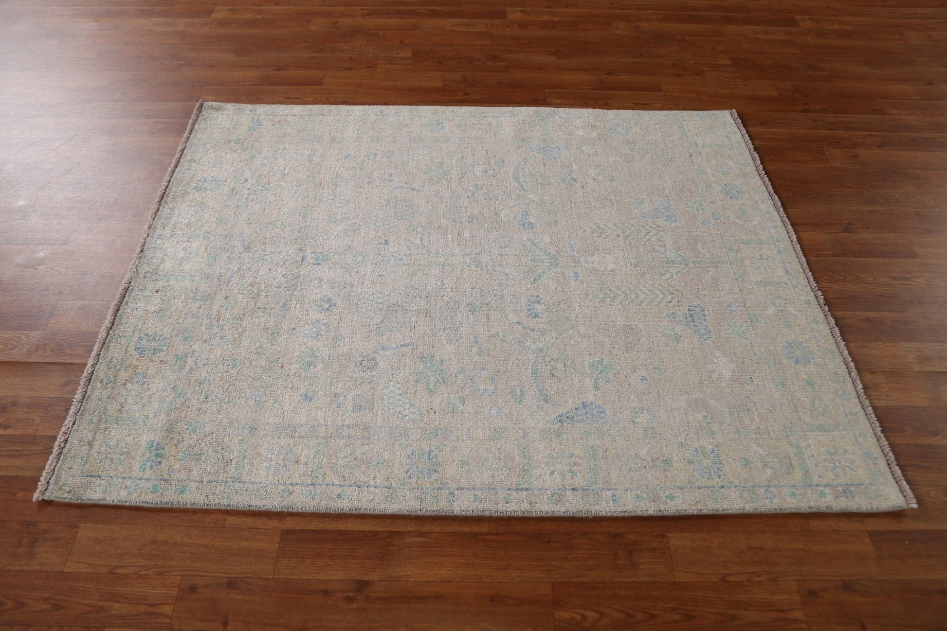 Muted Geometric Oushak Turkish Area Rug 4x5