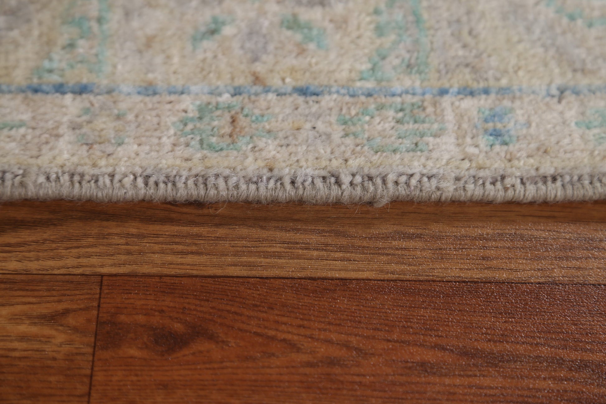 A Beautiful Genuine Turkey Oushak rug is Hand Knotted by skillful weavers in Turkey with 100% Wool Material. This rug is in New, First Quality condition. dimensions are 4' 11'' X 3' 10'' in foot and 150 X 117 in centimeter. the primary color is Beige & Ivories.