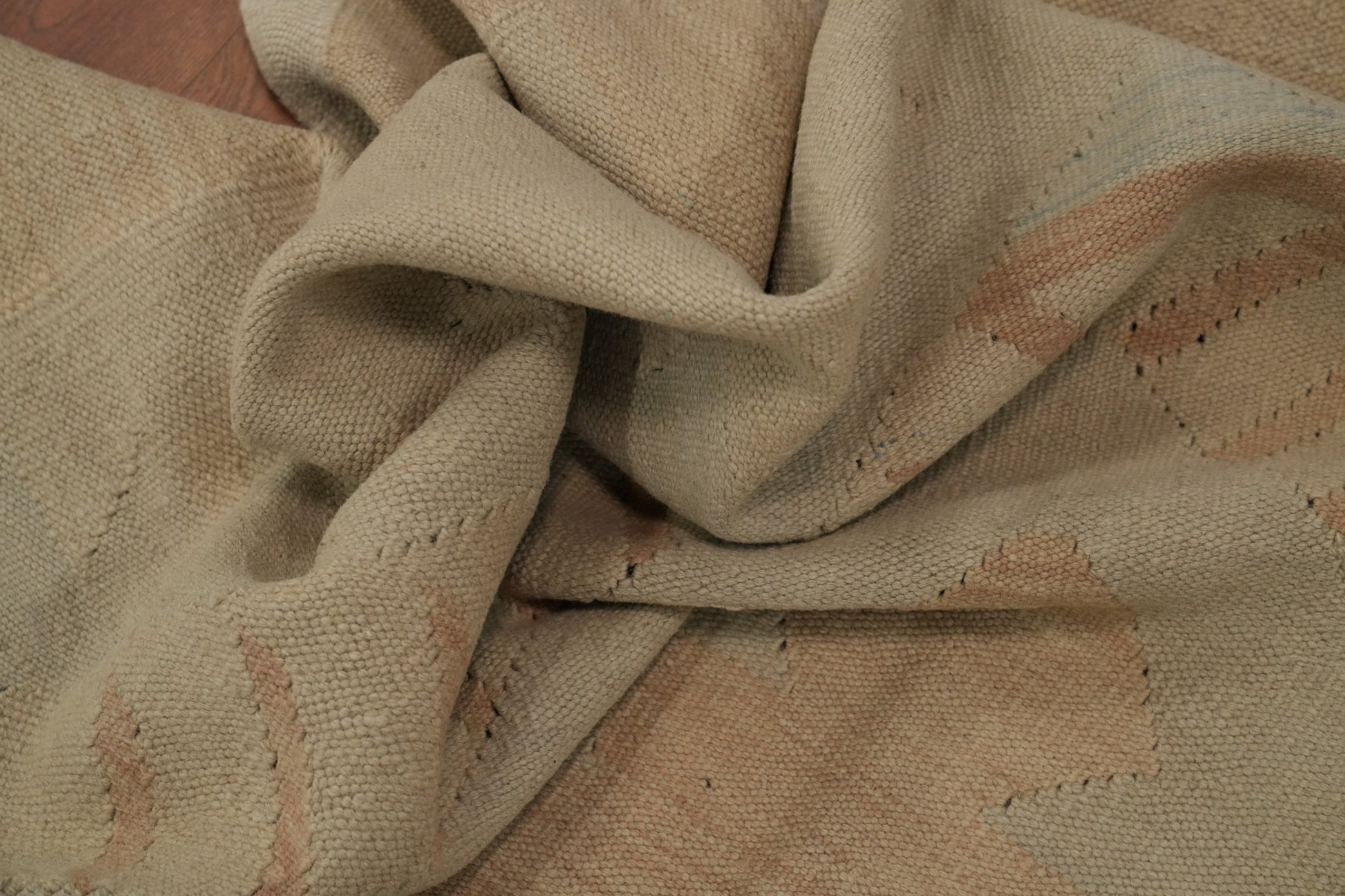 Muted Geometric Pattern Wool Kilim Rug 5x7 for Subtle Elegance