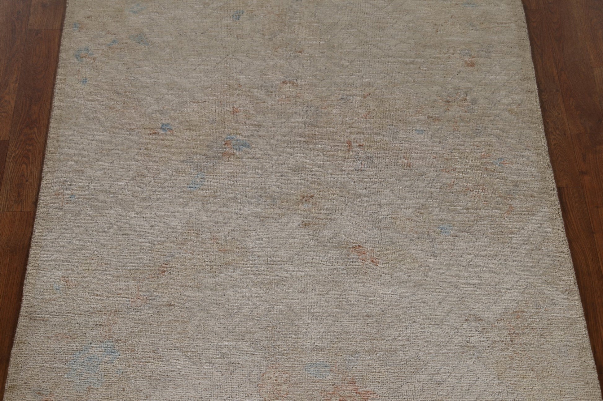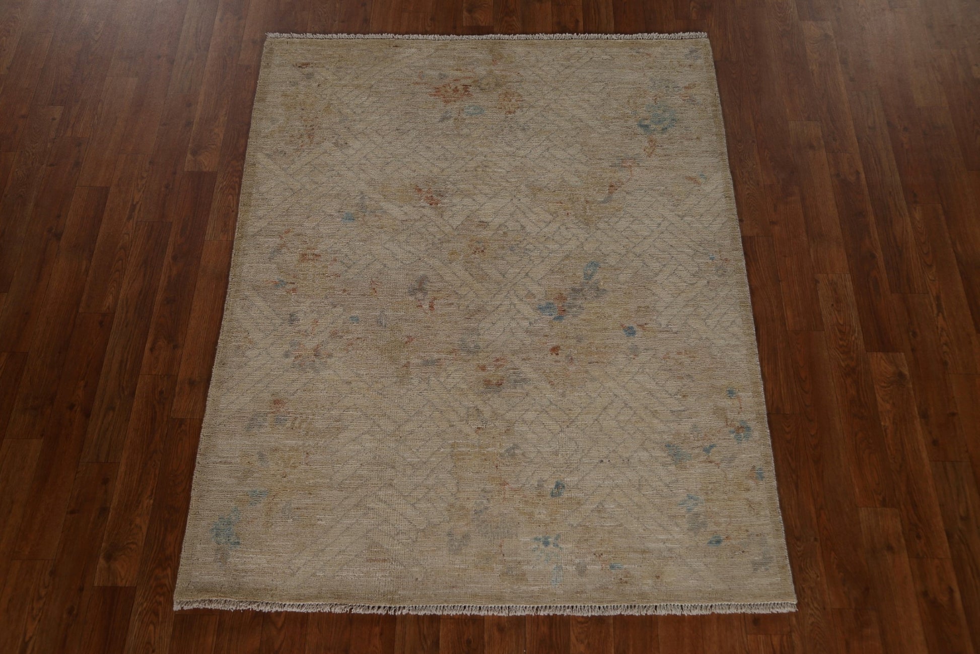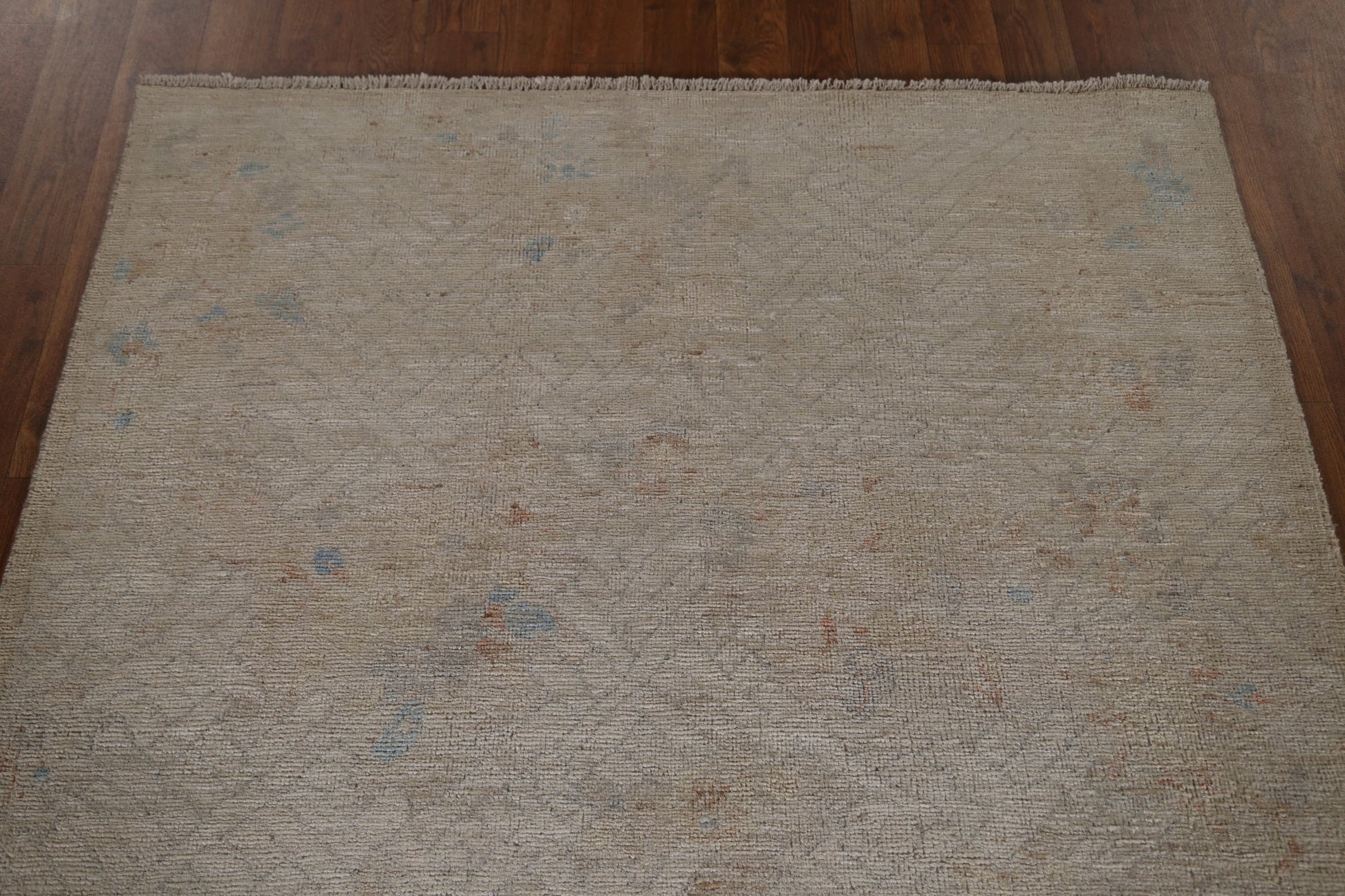 A Beautiful Genuine Turkey Oushak rug is Hand Knotted by skillful weavers in Turkey with 100% Wool Material. This rug is in New, First Quality condition. dimensions are 4' 10'' X 3' 10'' in foot and 147 X 117 in centimeter. the primary color is Beige & Ivories.