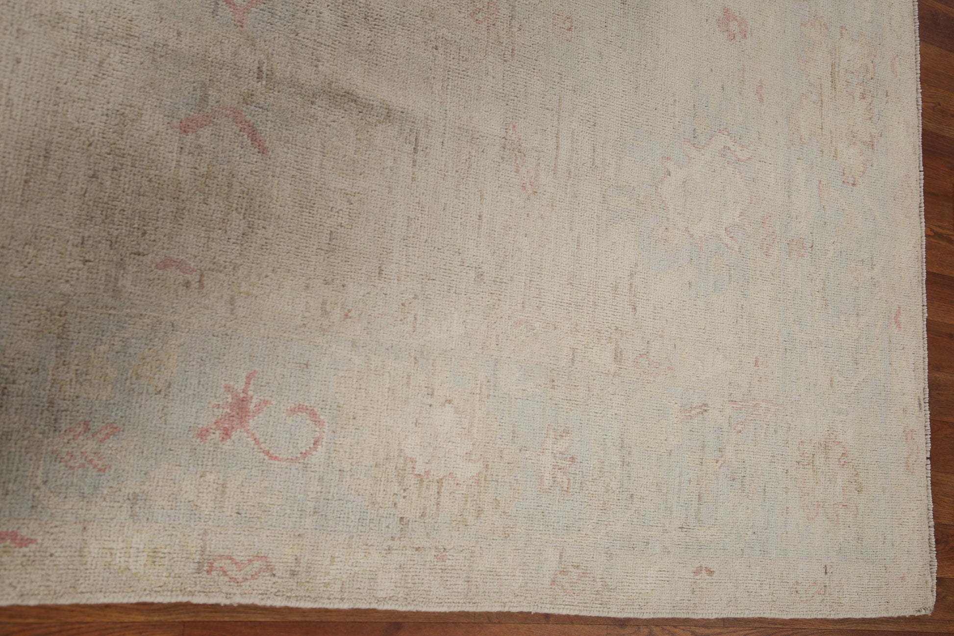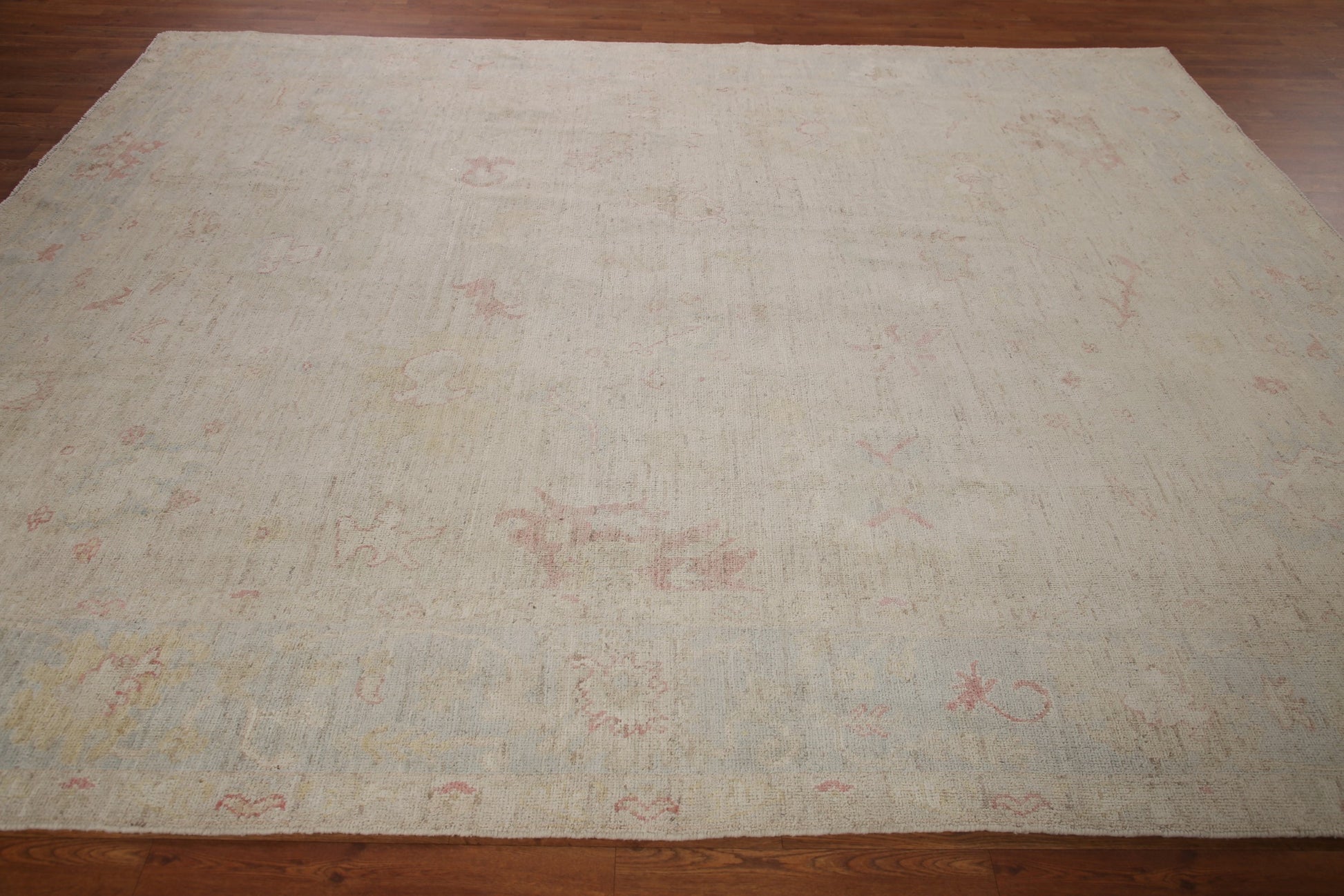 A Beautiful Genuine Turkey Oushak rug is Hand Knotted by skillful weavers in Turkey with 100% Wool Material. This rug is in New, First Quality condition. dimensions are 9' 10'' X 8' 1'' in foot and 300 X 246 in centimeter. the primary color is Beige & Ivories.