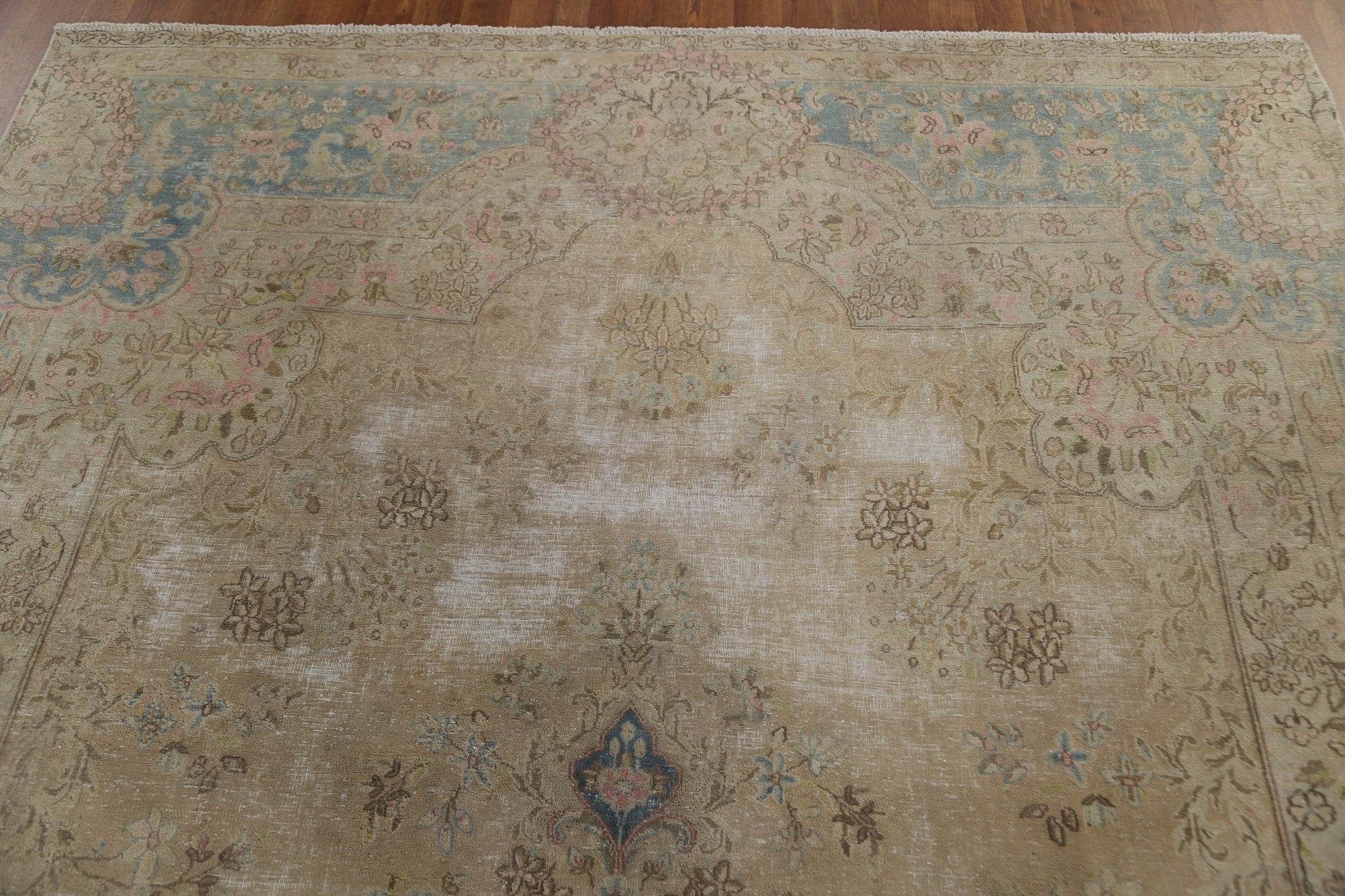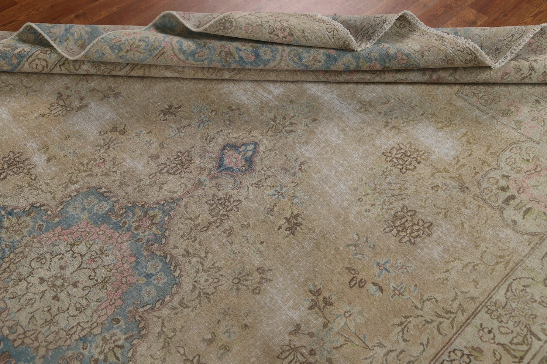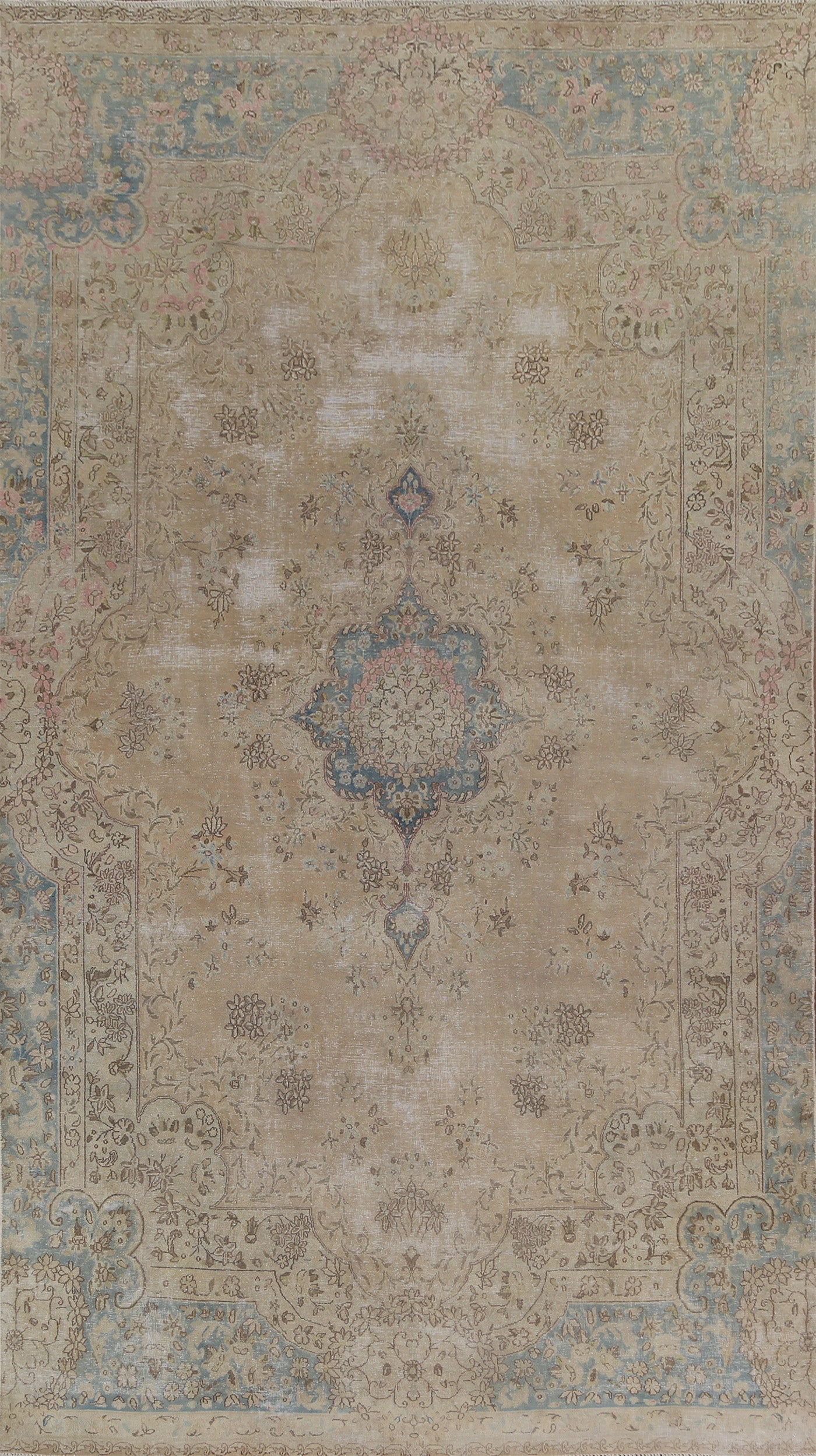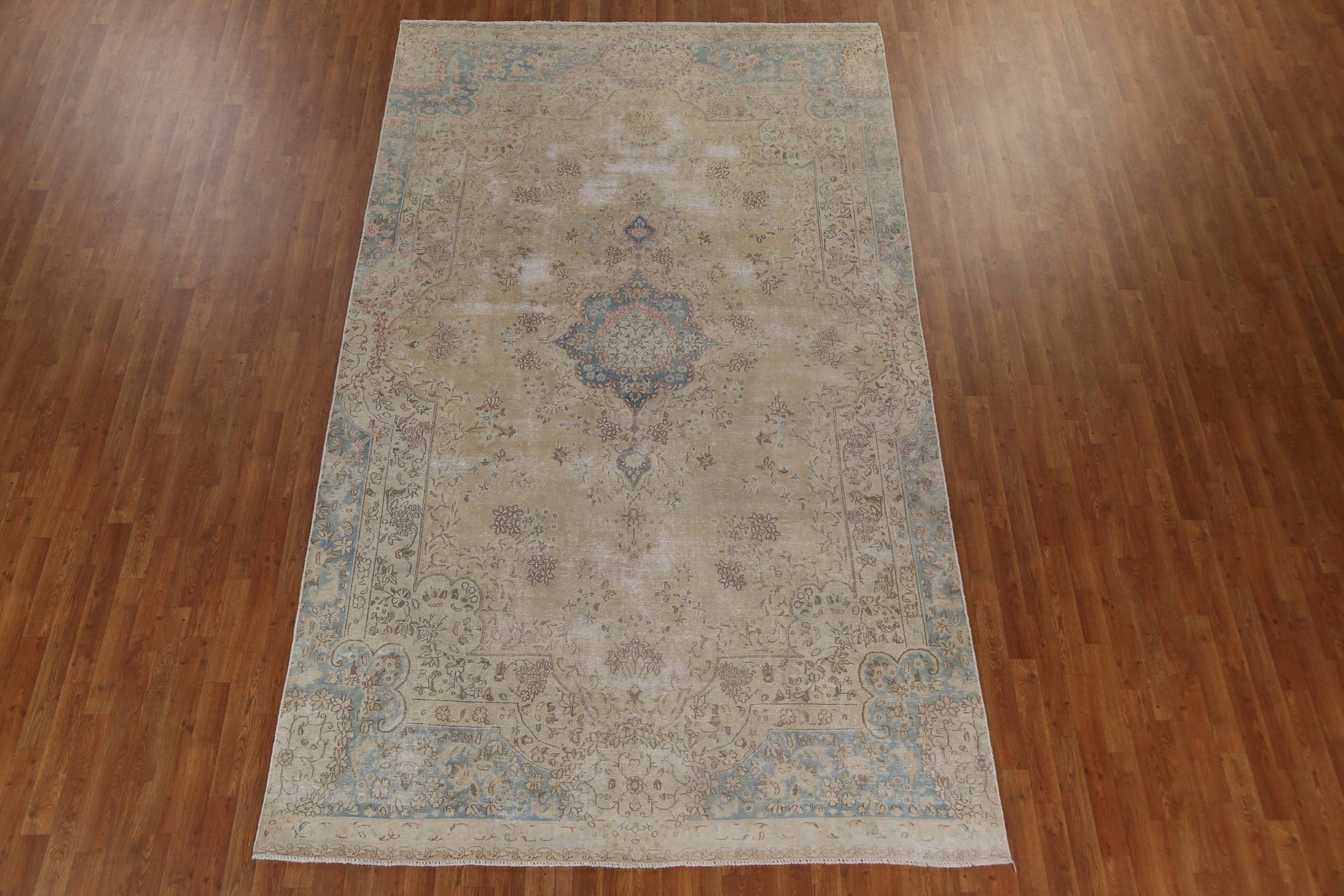 Muted Vintage Distressed Kerman Persian Area Rug 7x12