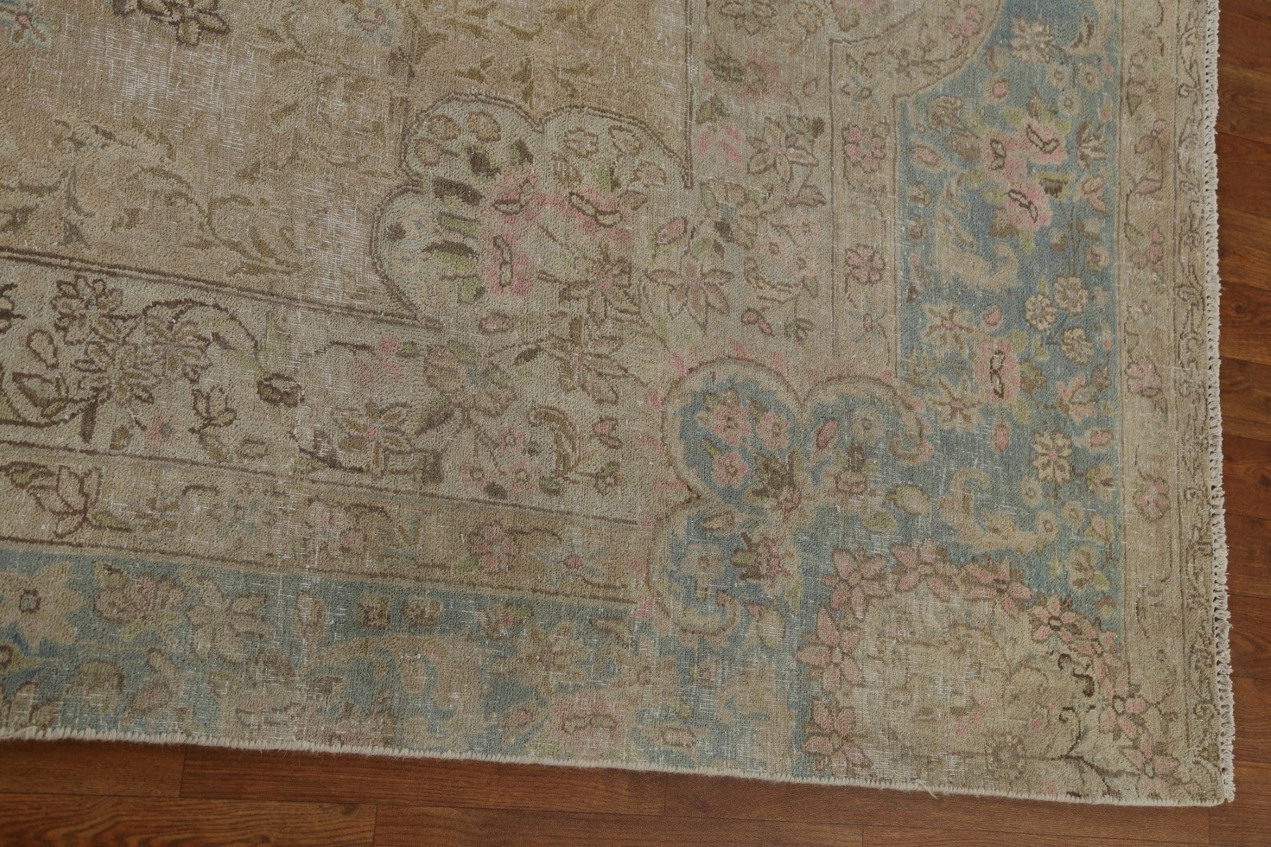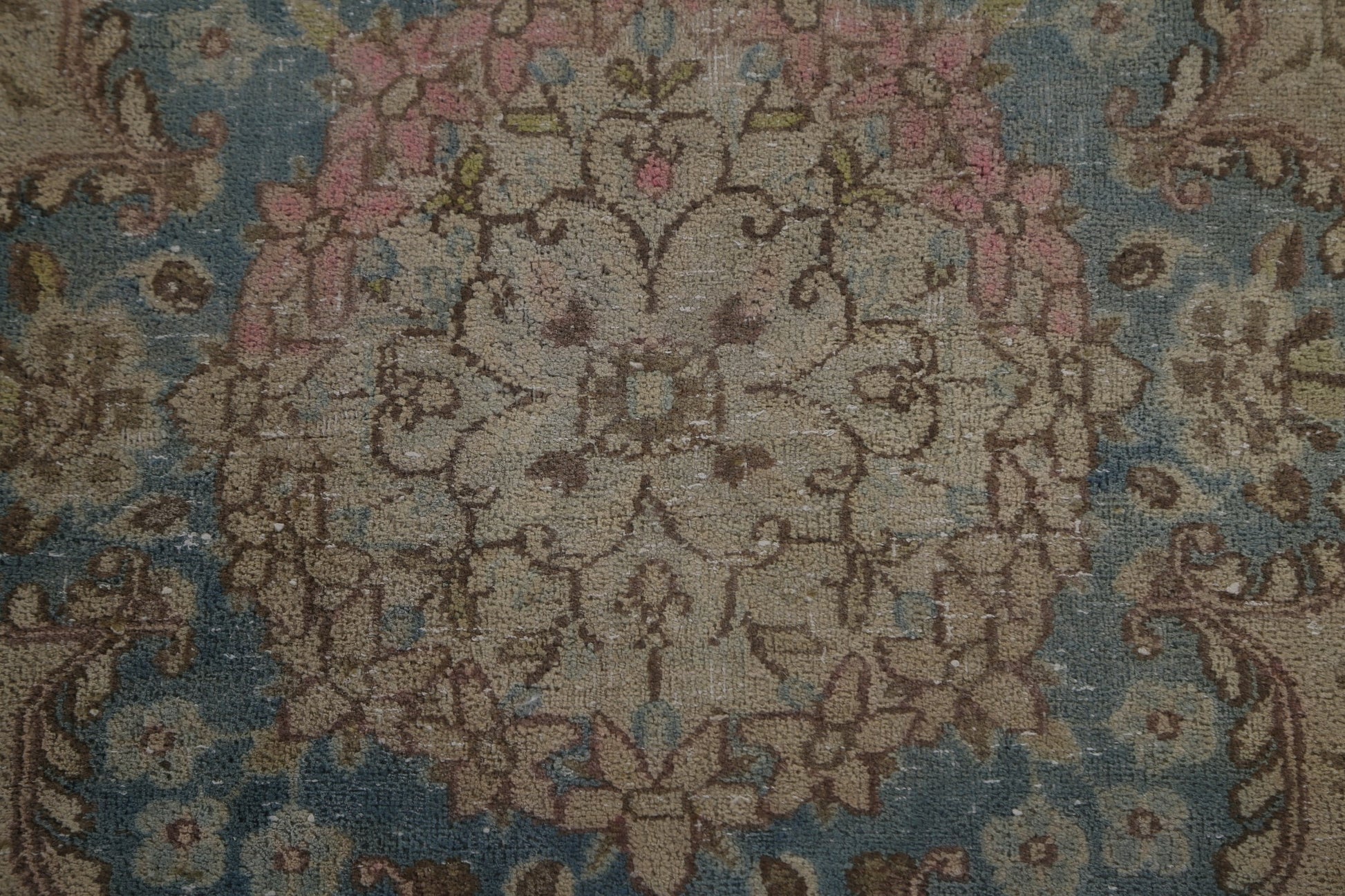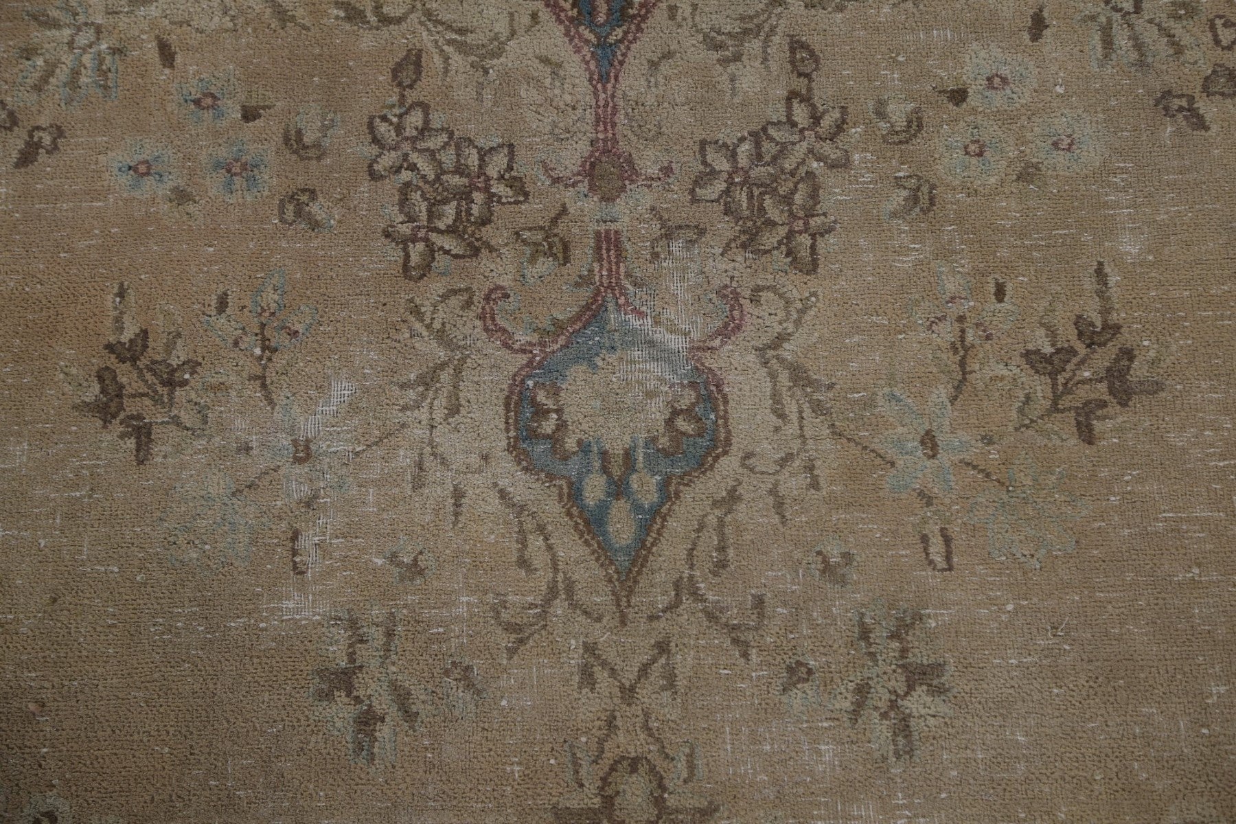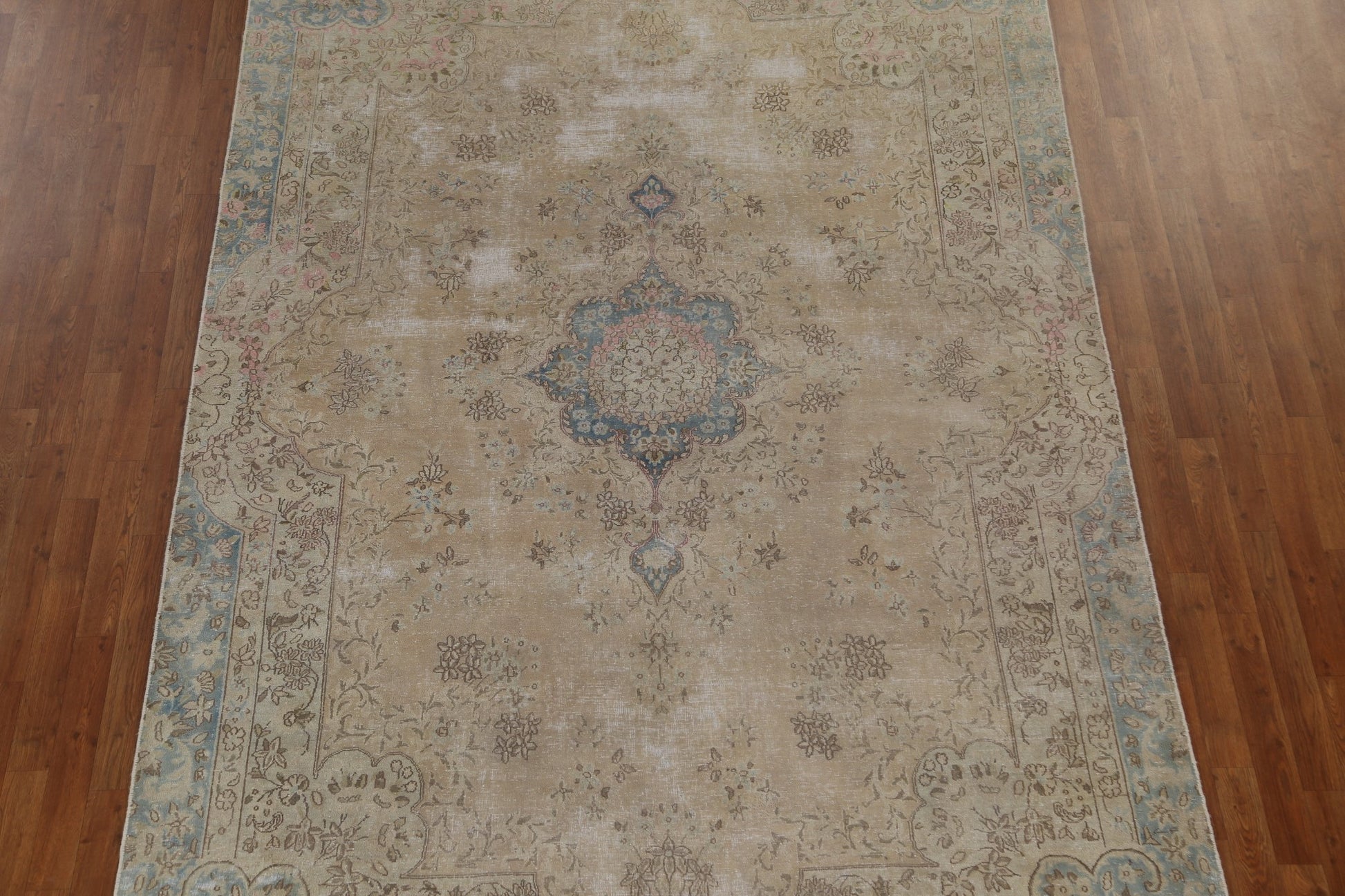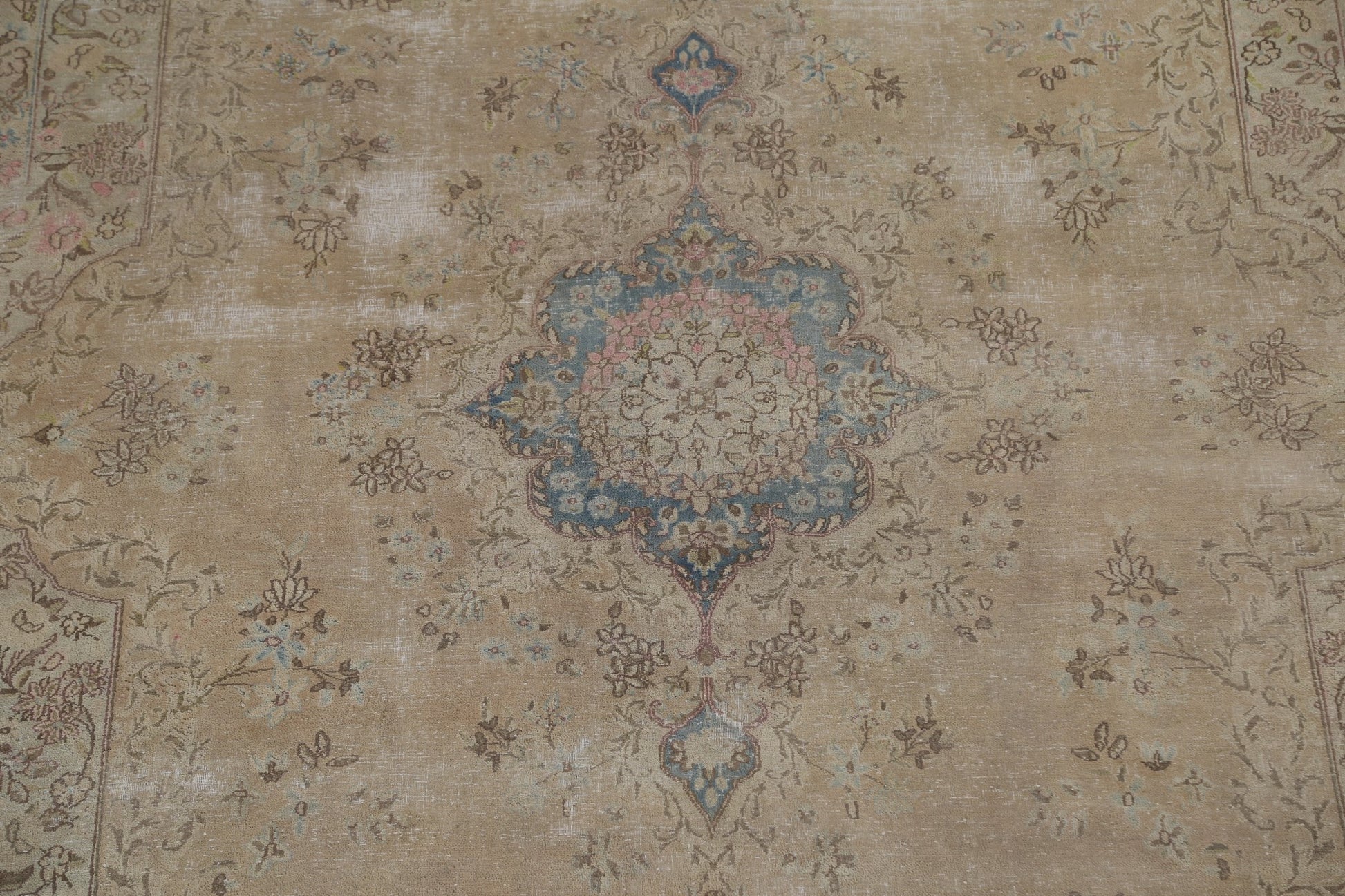 Muted Vintage Distressed Kerman Persian Area Rug 7x12