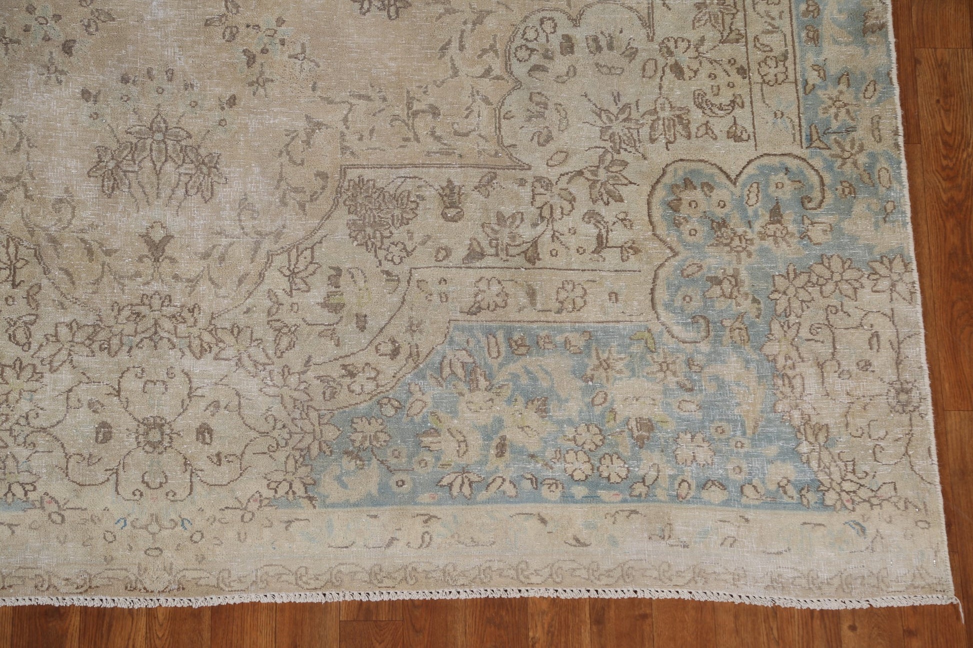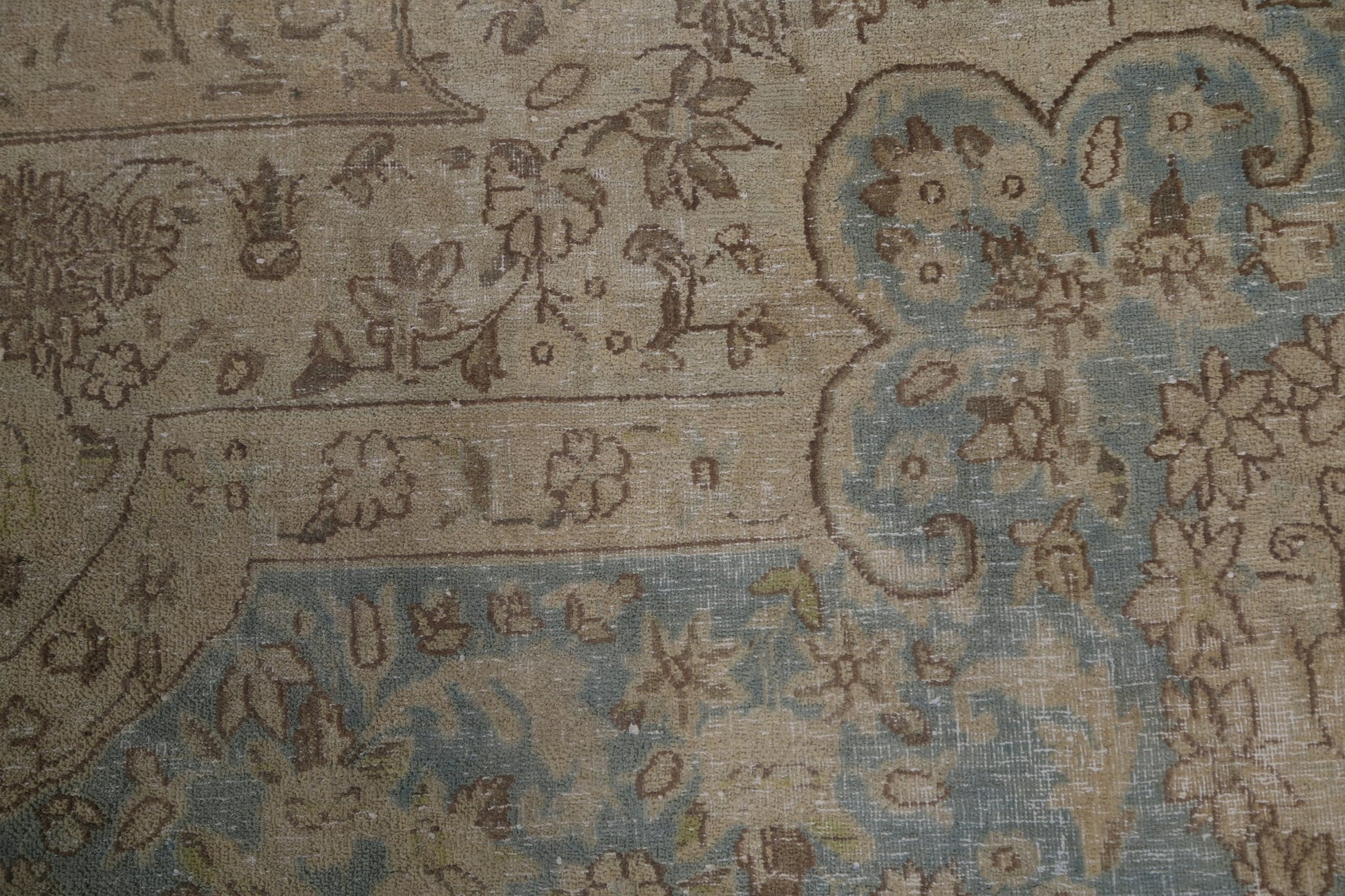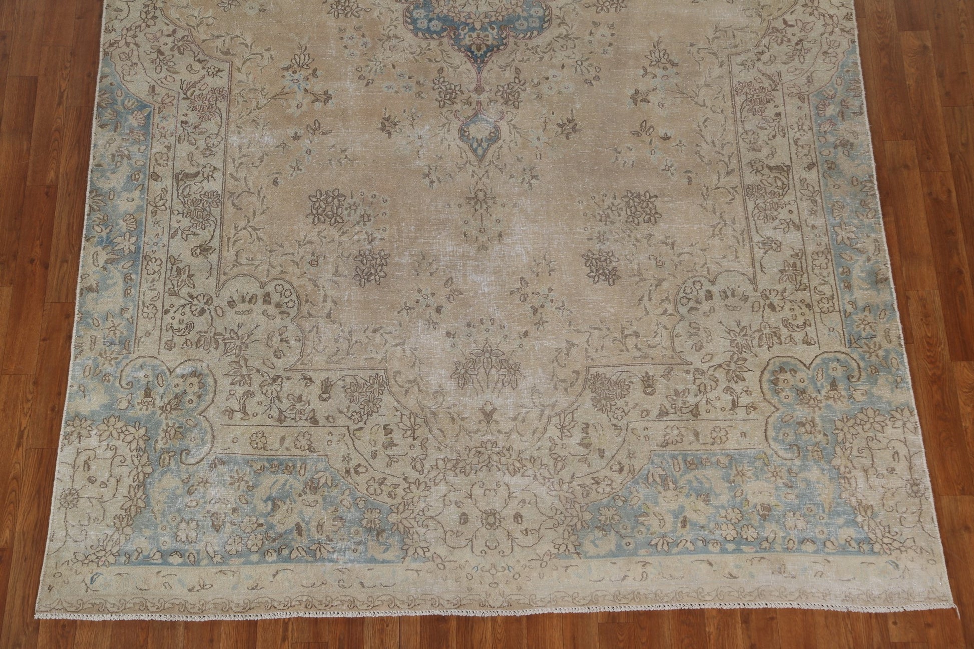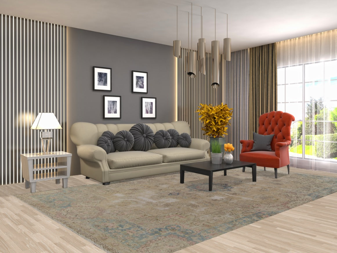 Muted Vintage Distressed Kerman Persian Area Rug 7x12