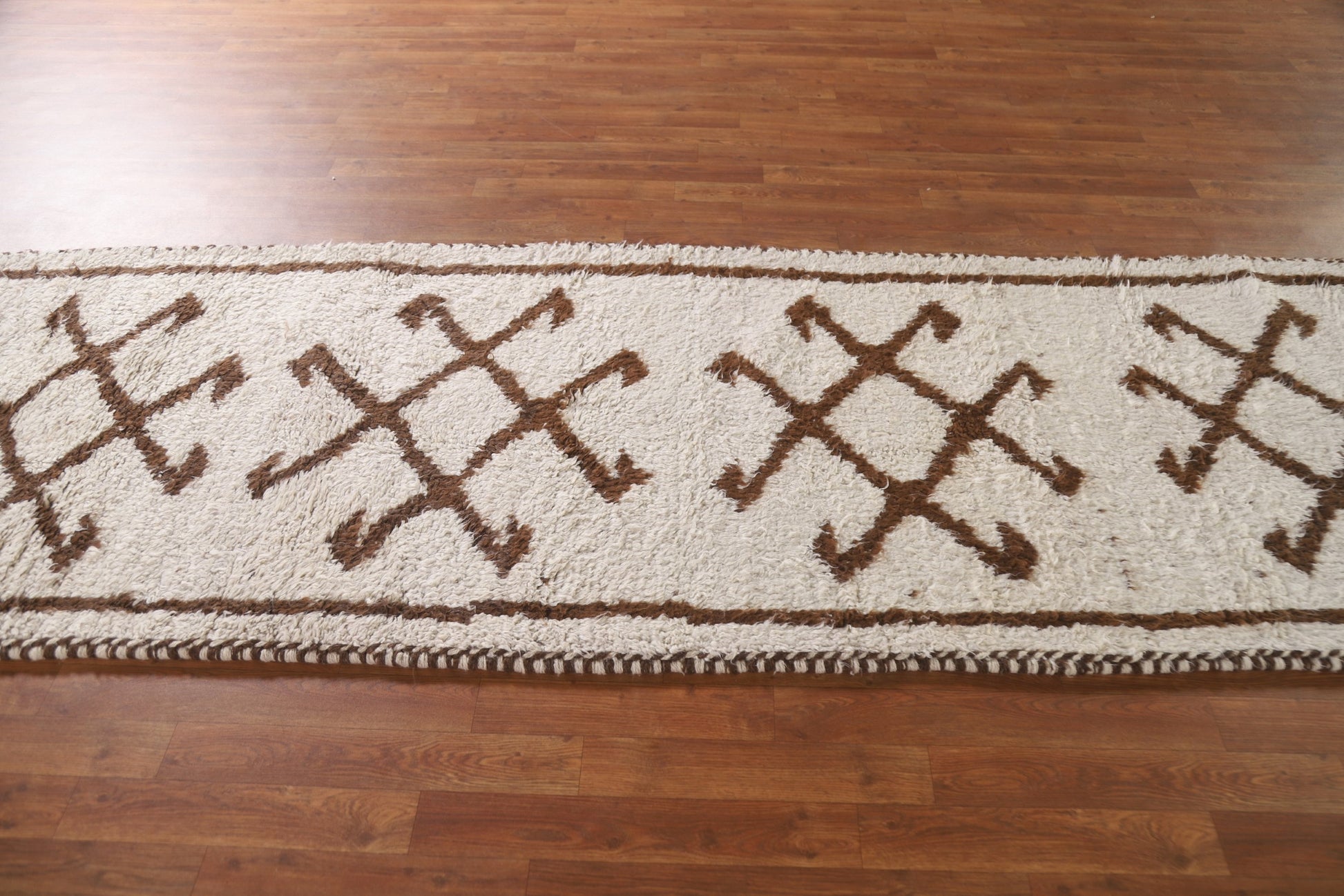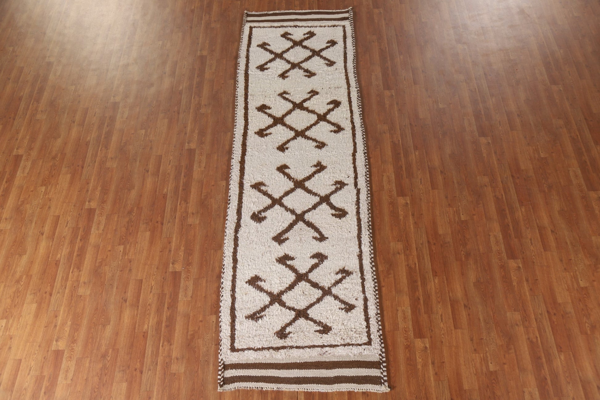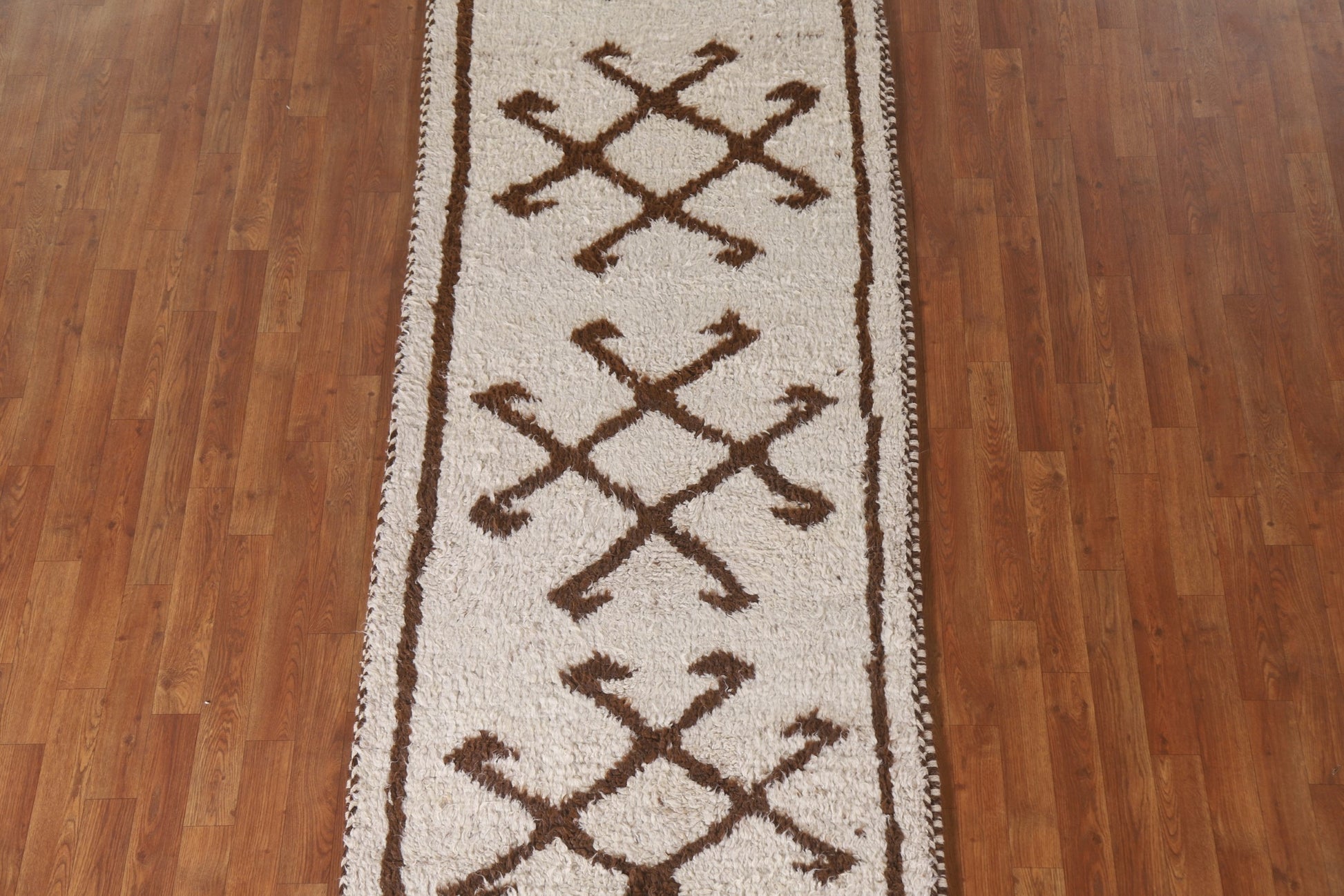 A Beautiful Genuine Turkey Anatolian rug is Hand Knotted by skillful weavers in Turkey with 100% Wool Material. This rug is in New, First Quality condition. dimensions are 10' 9'' X 3' 3'' in foot and 328 X 99 in centimeter. the primary color is Beige & Ivories.