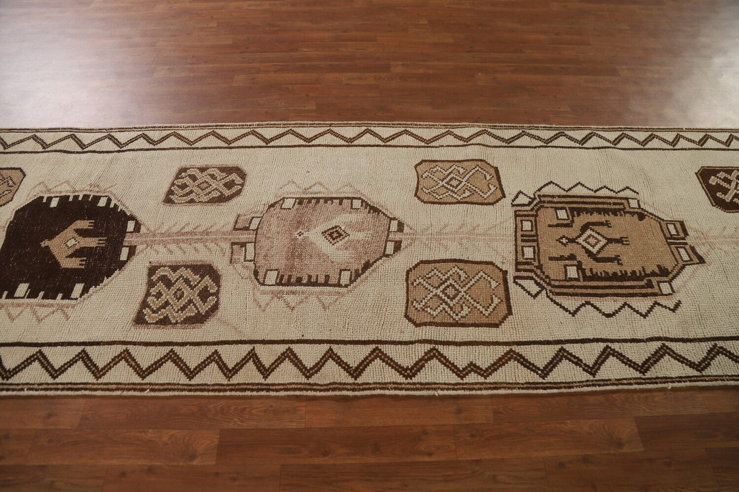 A Beautiful Genuine Turkey Anatolian rug is Hand Knotted by skillful weavers in Turkey with 100% Wool Material. This rug is in New, First Quality condition. dimensions are 10' 9'' X 3' 5'' in foot and 328 X 104 in centimeter. the primary color is Beige & Ivories.