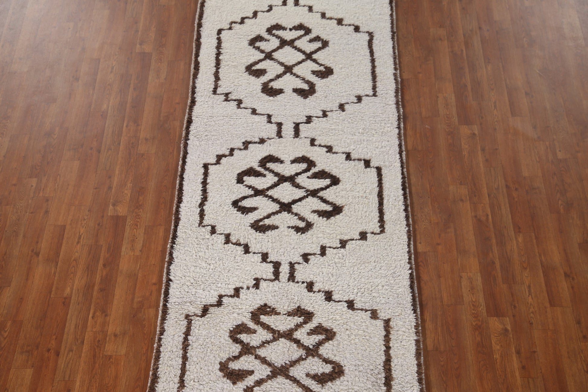 A Beautiful Genuine Turkey Anatolian rug is Hand Knotted by skillful weavers in Turkey with 100% Wool Material. This rug is in New, First Quality condition. dimensions are 11' 8'' X 3' 4'' in foot and 356 X 102 in centimeter. the primary color is Beige & Ivories.