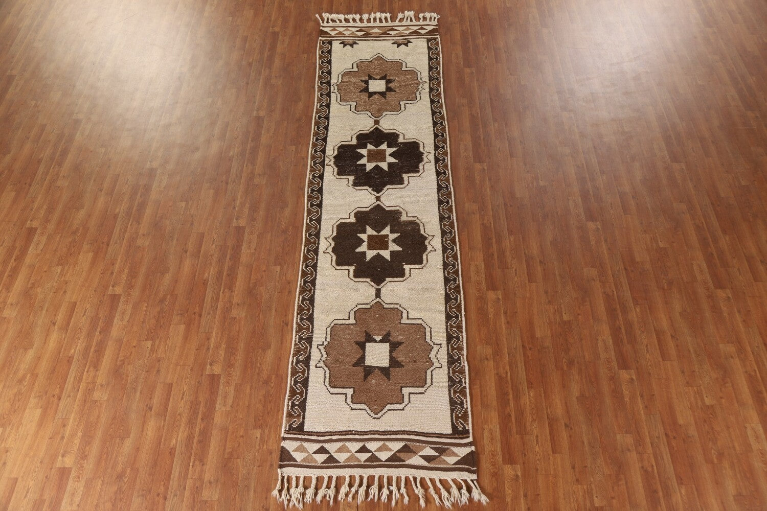 A Beautiful Genuine Turkey Anatolian rug is Hand Knotted by skillful weavers in Turkey with 100% Wool Material. This rug is in New, First Quality condition. dimensions are 11' 10'' X 3' 2'' in foot and 361 X 97 in centimeter. the primary color is Beige & Ivories.