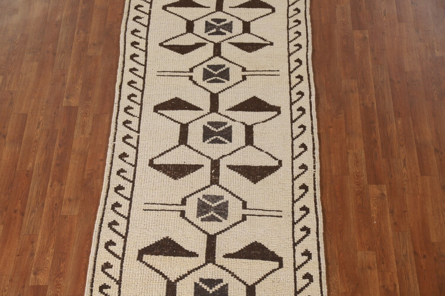 A Beautiful Genuine Turkey Anatolian rug is Hand Knotted by skillful weavers in Turkey with 100% Wool Material. This rug is in New, First Quality condition. dimensions are 11' 4'' X 3' 6'' in foot and 345 X 107 in centimeter. the primary color is Beige & Ivories.