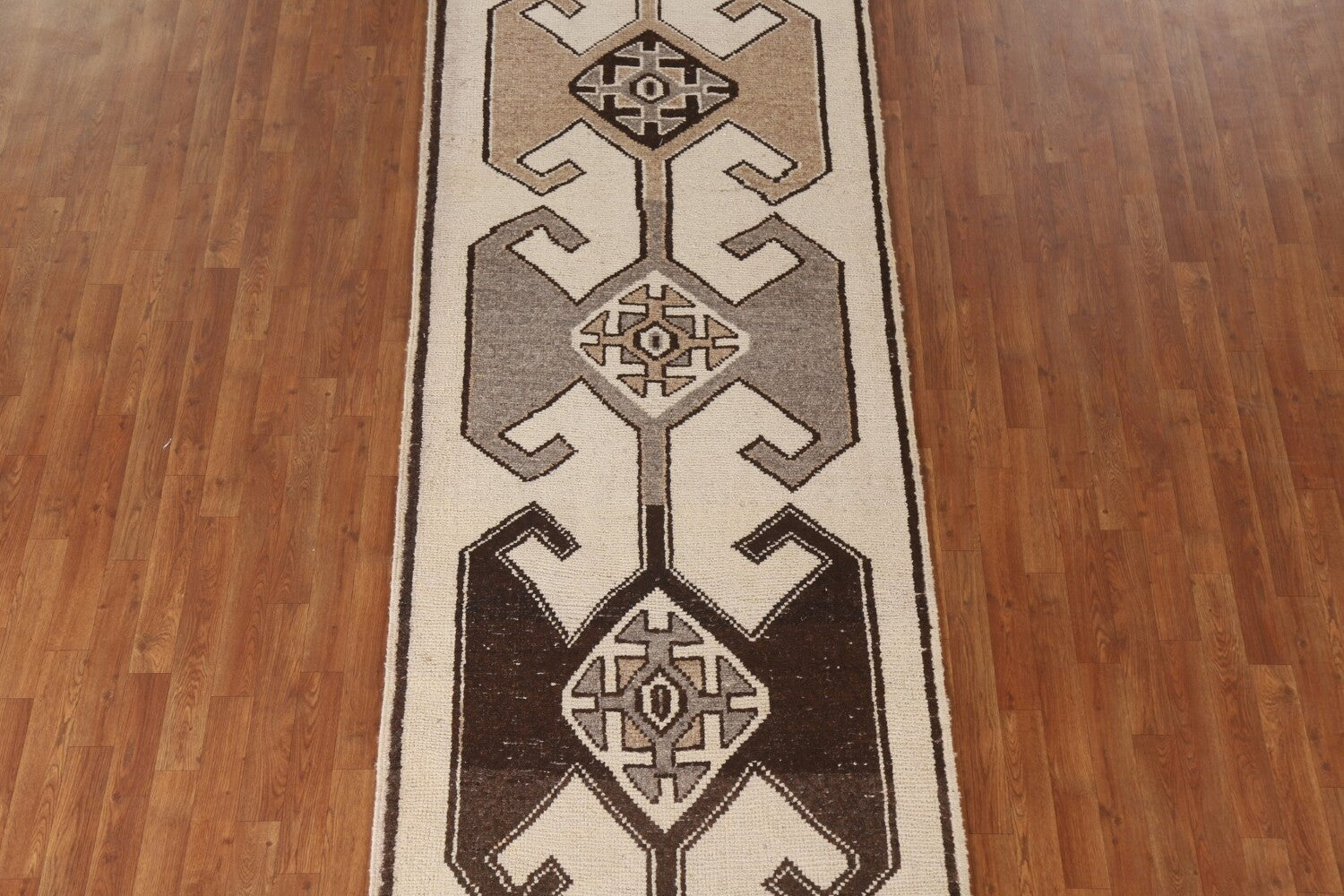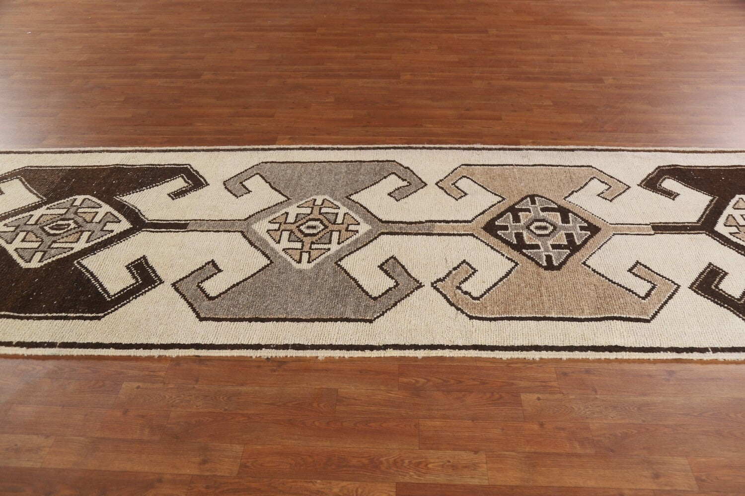 A Beautiful Genuine Turkey Anatolian rug is Hand Knotted by skillful weavers in Turkey with 100% Wool Material. This rug is in New, First Quality condition. dimensions are 11' 7'' X 3' 7'' in foot and 353 X 109 in centimeter. the primary color is Beige & Ivories.