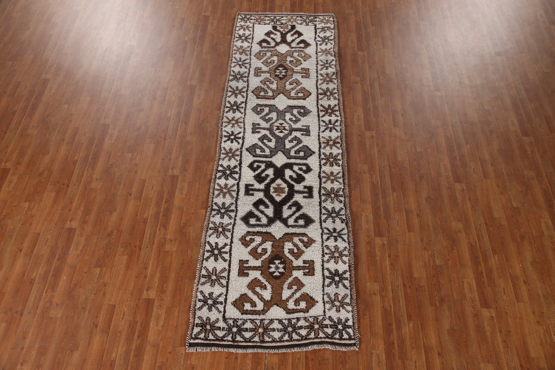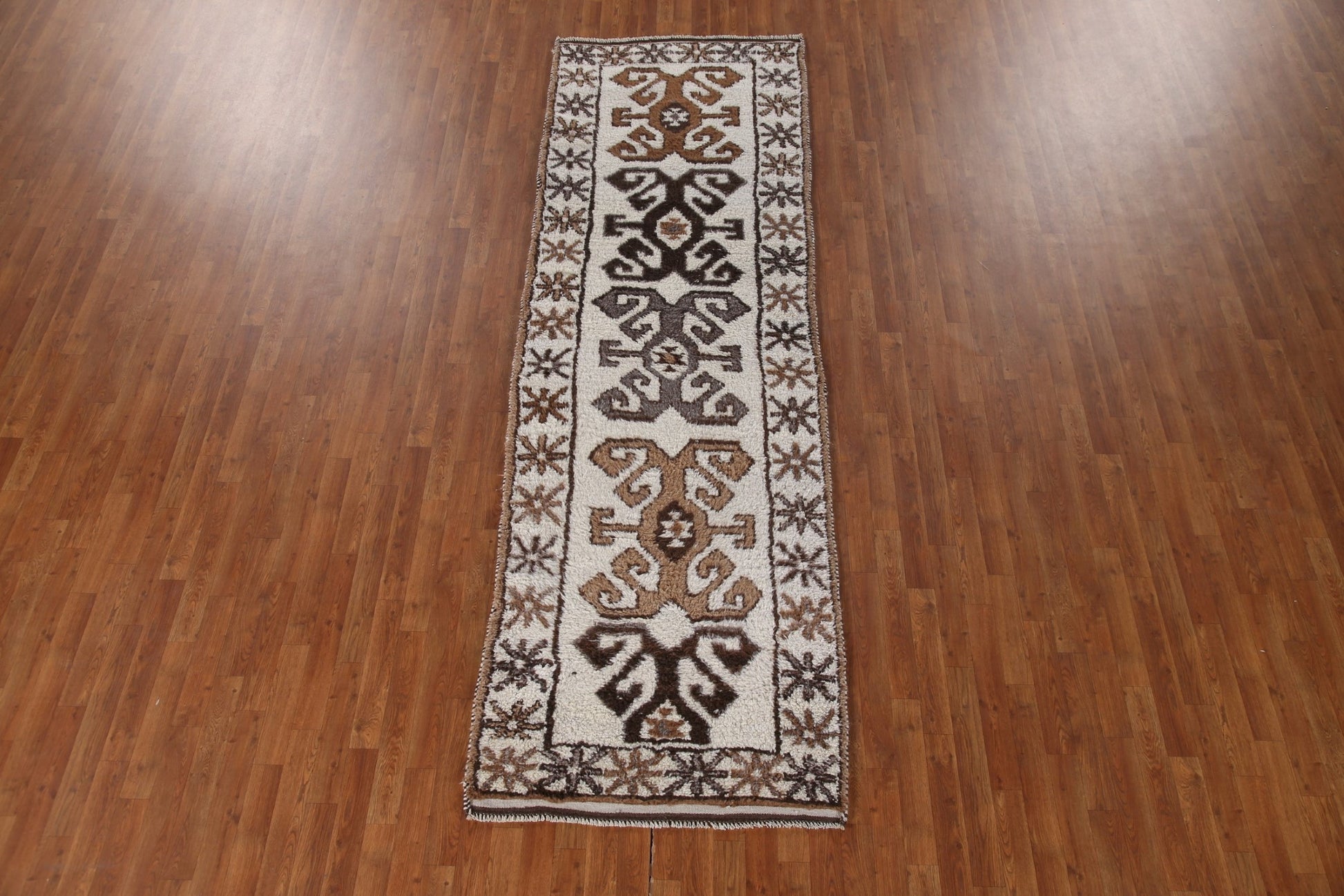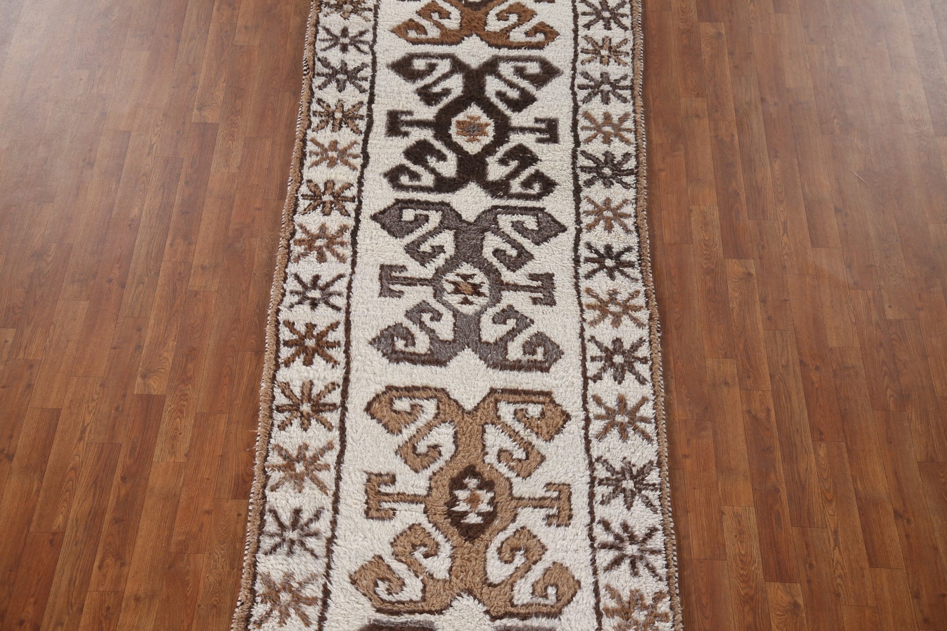 A Beautiful Genuine Turkey Anatolian rug is Hand Knotted by skillful weavers in Turkey with 100% Wool Material. This rug is in New, First Quality condition. dimensions are 11' 0'' X 3' 5'' in foot and 335 X 104 in centimeter. the primary color is Beige & Ivories.