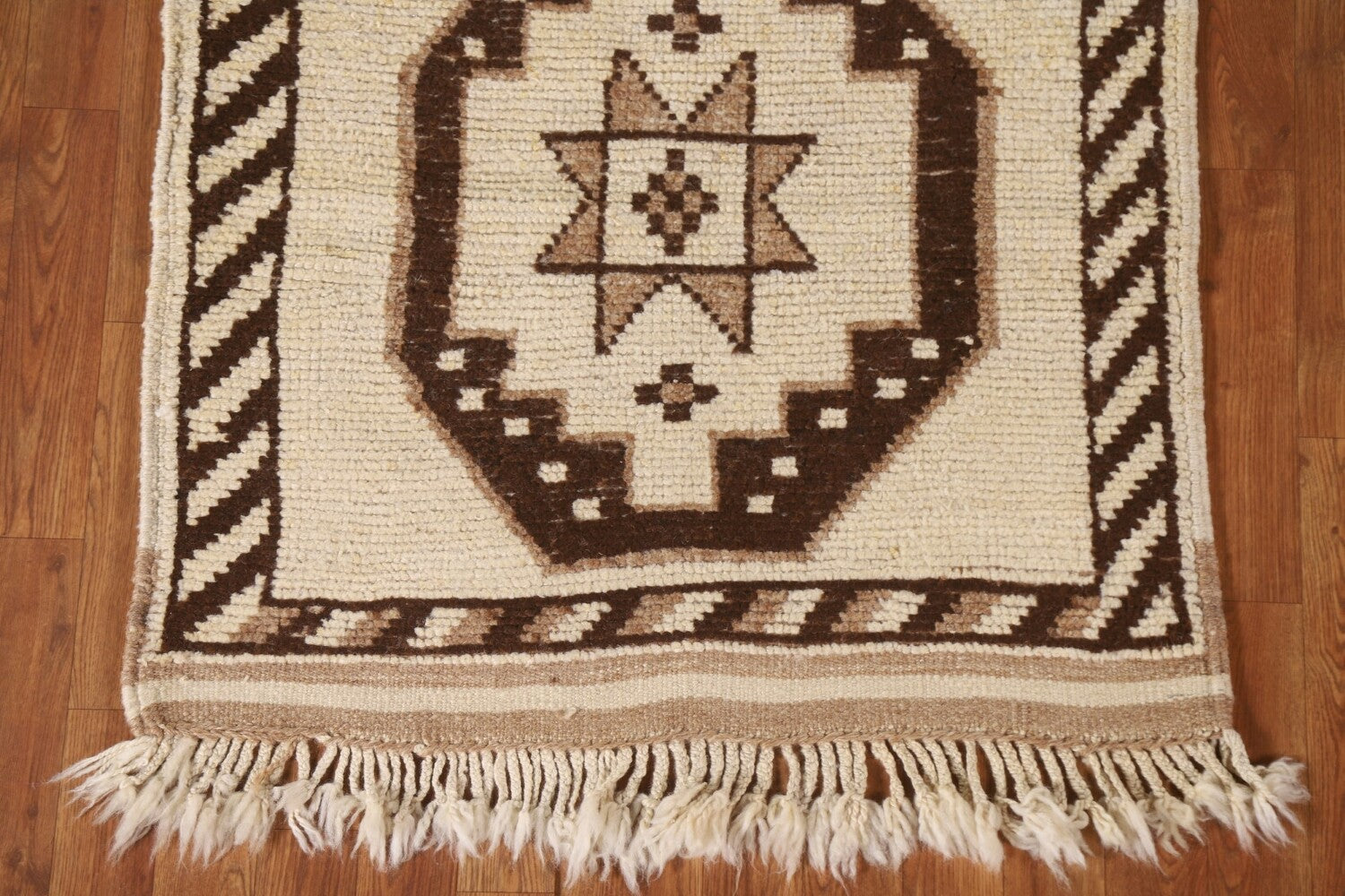 A Beautiful Genuine Turkey Anatolian rug is Hand Knotted by skillful weavers in Turkey with 100% Wool Material. This rug is in New, First Quality condition. dimensions are 11' 2'' X 3' 1'' in foot and 340 X 94 in centimeter. the primary color is Beige & Ivories.