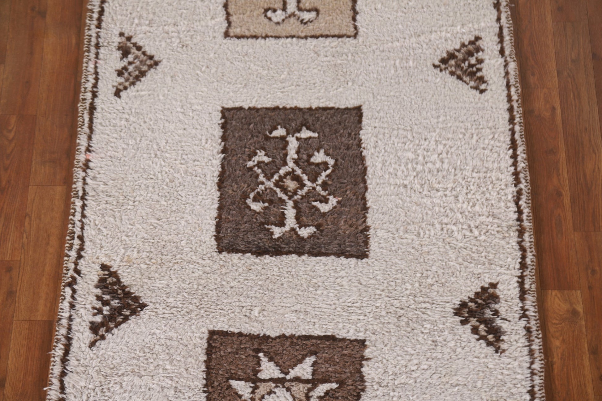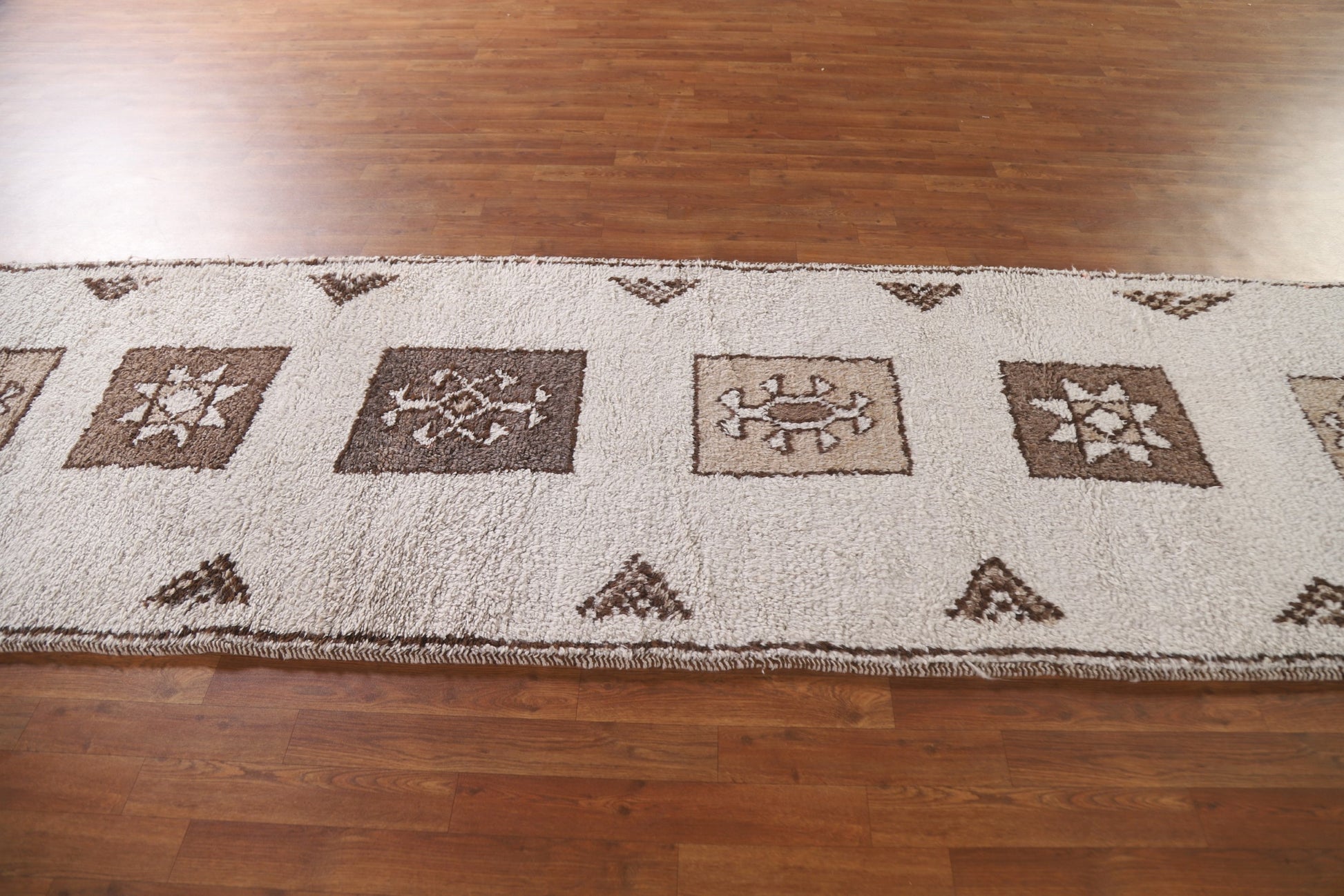 A Beautiful Genuine Turkey Anatolian rug is Hand Knotted by skillful weavers in Turkey with 100% Wool Material. This rug is in New, First Quality condition. dimensions are 12' 3'' X 3' 4'' in foot and 373 X 102 in centimeter. the primary color is Beige & Ivories.