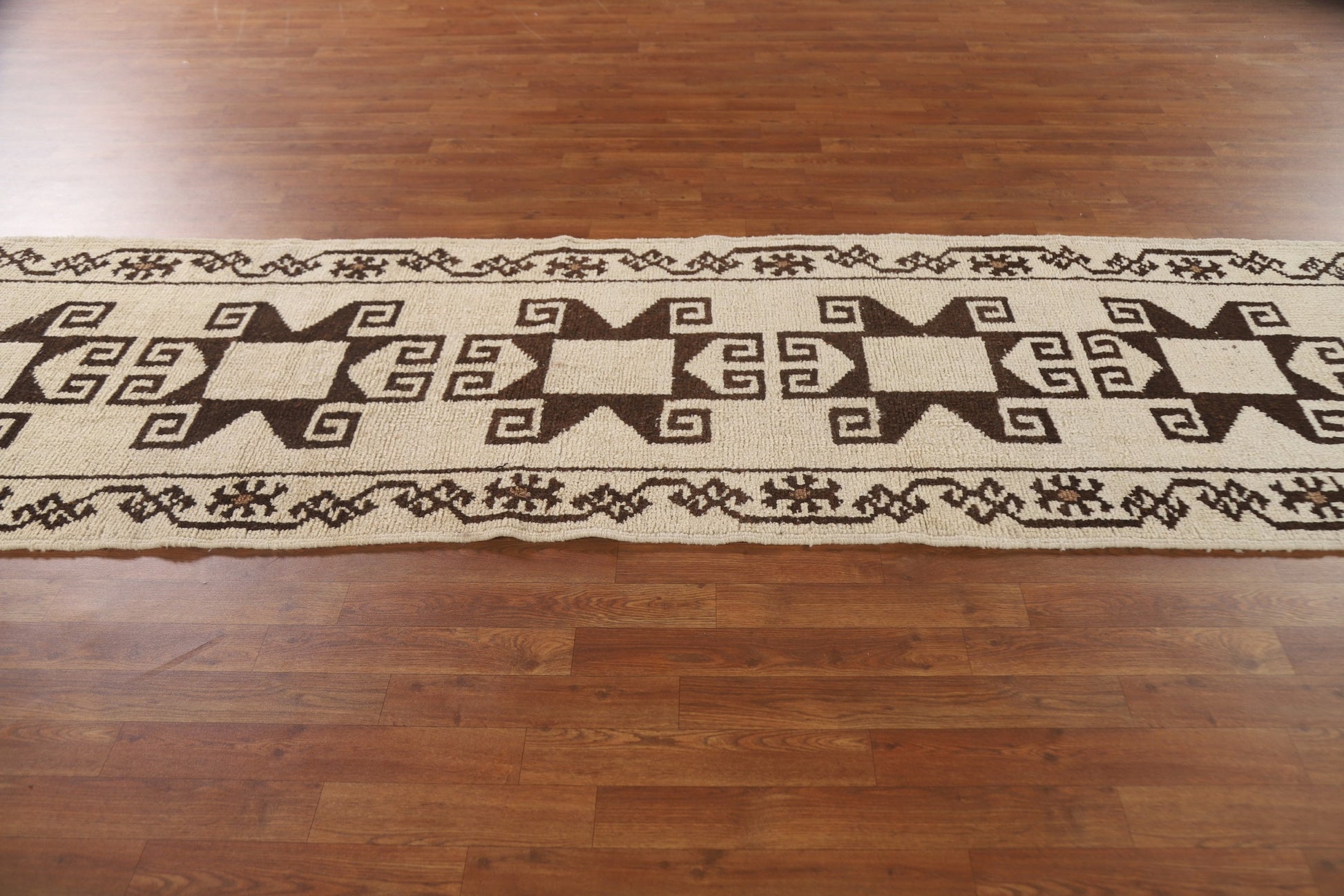 A Beautiful Genuine Turkey Anatolian rug is Hand Knotted by skillful weavers in Turkey with 100% Wool Material. This rug is in New, First Quality condition. dimensions are 11' 9'' X 3' 0'' in foot and 358 X 91 in centimeter. the primary color is Beige & Ivories.