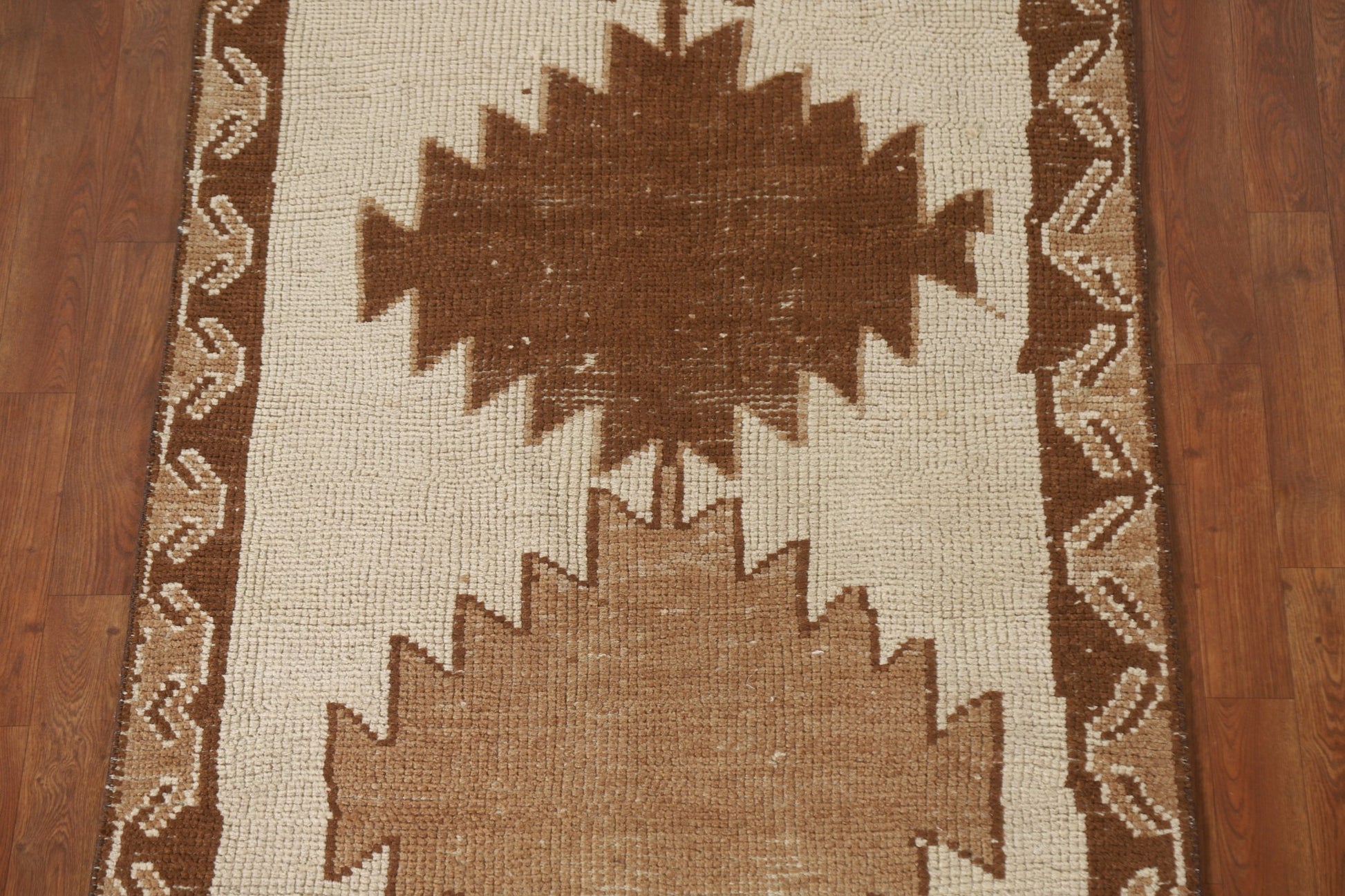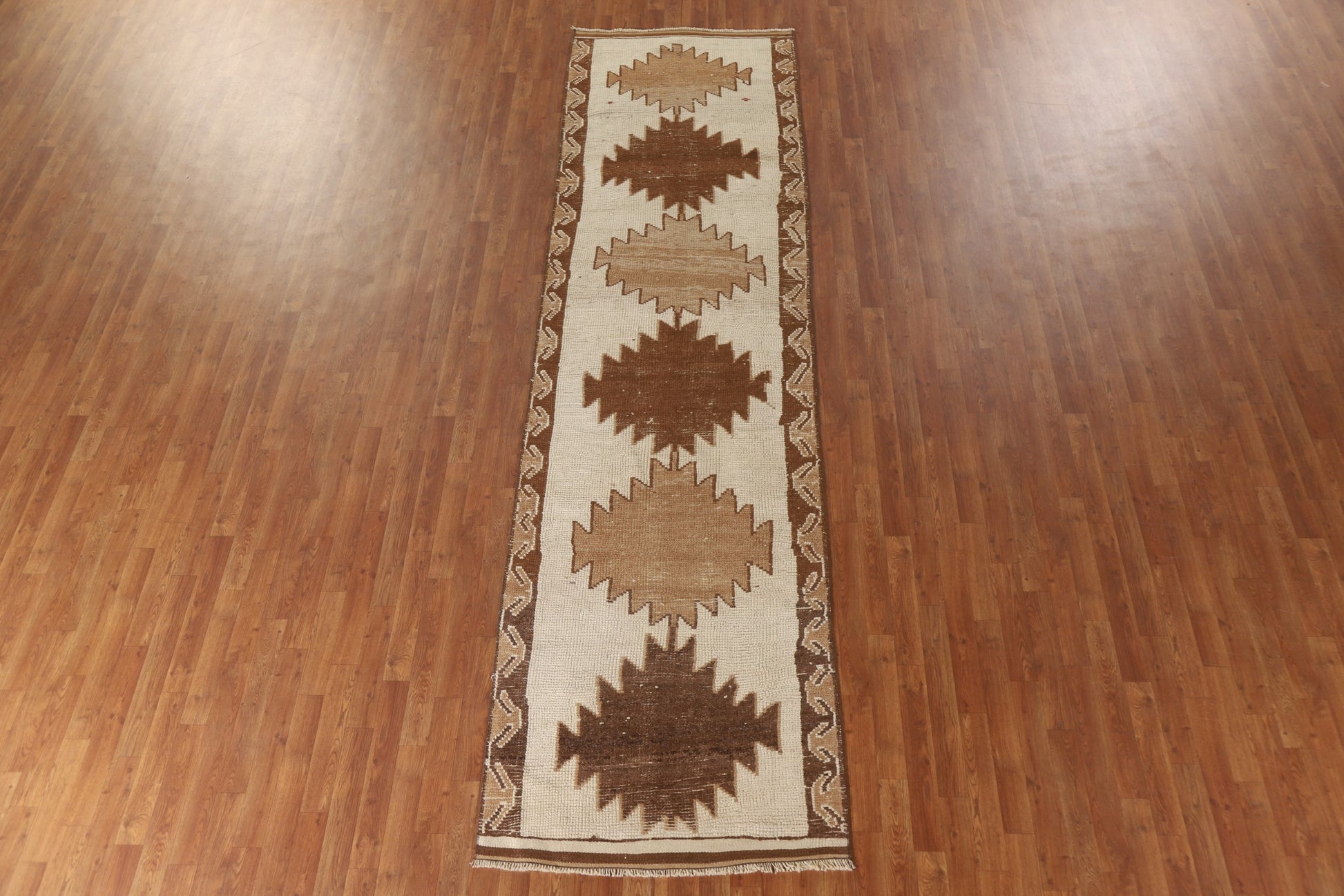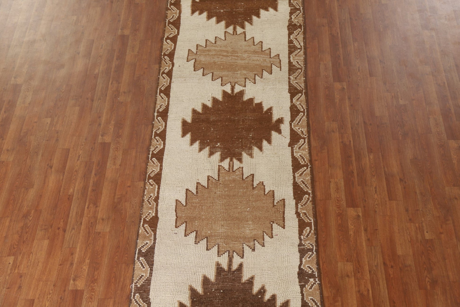A Beautiful Genuine Turkey Anatolian rug is Hand Knotted by skillful weavers in Turkey with 100% Wool Material. This rug is in New, First Quality condition. dimensions are 12' 7'' X 3' 4'' in foot and 384 X 102 in centimeter. the primary color is Beige & Ivories.