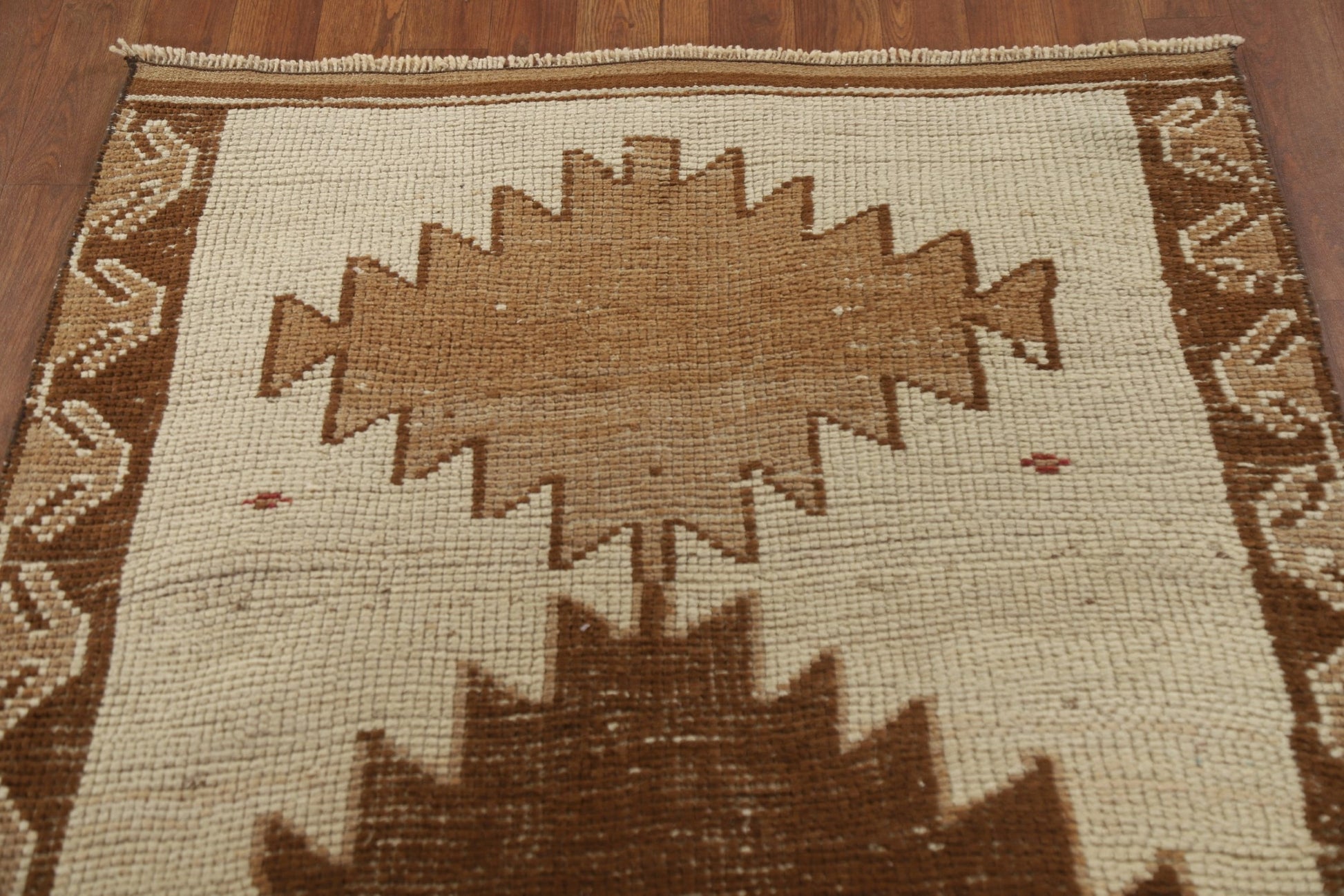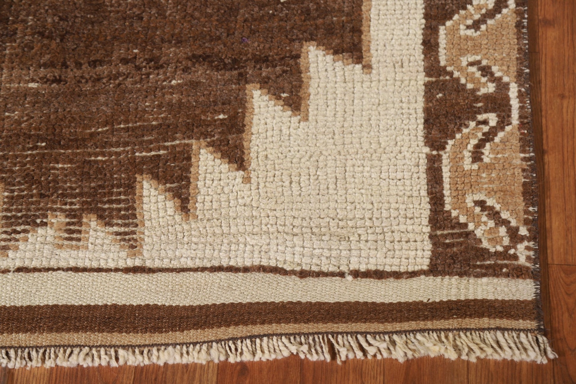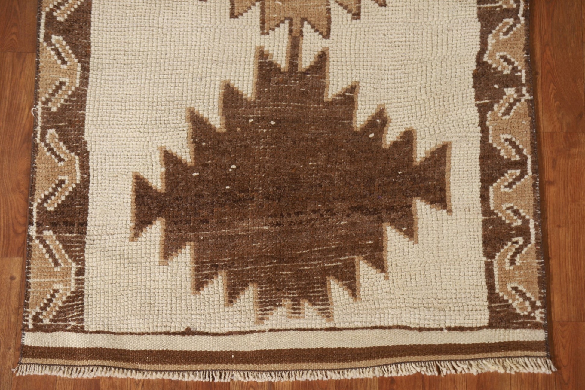 A Beautiful Genuine Turkey Anatolian rug is Hand Knotted by skillful weavers in Turkey with 100% Wool Material. This rug is in New, First Quality condition. dimensions are 12' 7'' X 3' 4'' in foot and 384 X 102 in centimeter. the primary color is Beige & Ivories.