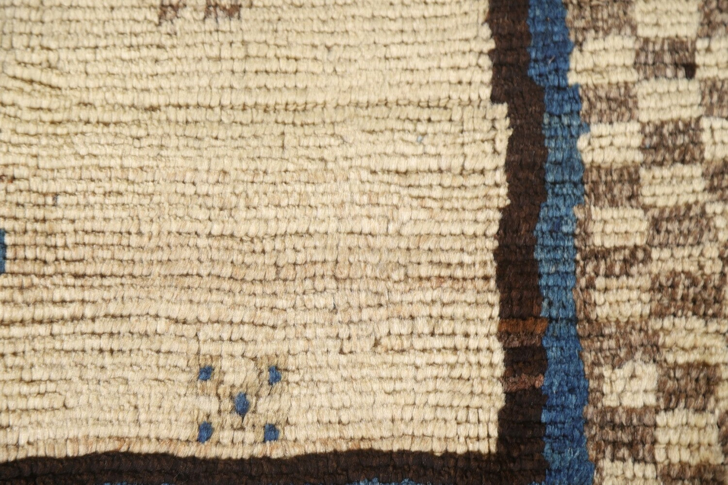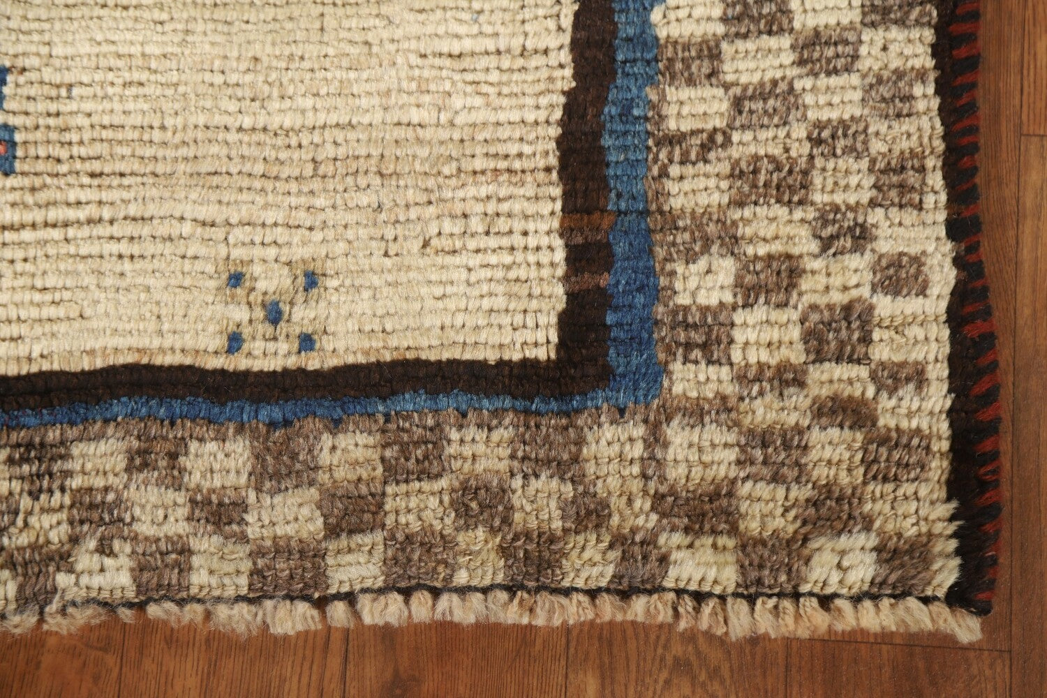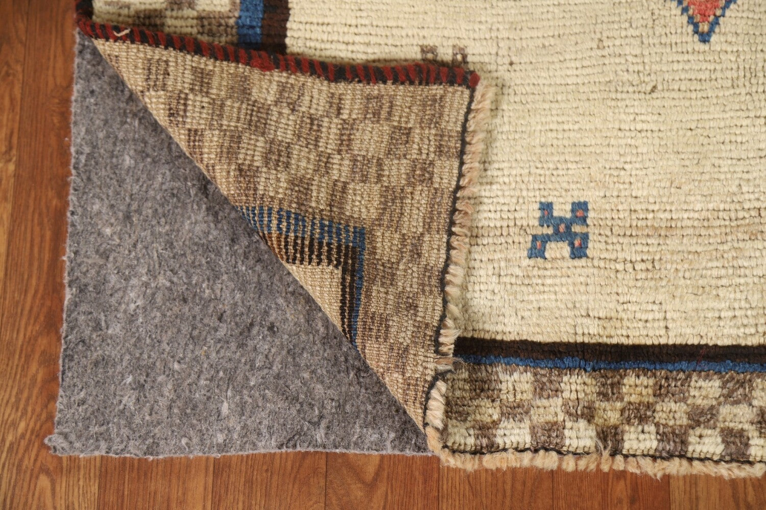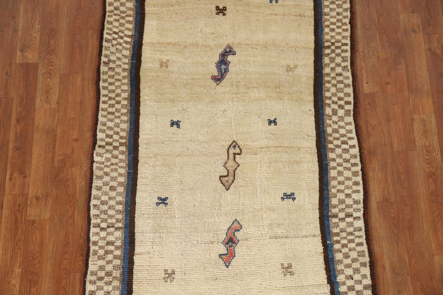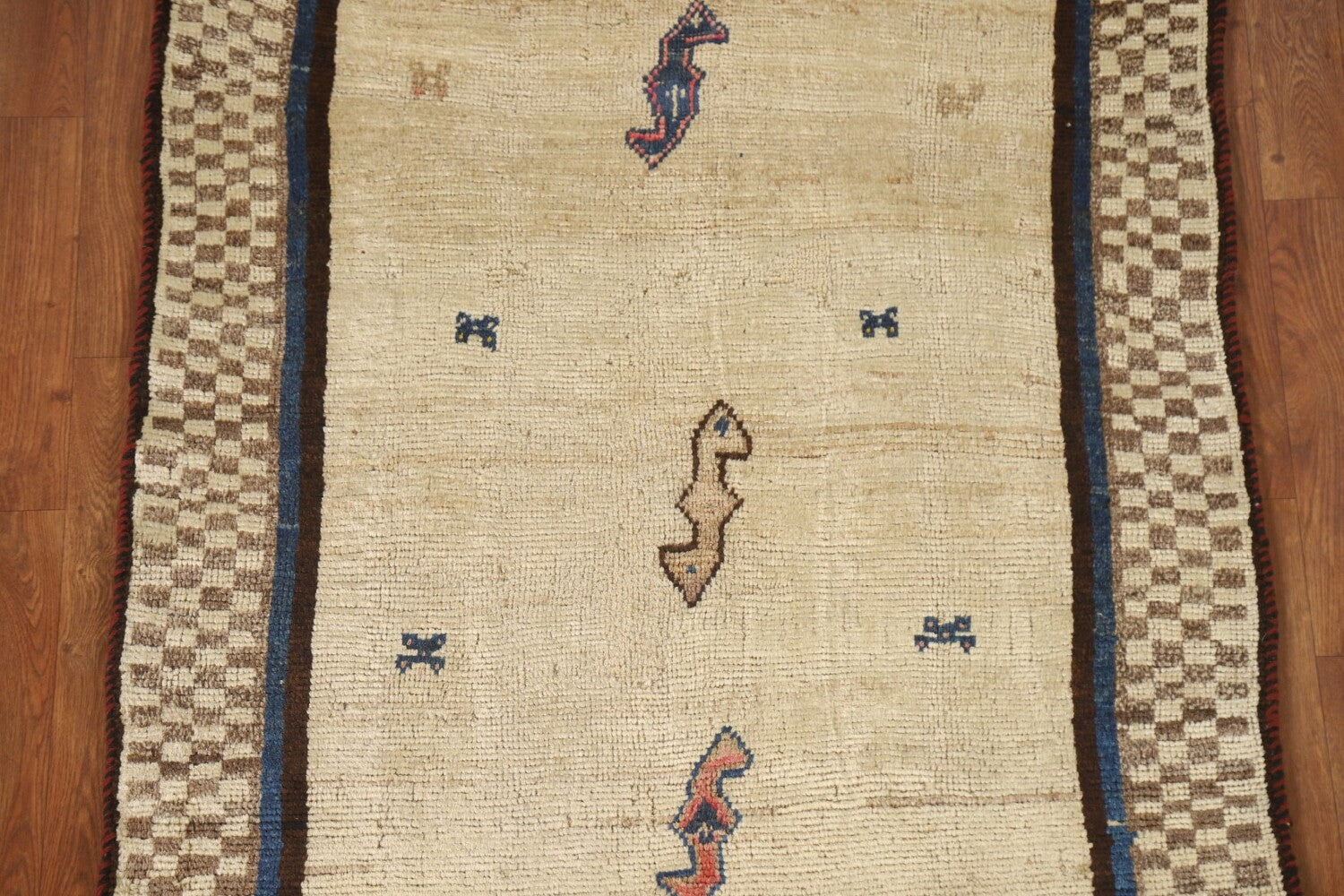 A Beautiful Genuine Persia ( Persia ) Gabbeh rug is Hand Knotted by skillful weavers in Persia ( Persia ) with 100% Wool Material. This rug is in Very Good condition. dimensions are 5' 5'' X 3' 3'' in foot and 165 X 99 in centimeter. the primary color is Beige & Ivories.