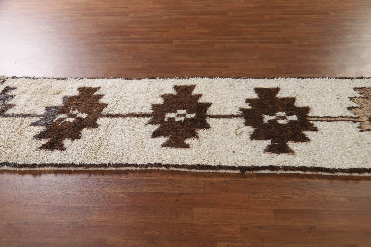 A Beautiful Genuine Turkey Kurdish rug is Hand Knotted by skillful weavers in Turkey with 100% Wool Material. This rug is in condition. dimensions are 9' 10'' X 3' 0'' in foot and 300 X 91 in centimeter. the primary color is Beige & Ivories.