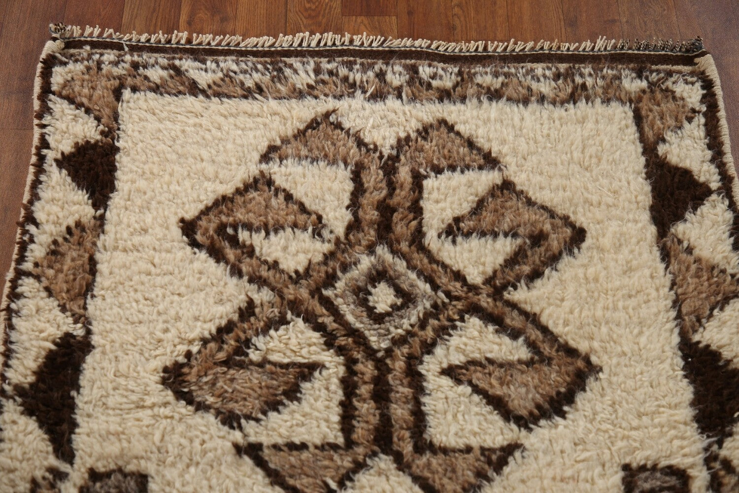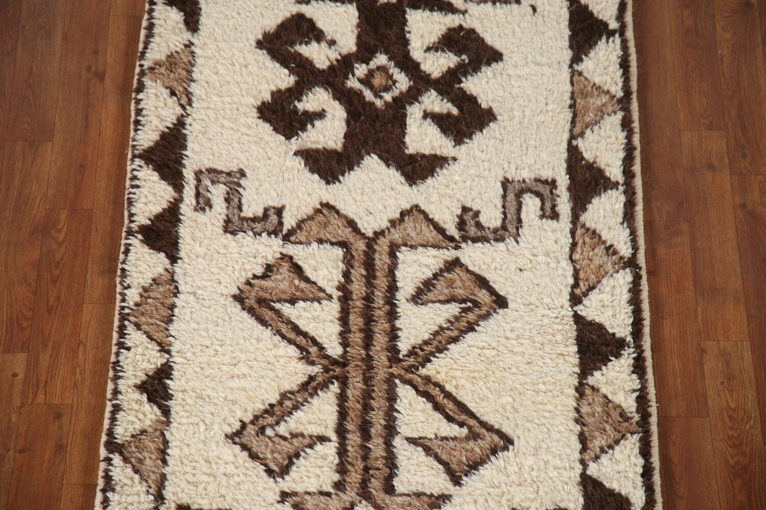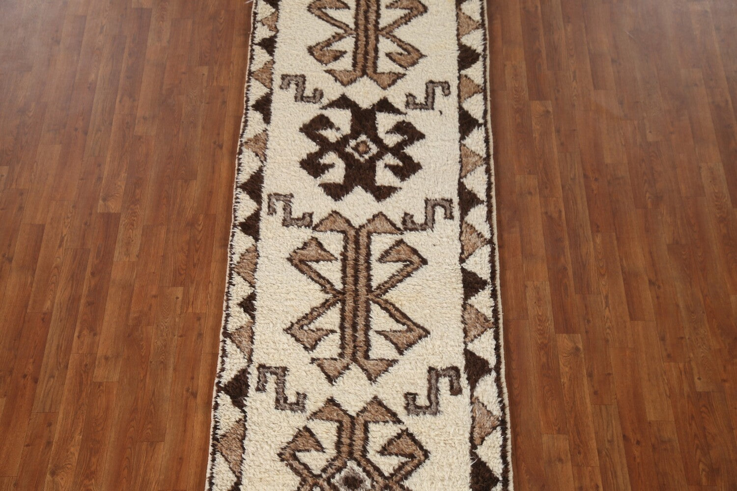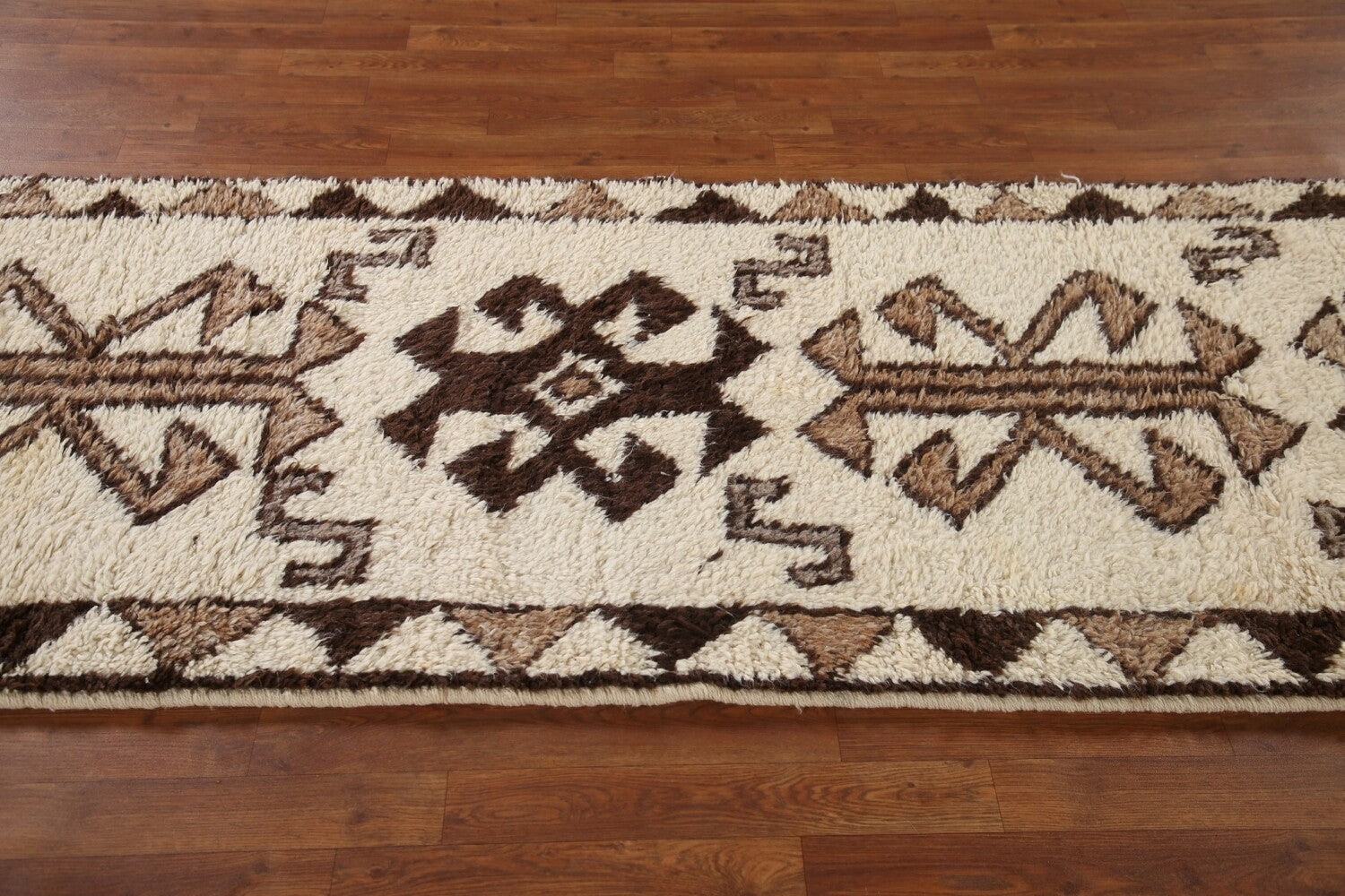 A Beautiful Genuine Turkey Kurdish rug is Hand Knotted by skillful weavers in Turkey with 100% Wool Material. This rug is in condition. dimensions are 11' 1'' X 3' 1'' in foot and 338 X 94 in centimeter. the primary color is Beige & Ivories.