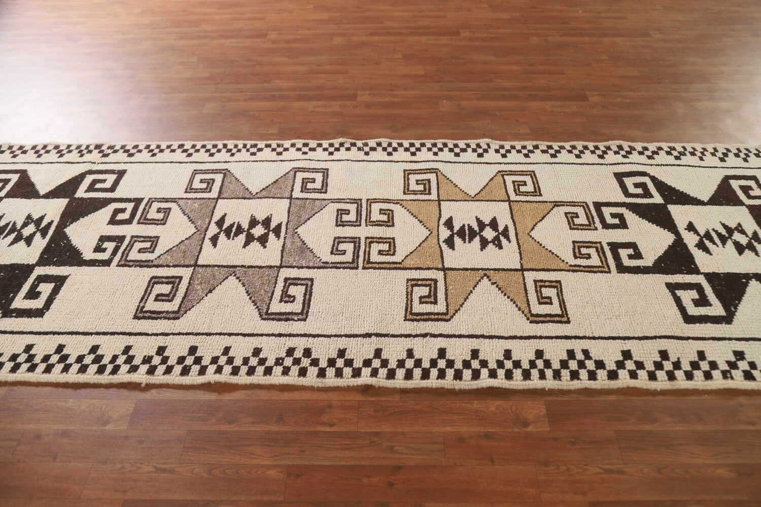 A Beautiful Genuine Turkey Anatolian rug is Hand Knotted by skillful weavers in Turkey with 100% Wool Material. This rug is in New, First Quality condition. dimensions are 11' 2'' X 3' 7'' in foot and 340 X 109 in centimeter. the primary color is Beige & Ivories.