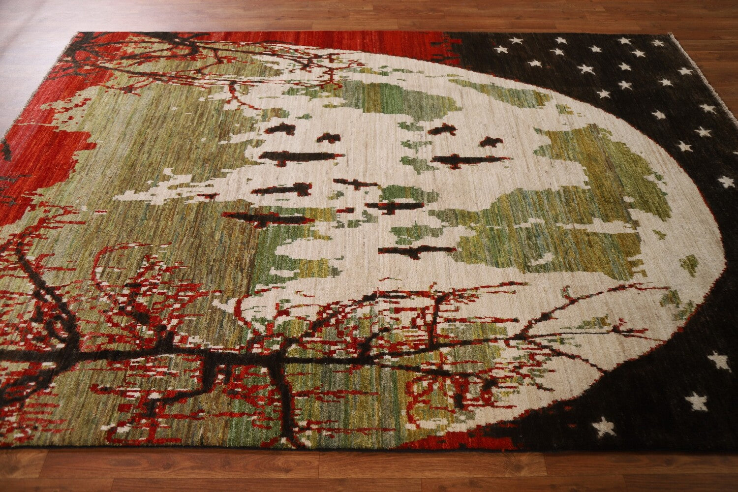 Nature Print Gabbeh Kashkoli Wool Area Rug 6x8
