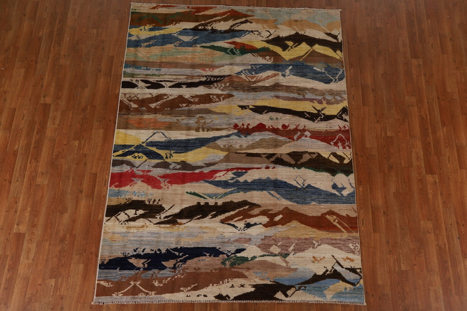 Nature Print Gabbeh Kashkoli Wool Area Rug 6x8