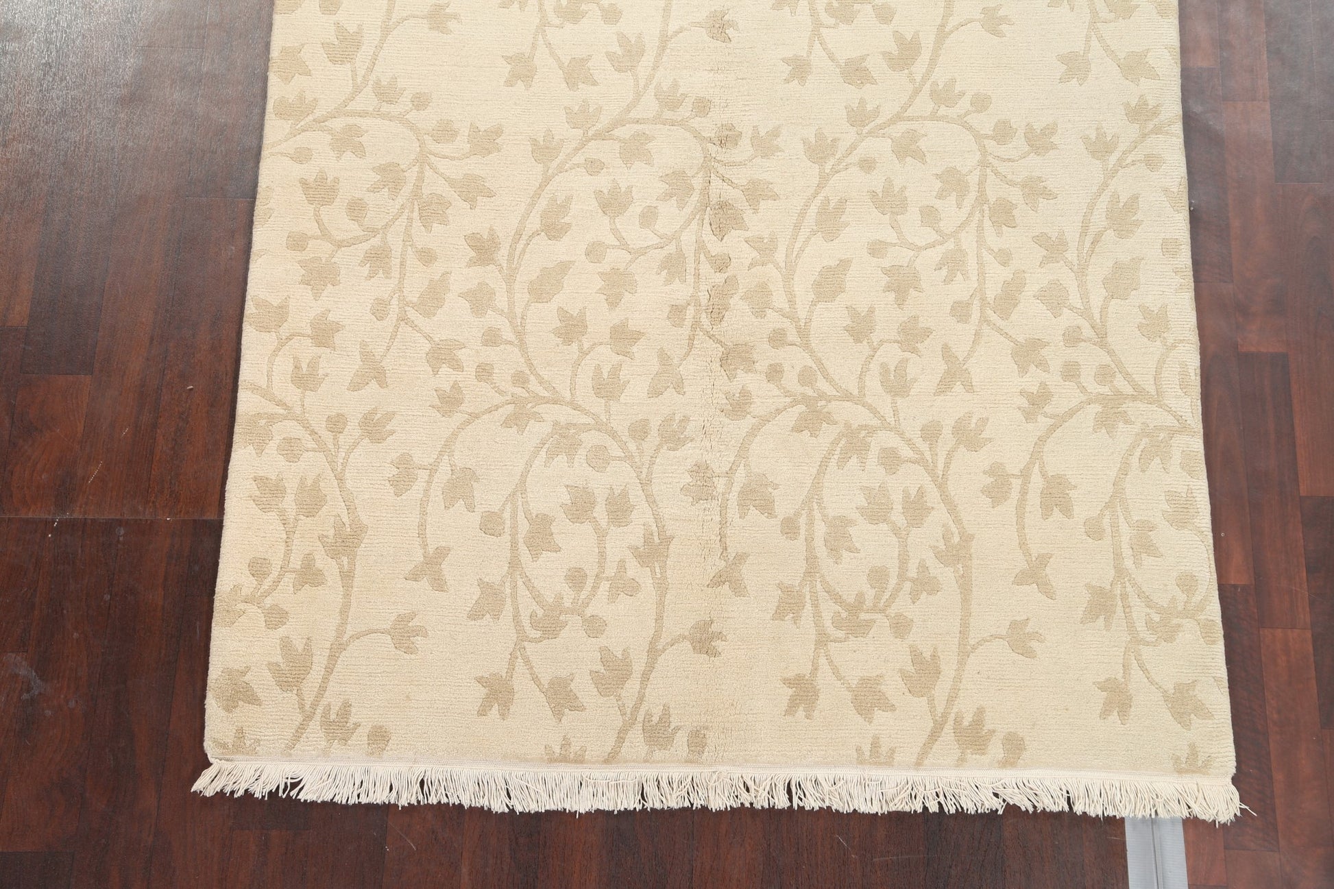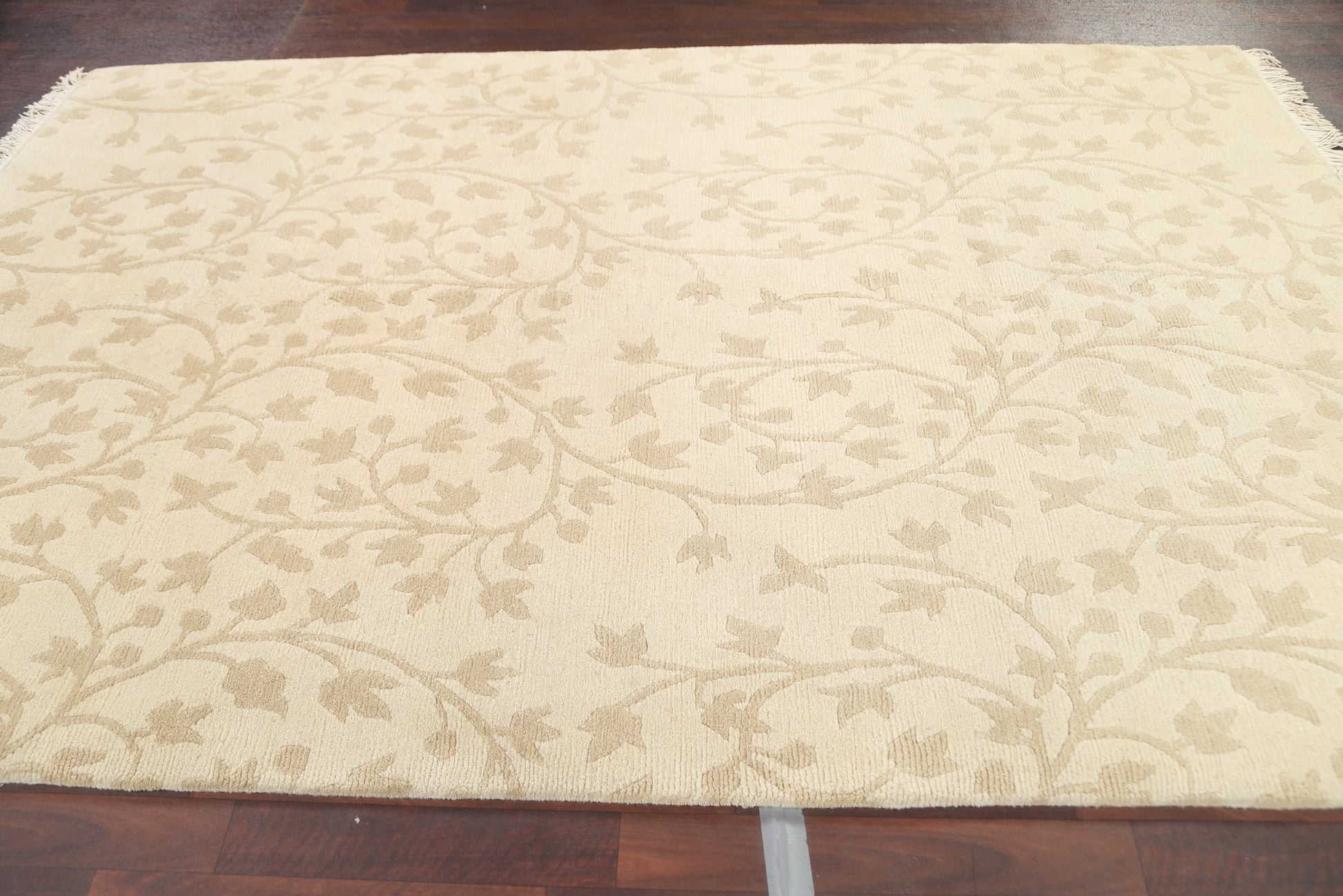 A Beautiful Genuine Nepal Nepalese rug is Hand Knotted by skillful weavers in Nepal with 100% Wool Material. This rug is in New, First Quality condition. dimensions are 8' 7'' X 5' 8'' in foot and 262 X 173 in centimeter. the primary color is Beige & Ivories.