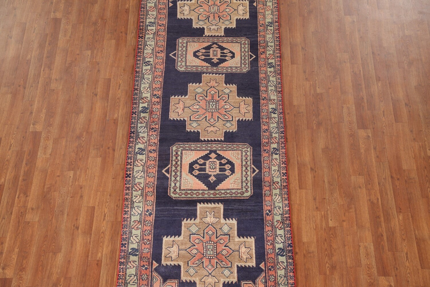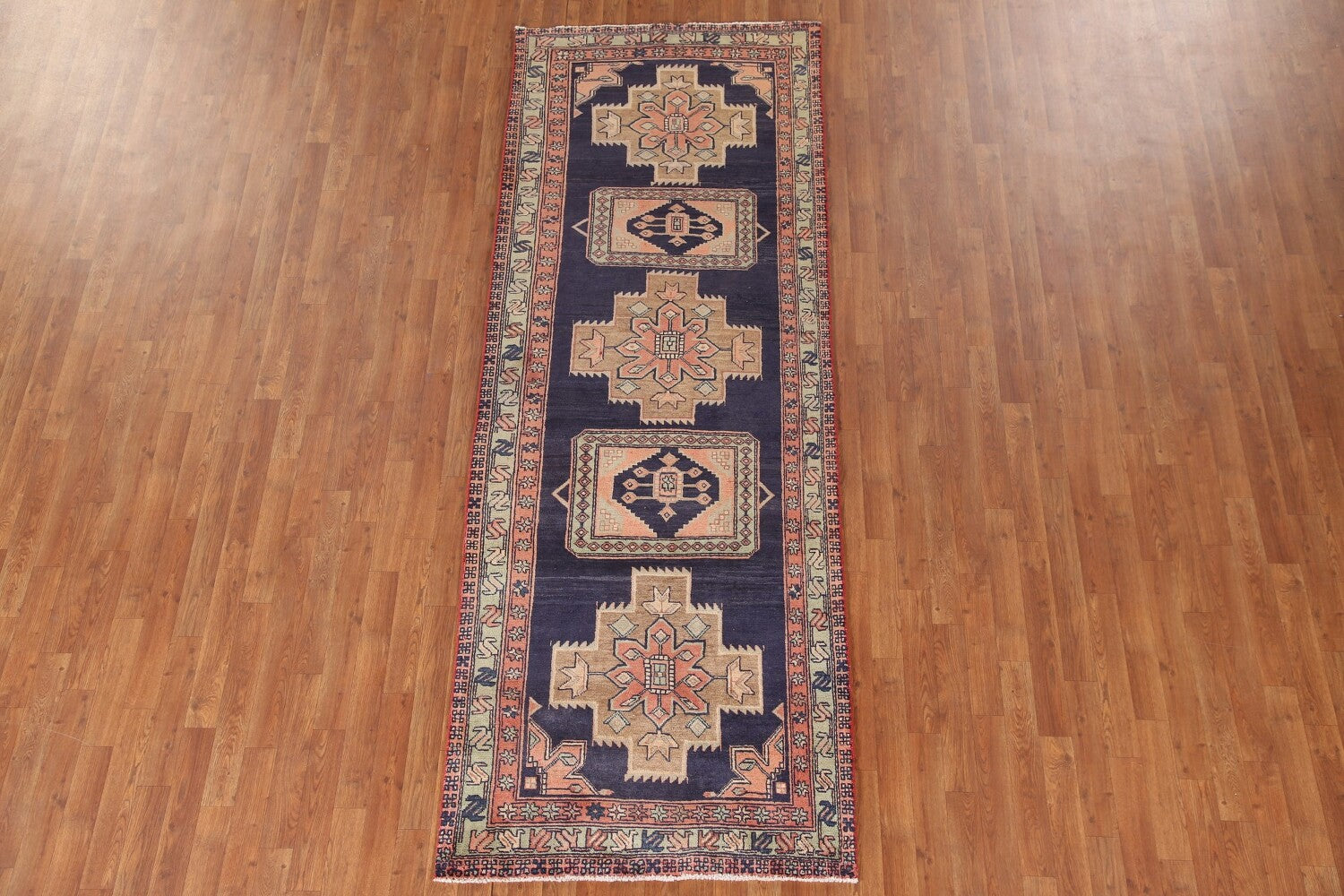 Navy Blue Ardebil Persian Runner Rug 4x10