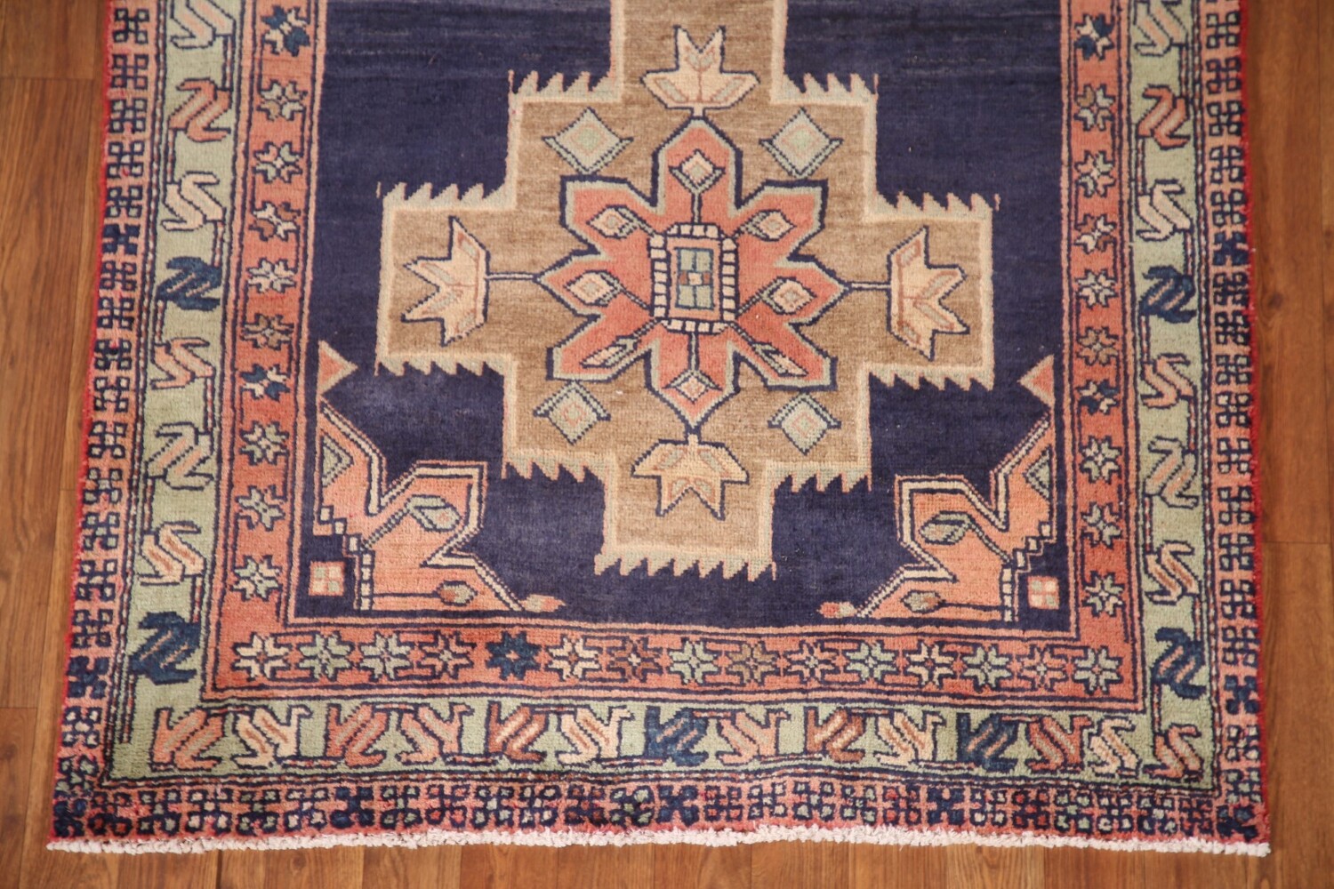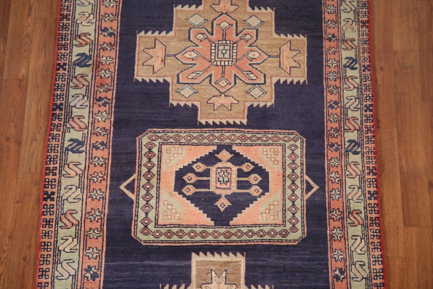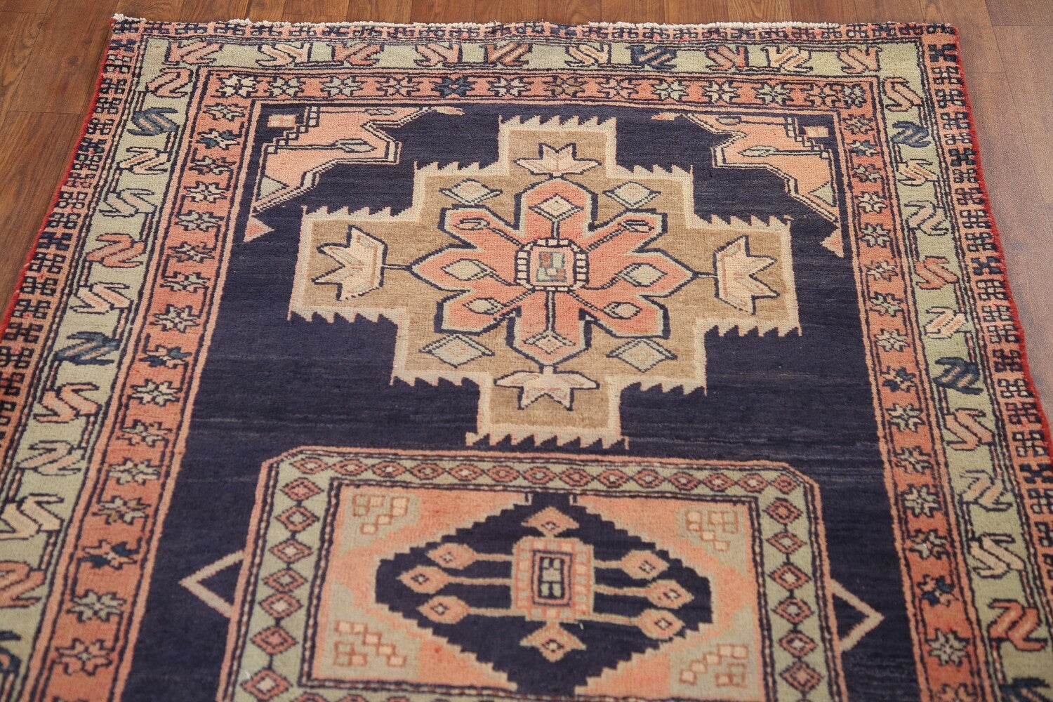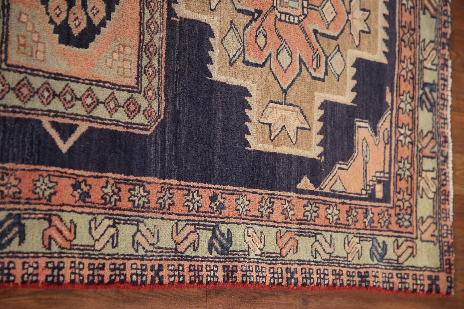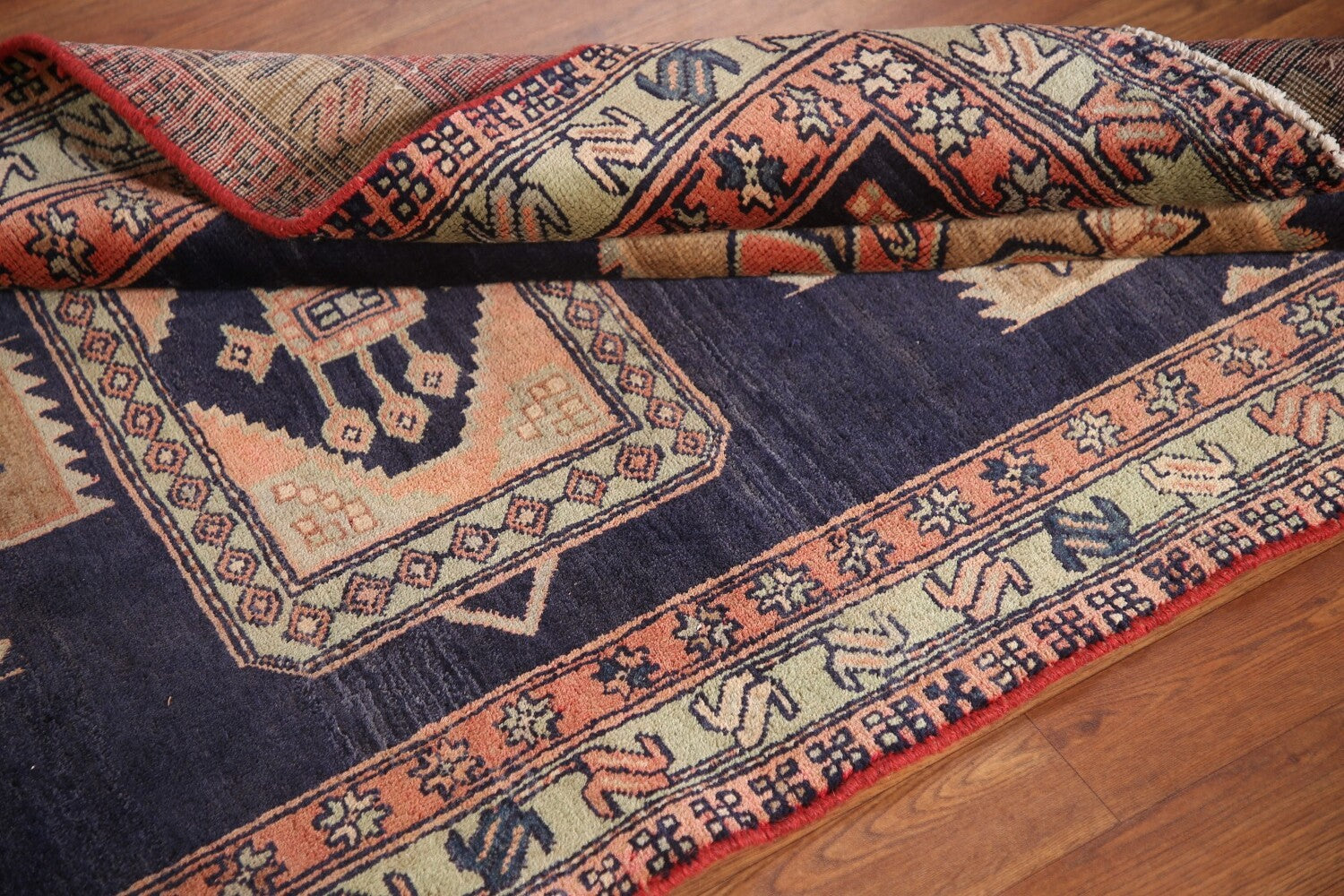 A Beautiful Genuine Persia ( Persia ) Ardebil rug is Hand Knotted by skillful weavers in Persia ( Persia ) with 100% Wool Material. This rug is in Very Good (Abrash) condition. dimensions are 9' 7'' X 3' 6'' in foot and 292 X 107 in centimeter. the primary color is Navy Blue & Blues.